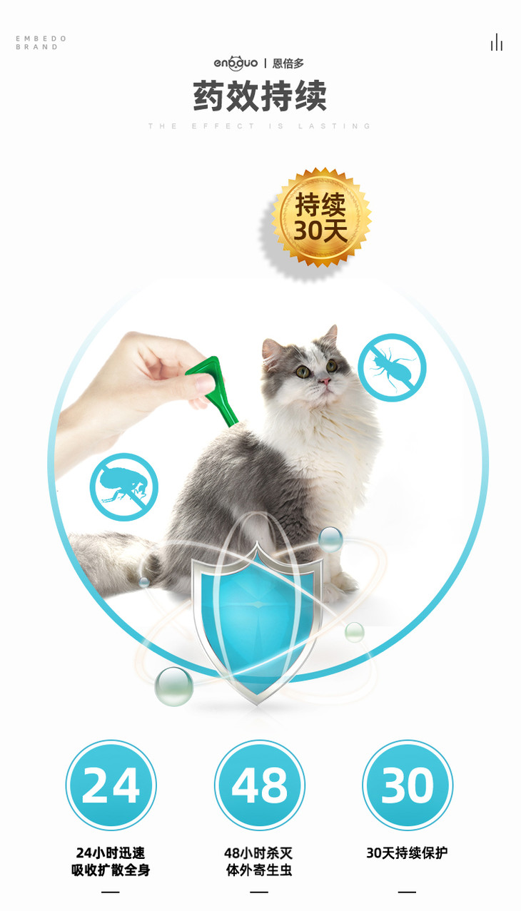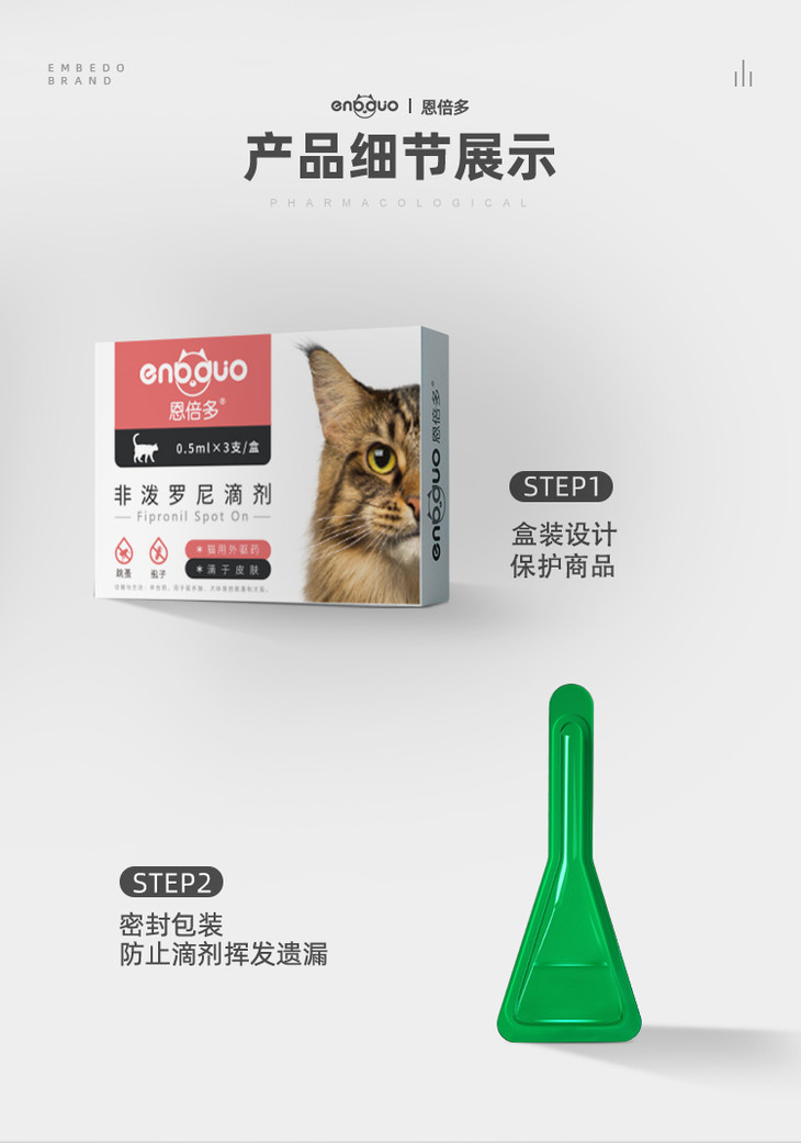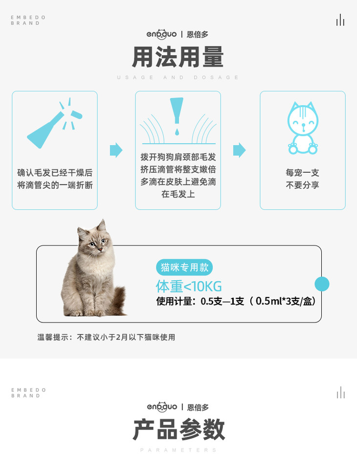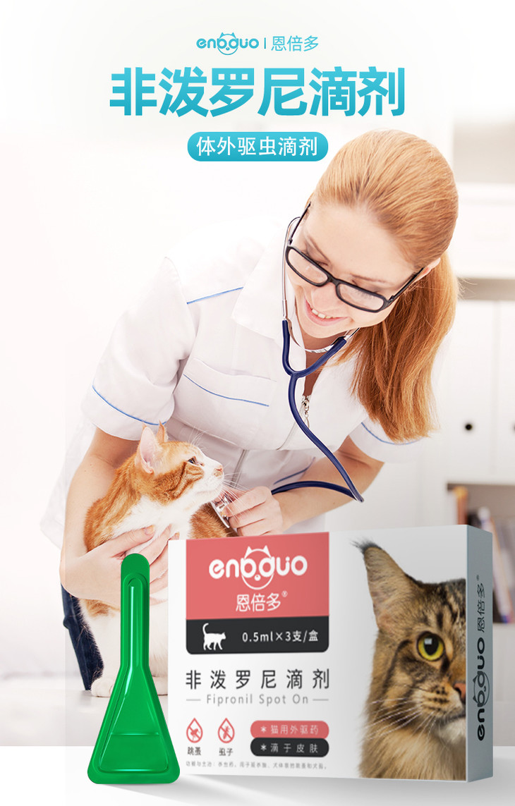 小贴士:内外驱建议间隔5天使用 非泼罗尼猫狗体重小于1kg不建议使用