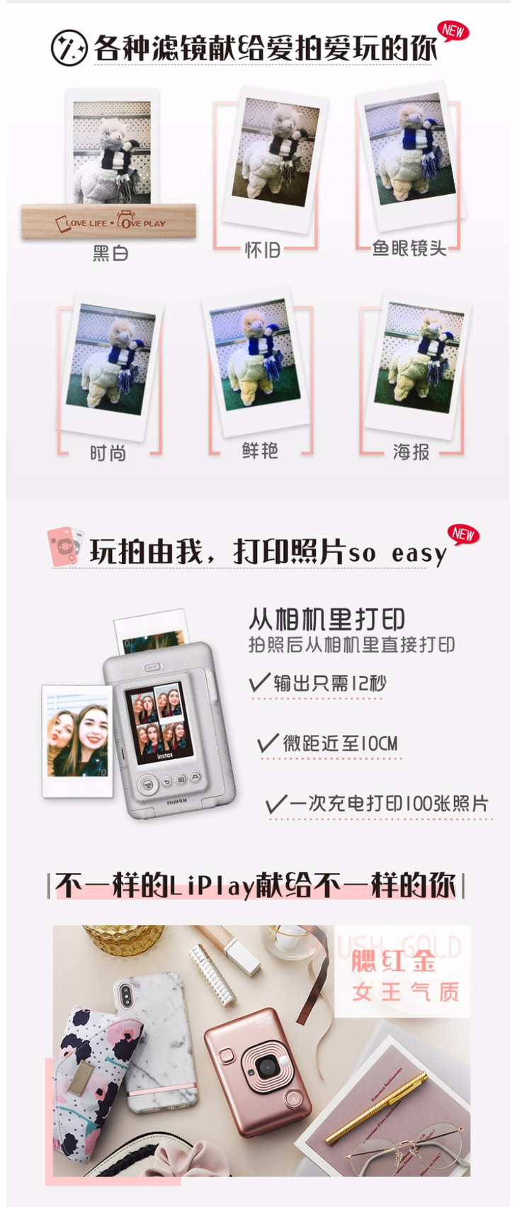 富士instax拍立得 一次成像相机 mini liplay
