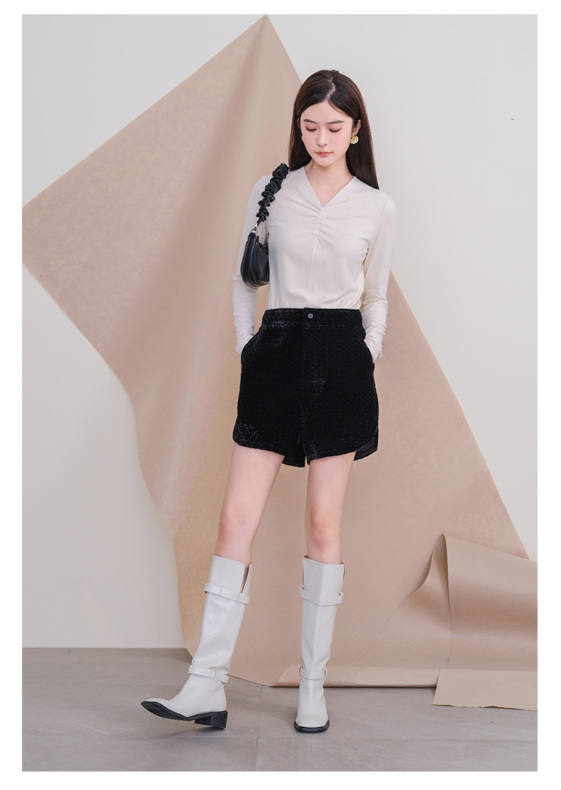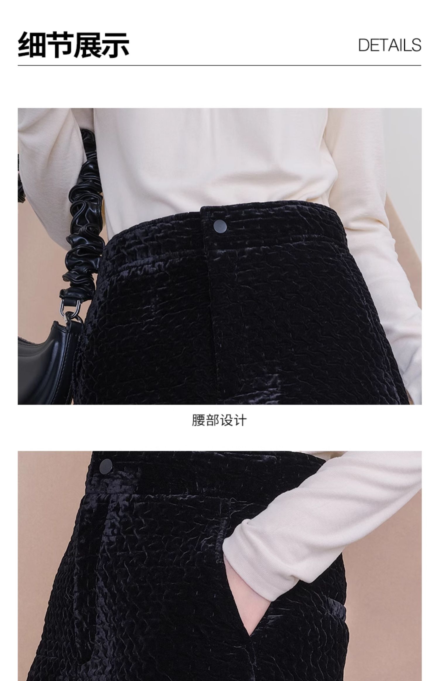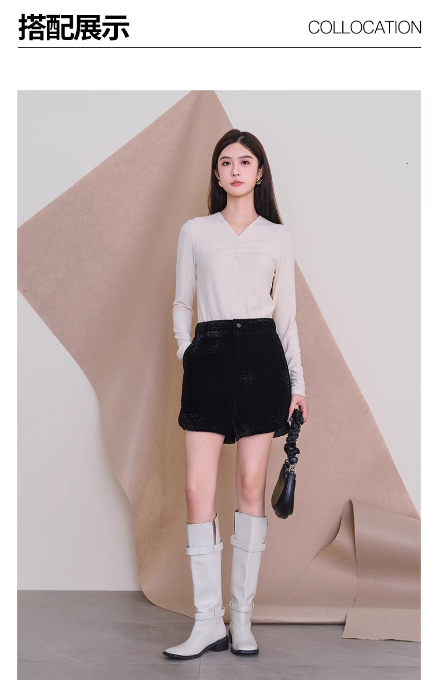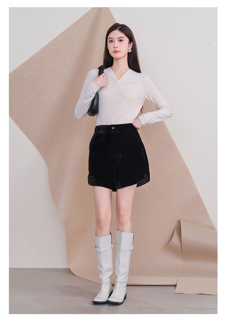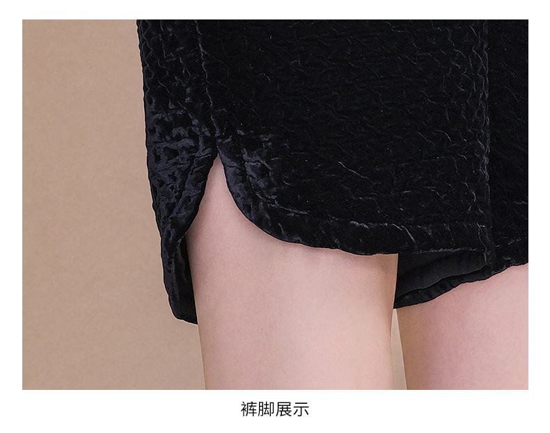 oldcolour冬季新款黑色菱格丝绒高腰休闲宽松A字短裤女P440702A1