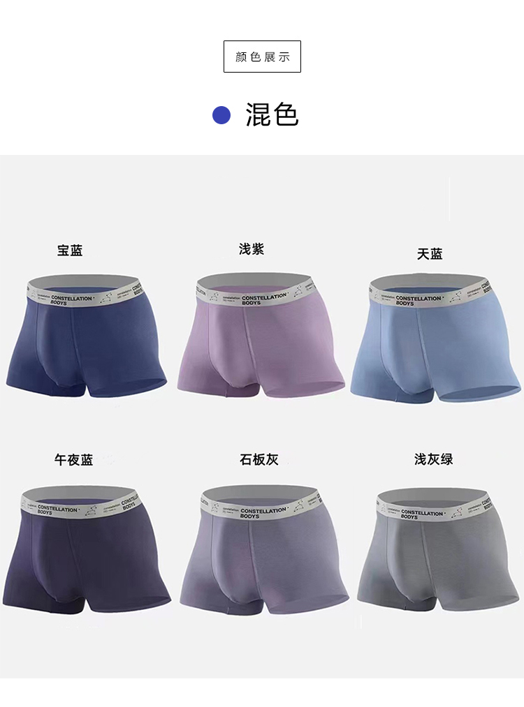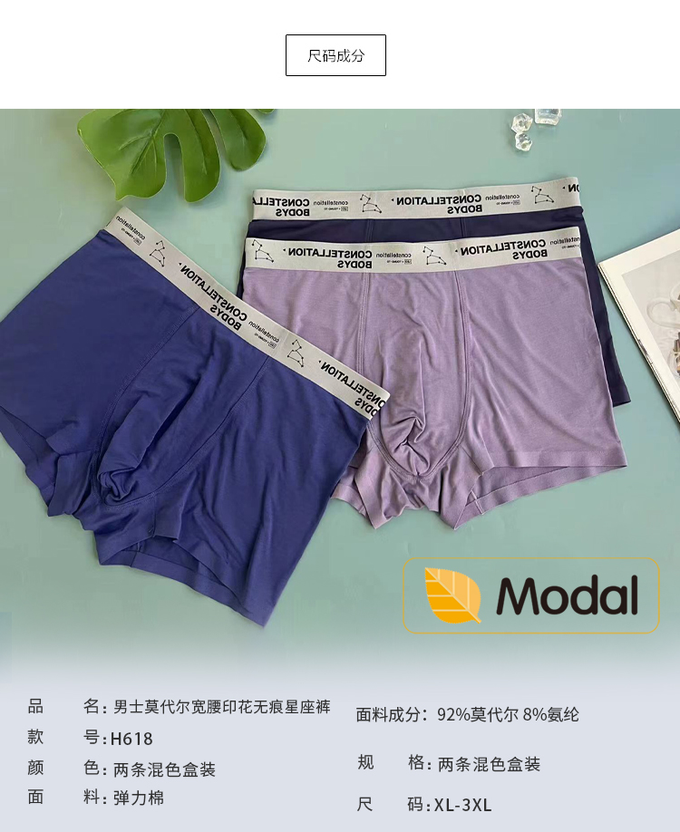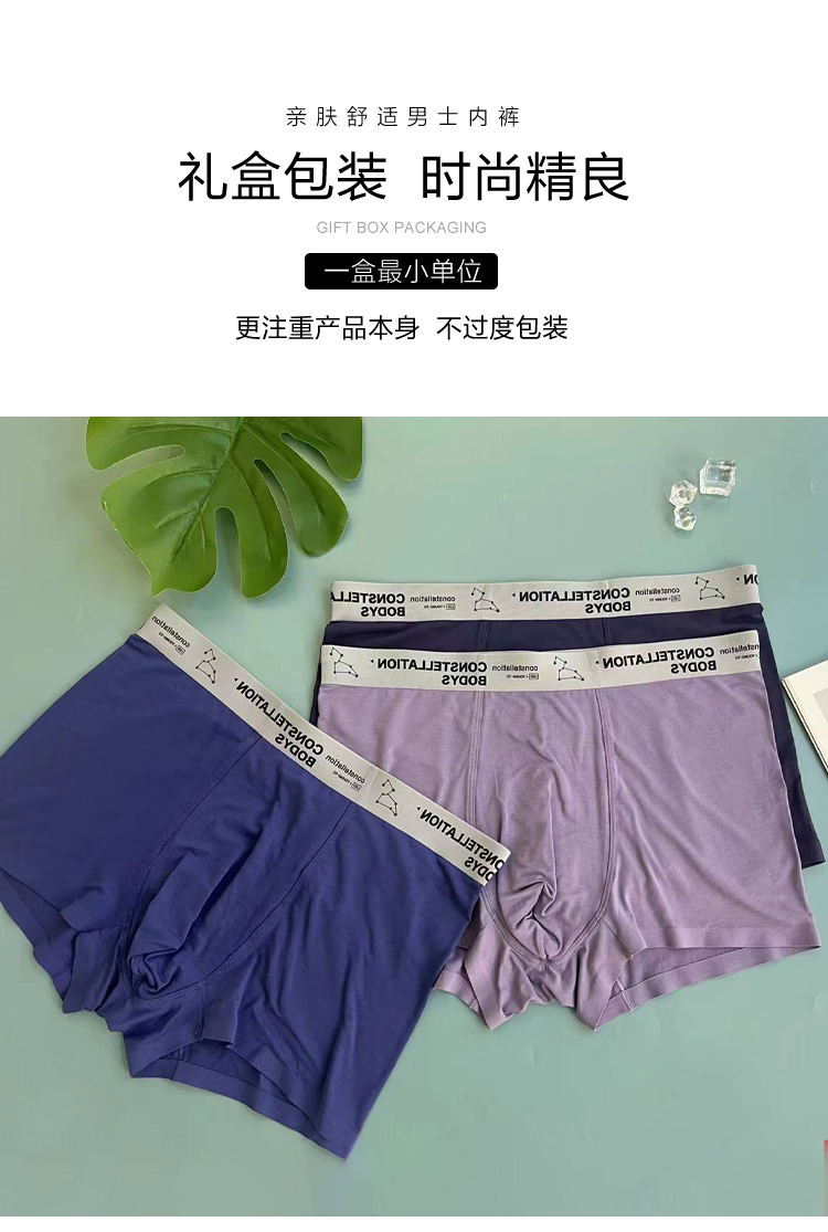 (两条盒装)莫代尔星座裤撞色无痕男士透气平角内裤H618
