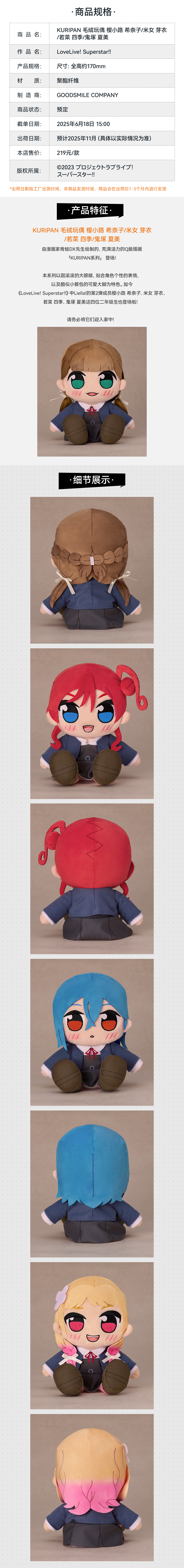 【GSC现货】KURIPAN 毛绒玩偶 樱小路 希奈子/米女 芽衣/若菜 四季/鬼塚 夏美 LoveLive!Superstar!!