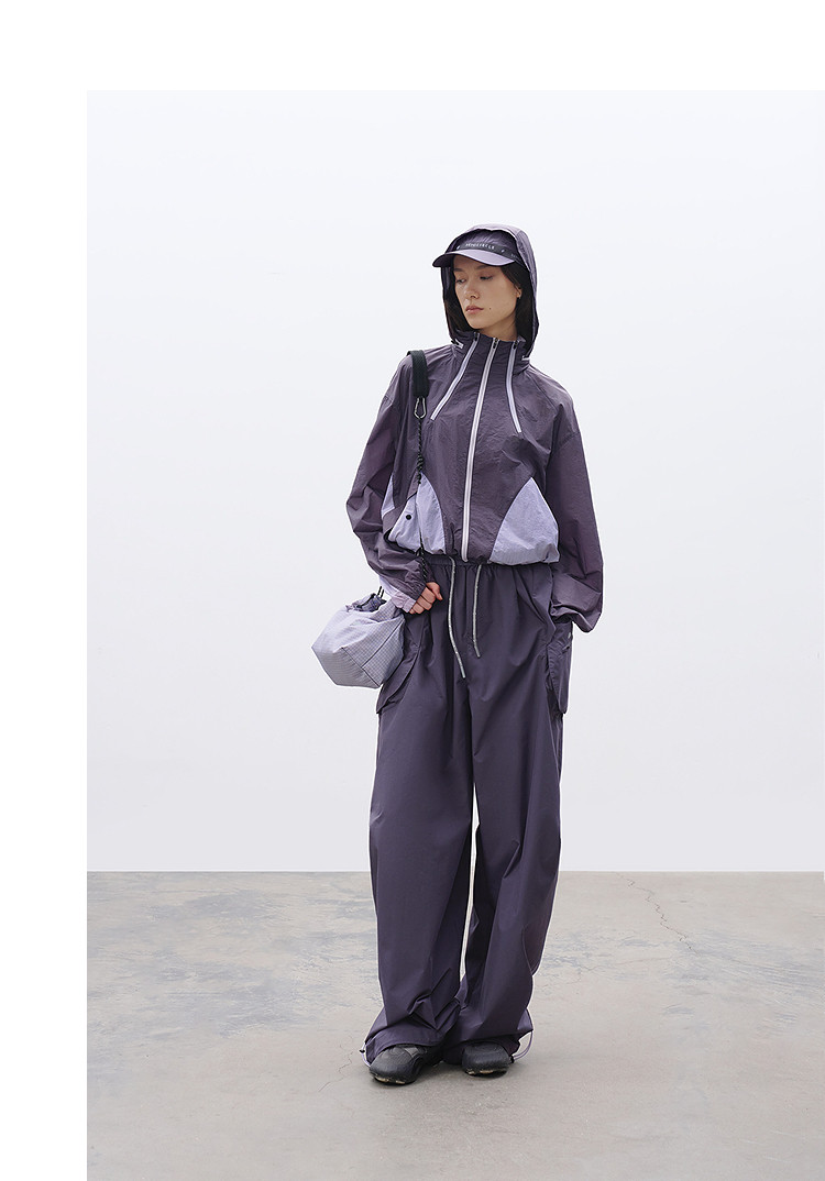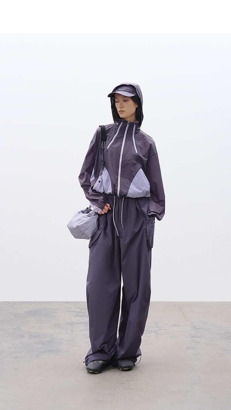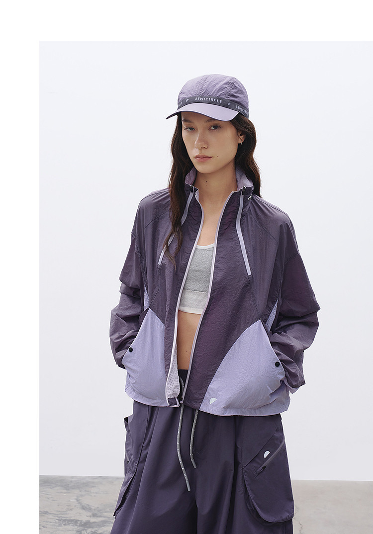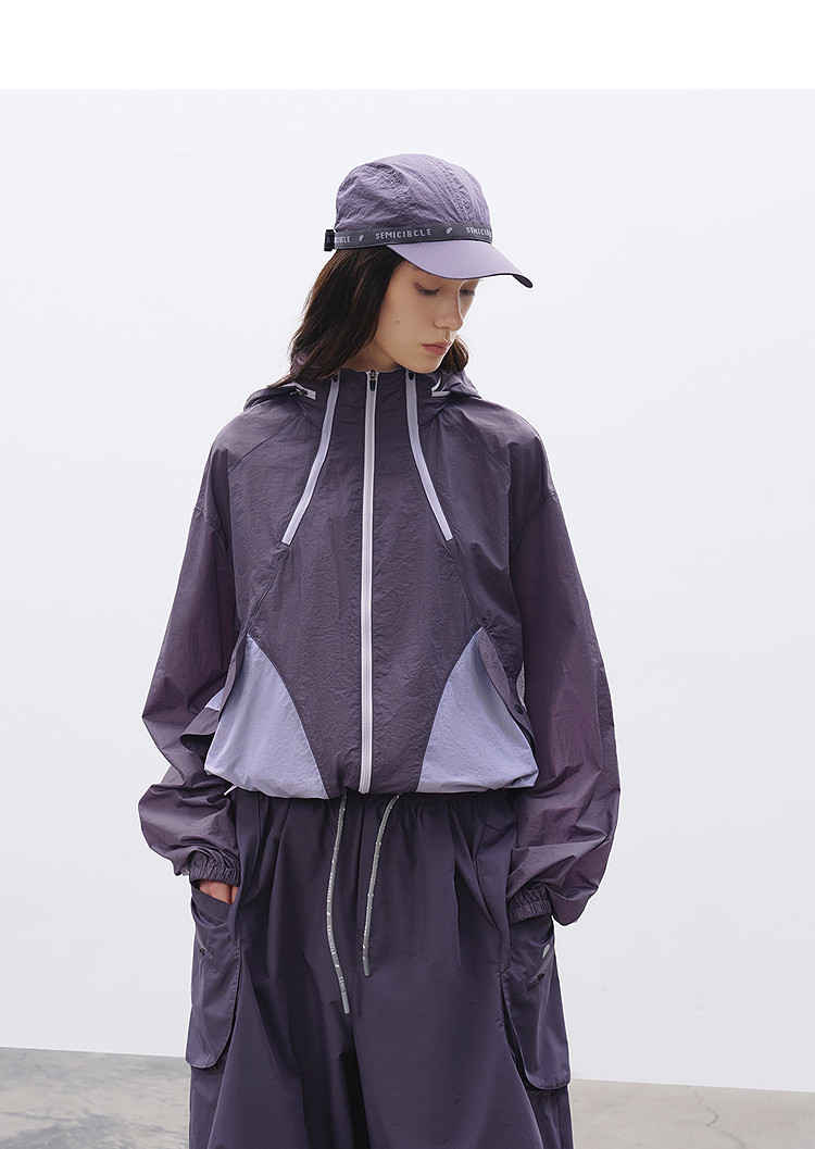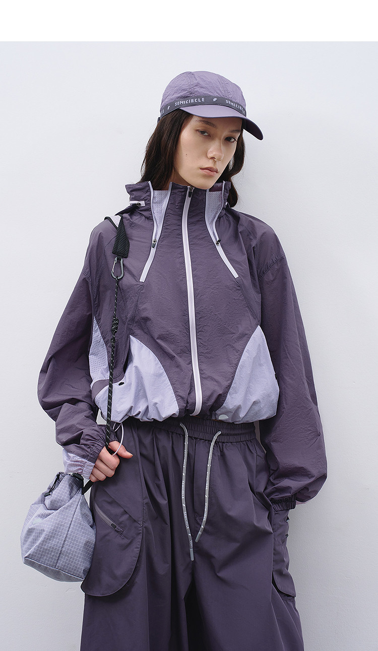 半圆/C68710221/立领连帽短款撞色拼接外套