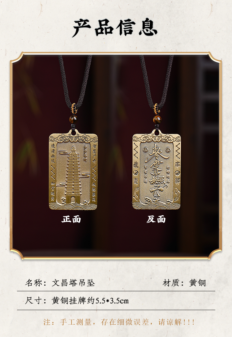 原创黄铜文昌塔吊坠精雕项链男女同款钥匙扣中式十三层挂件