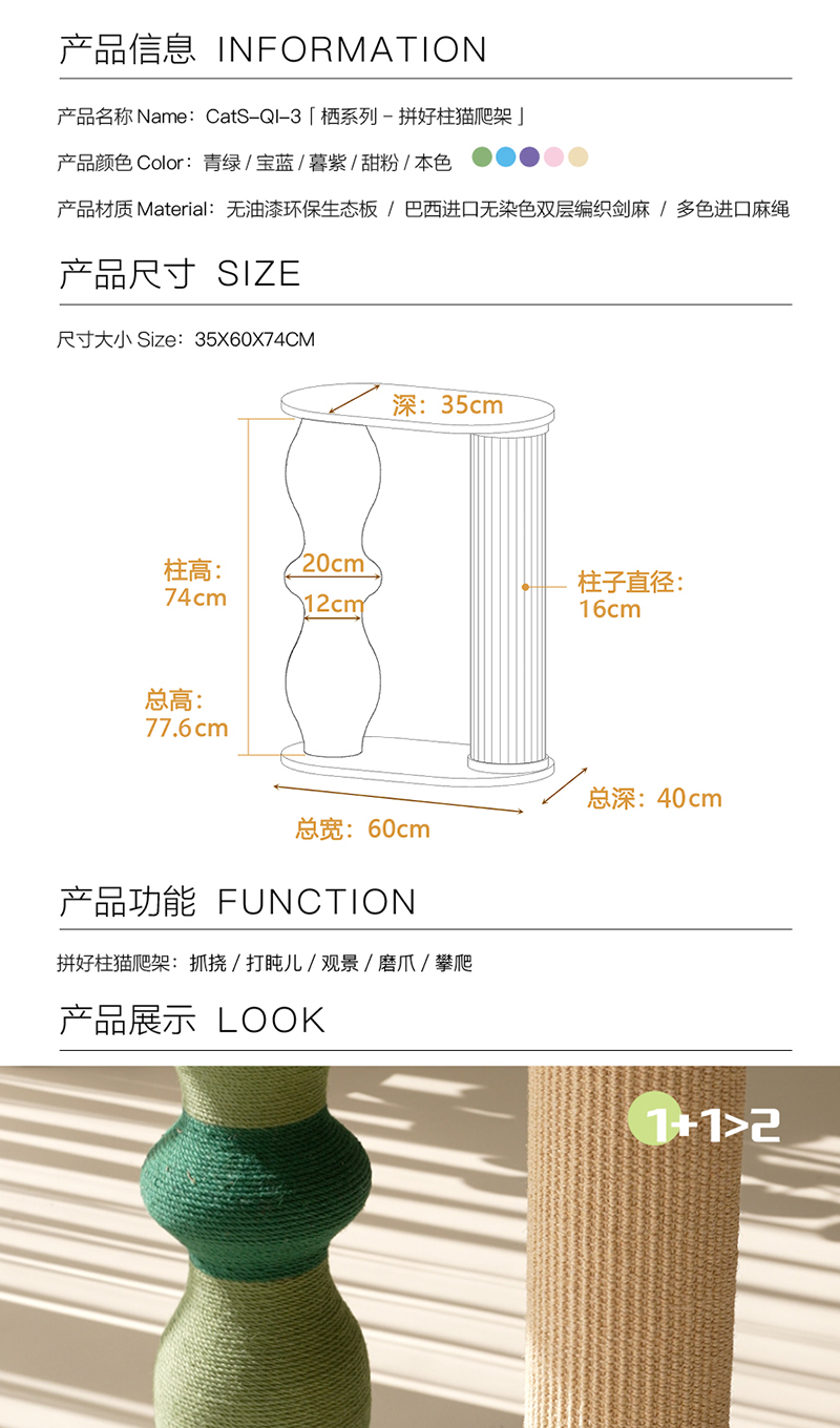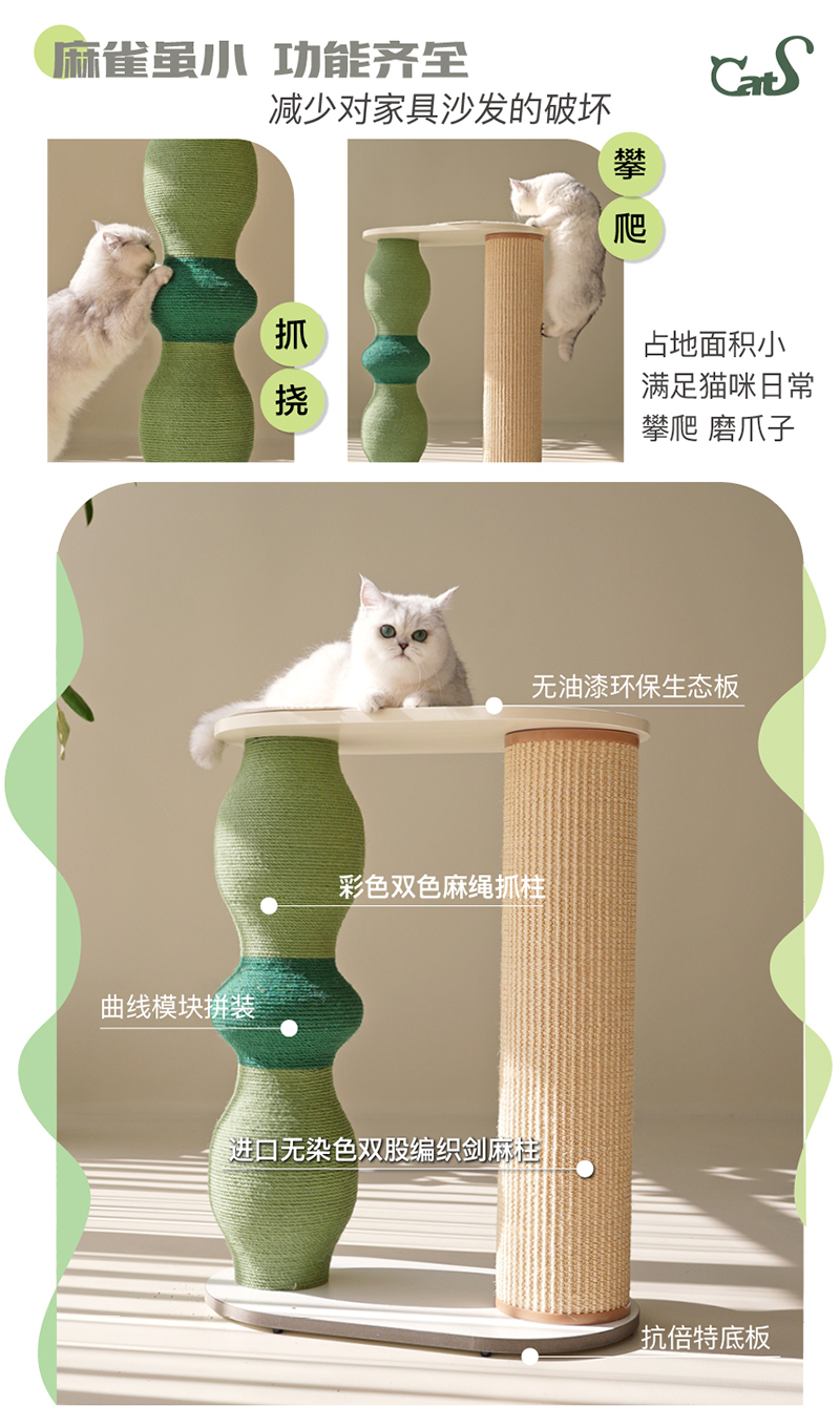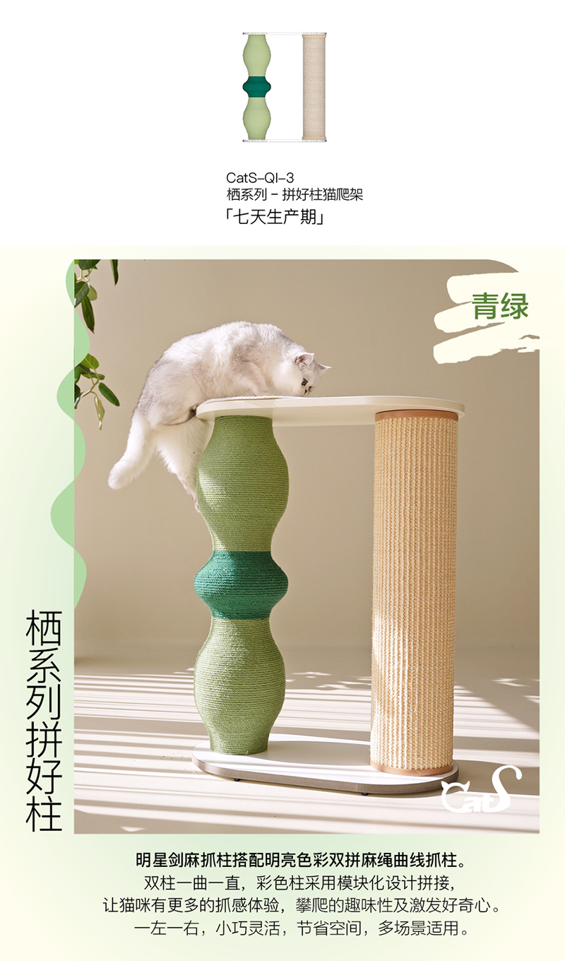 栖系列 彩色麻绳耐磨猫抓柱猫咪用品组合小爬架