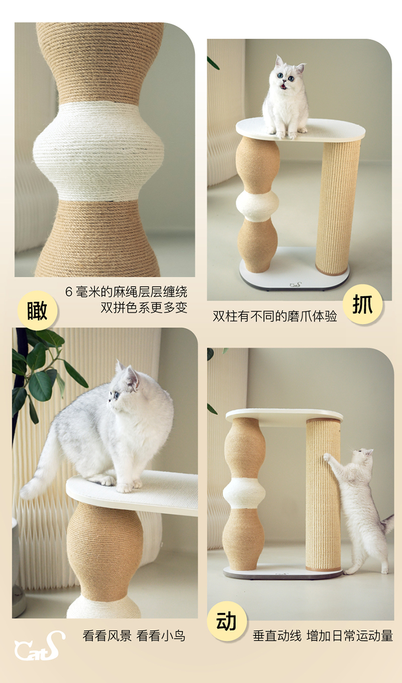 CatS梦心实木猫爬架人间烟火系列木制剑麻猫抓板曲木全体型猫通用