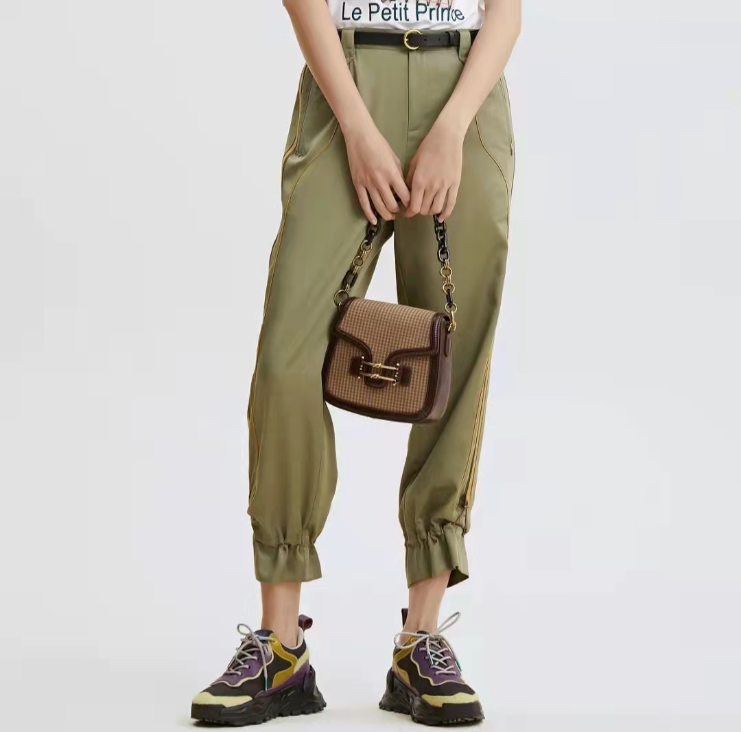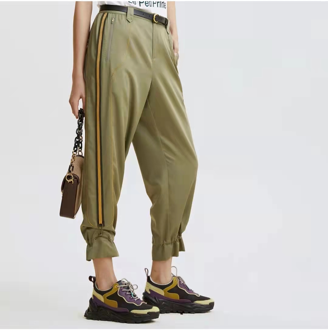 谜底213MK1761款裤子,知性松软的天丝面料,复古简约,高腰设计,拉长身材比例,运动风的束脚裤,舒适易穿。