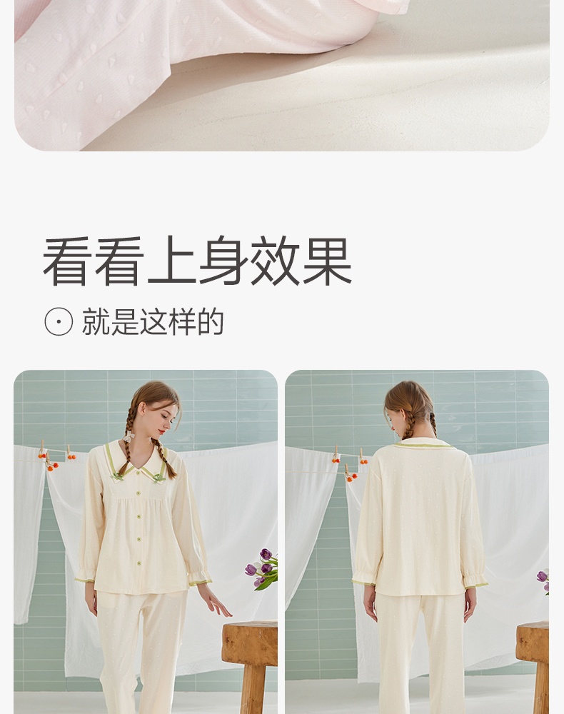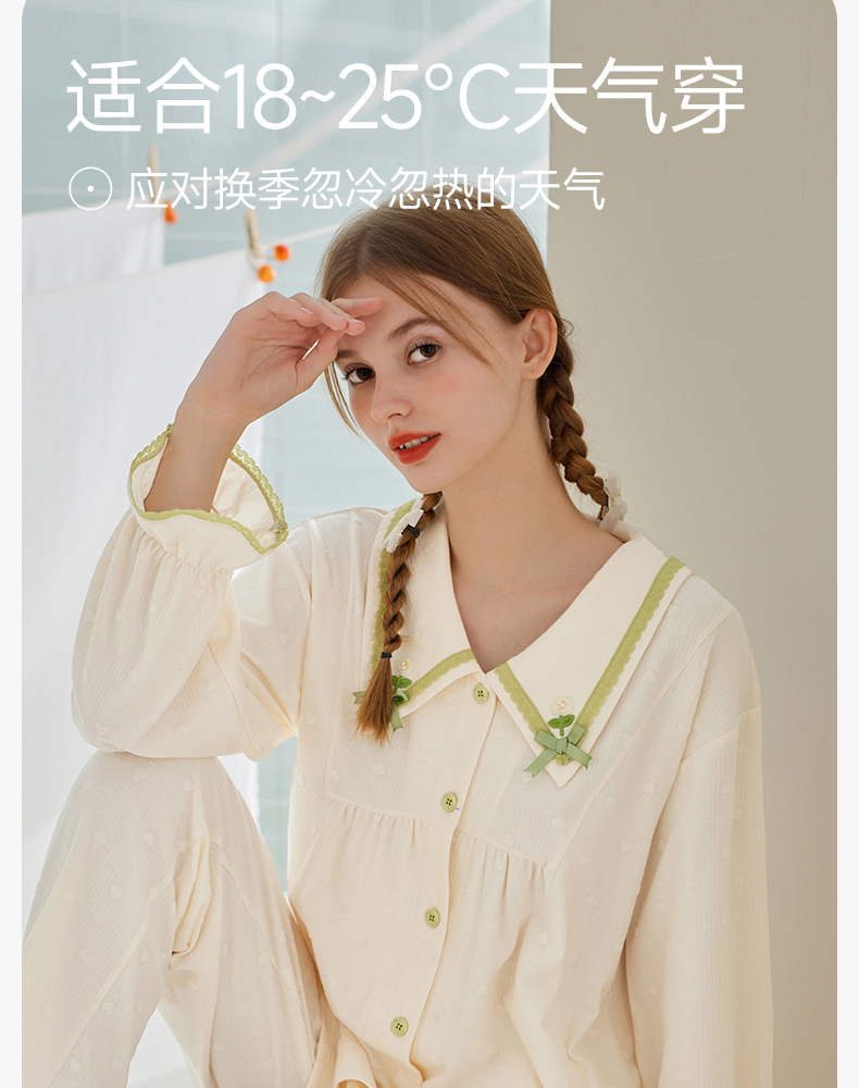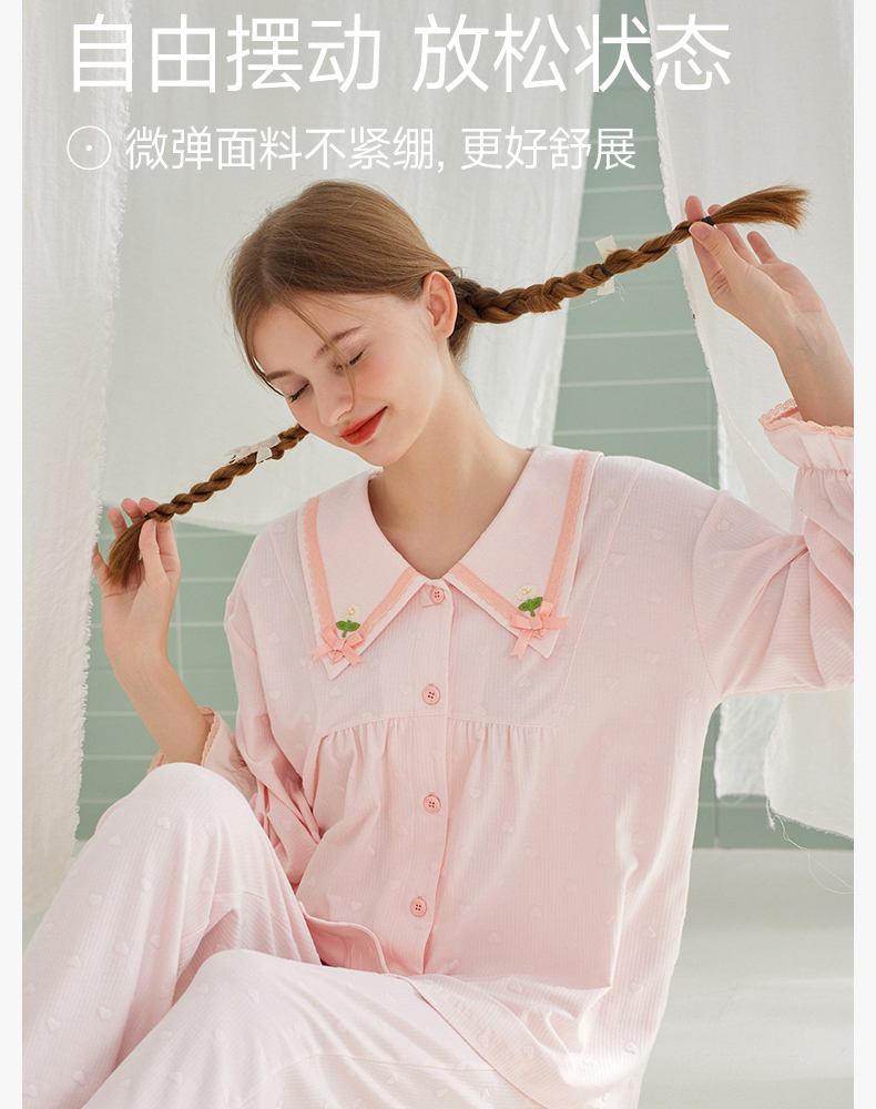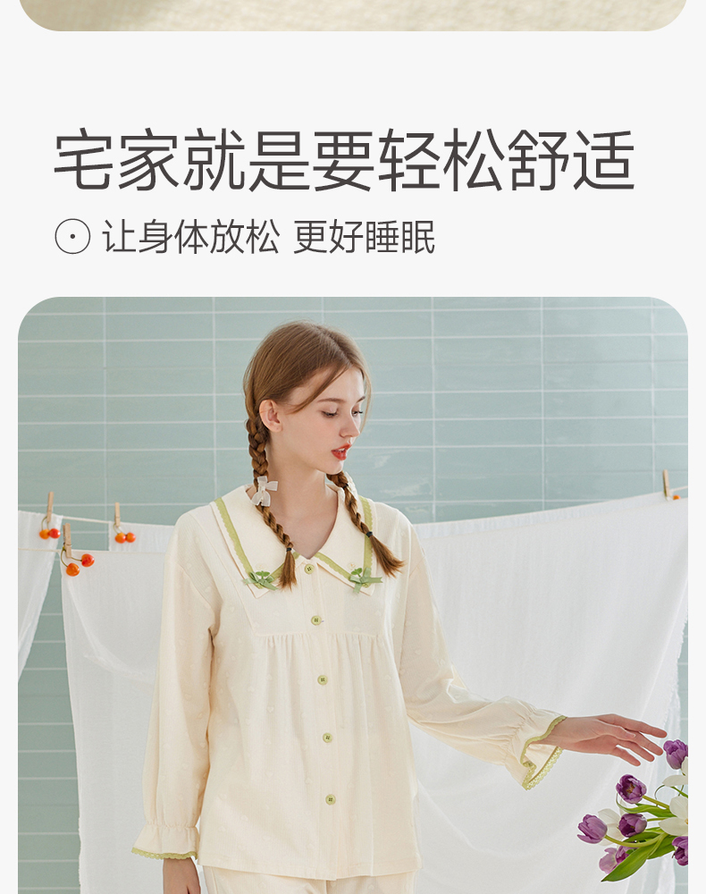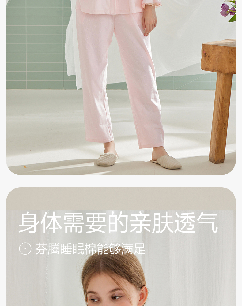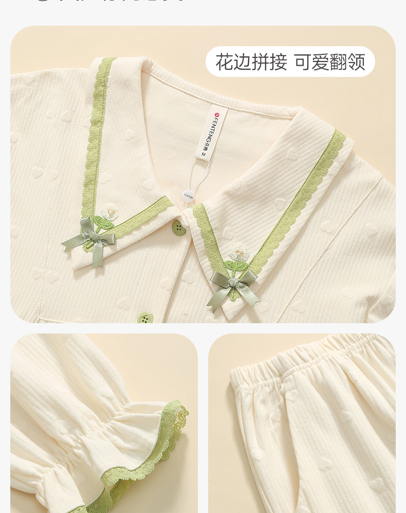 芬腾新款睡衣女长袖春秋纯棉开衫清新休闲全棉春季大码家居服套装