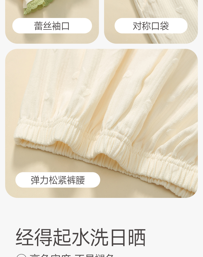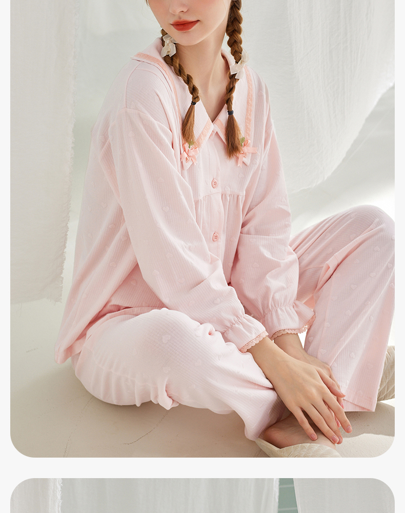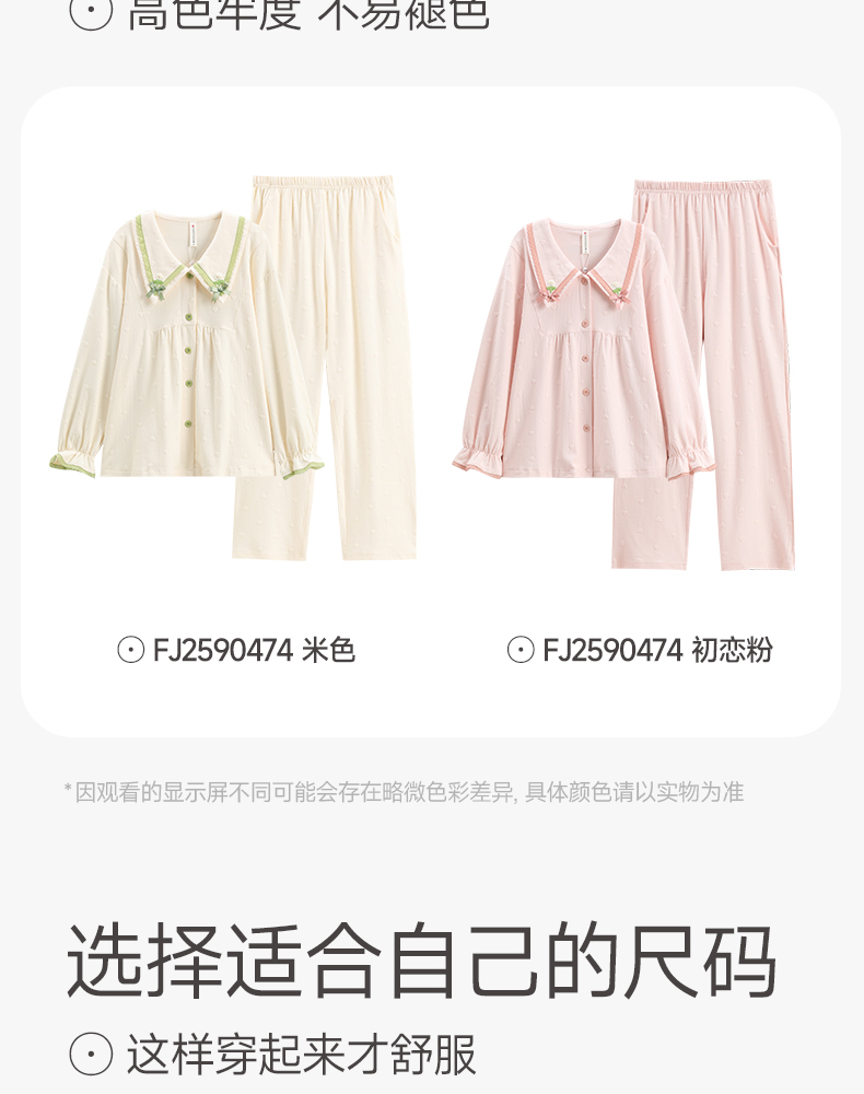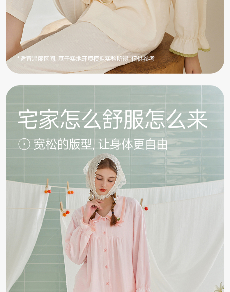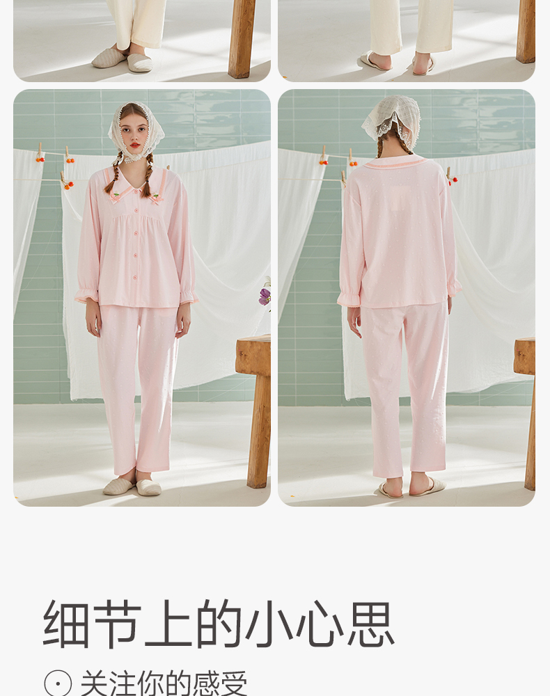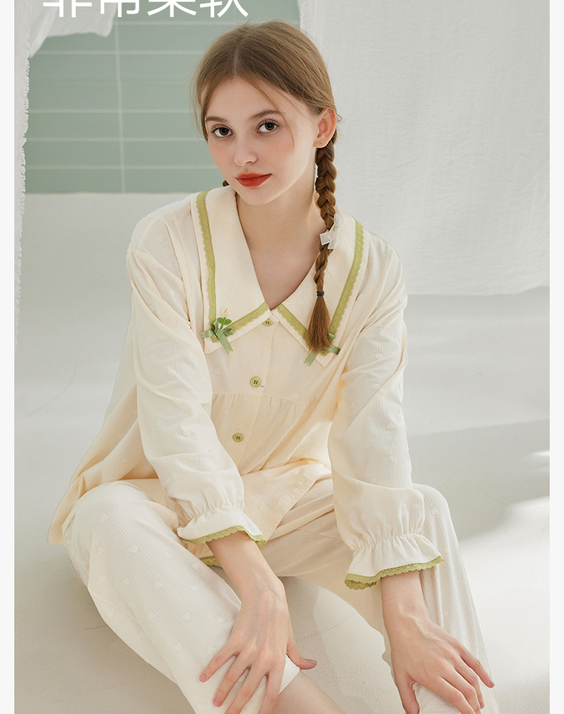 芬腾新款睡衣女长袖春秋纯棉开衫清新休闲全棉春季大码家居服套装