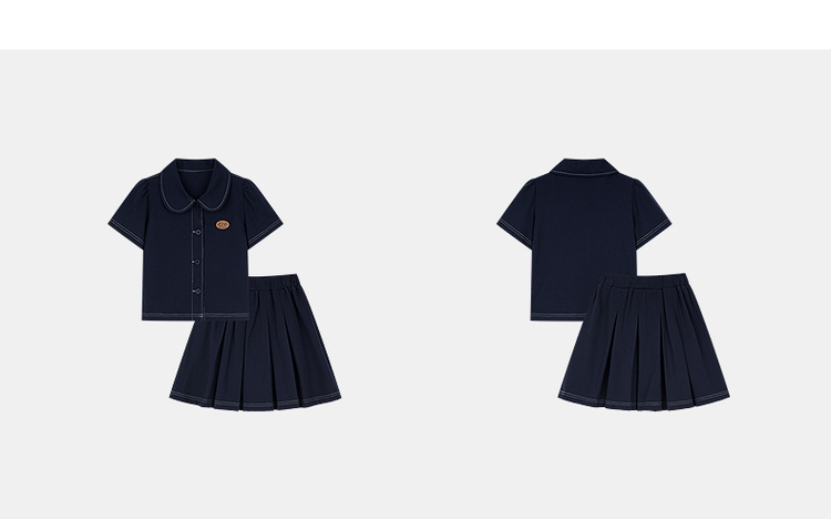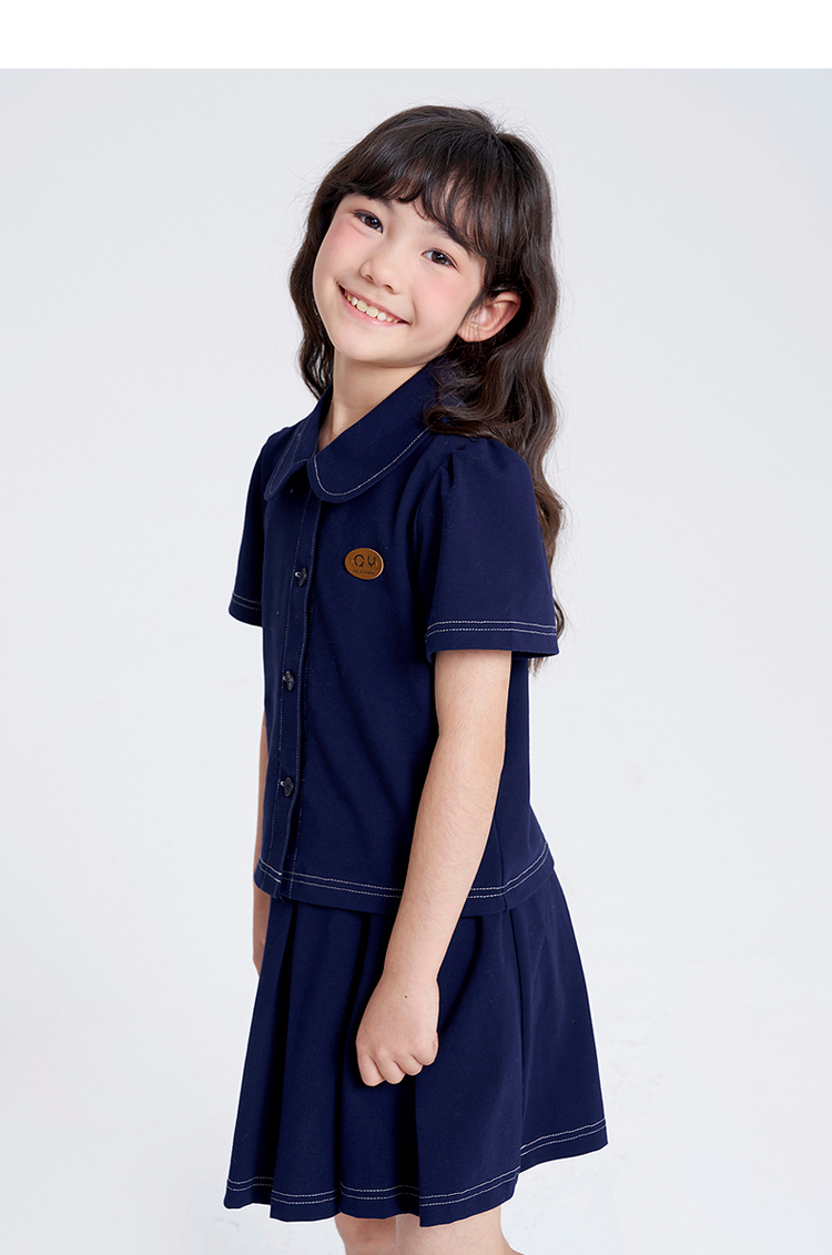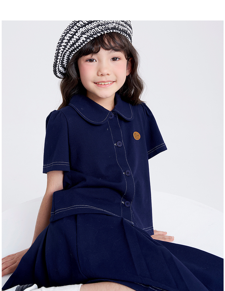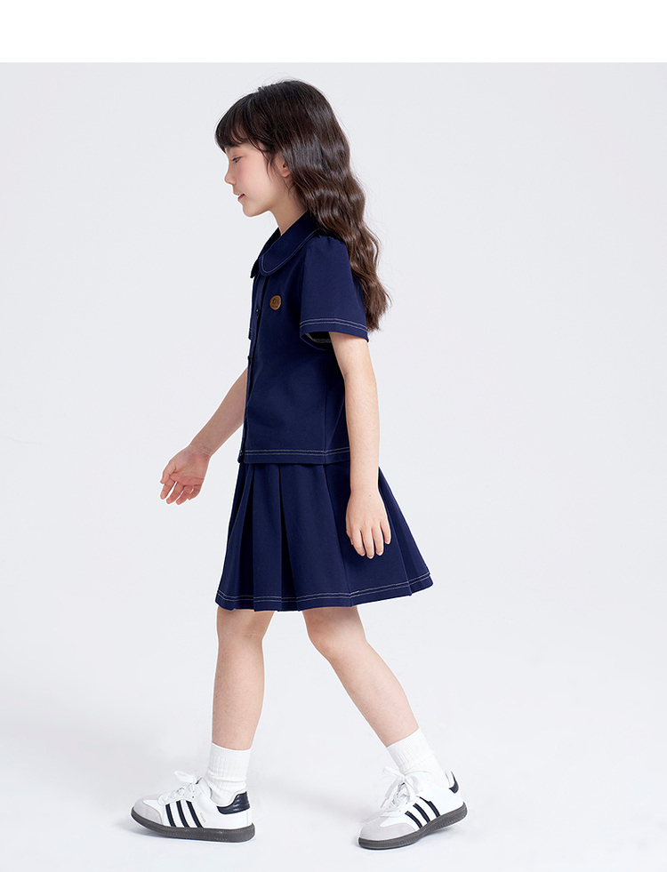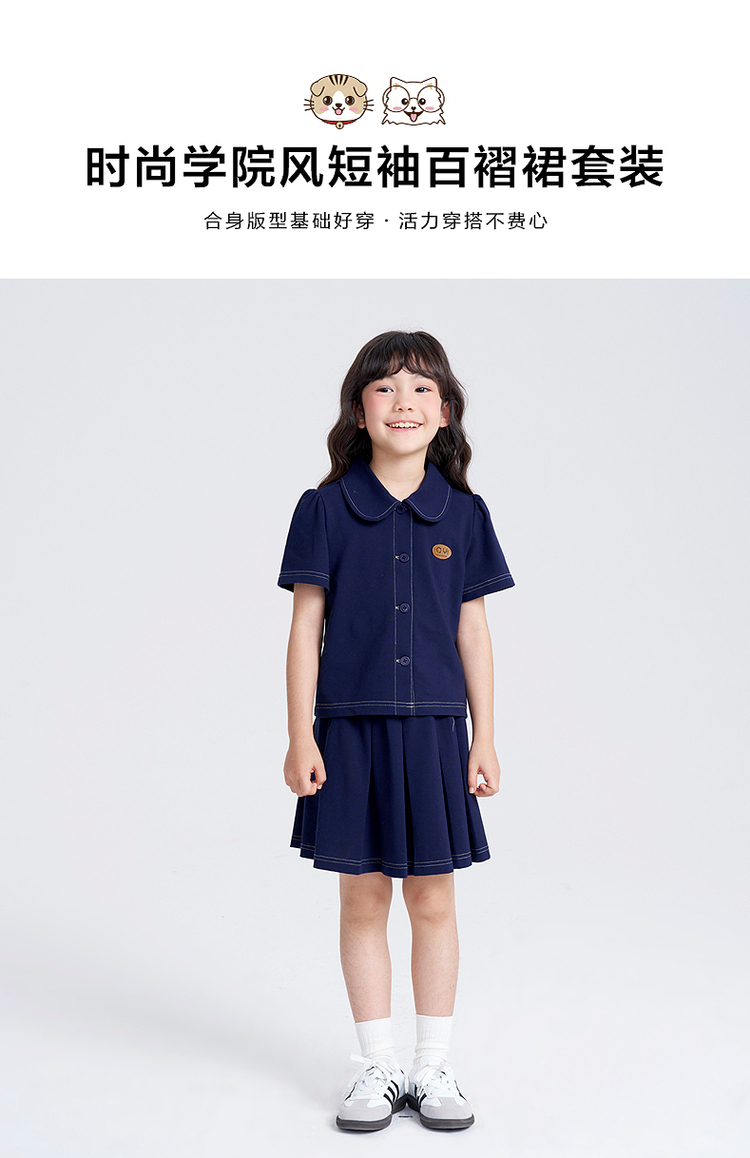 笛莎千与2025夏季新款女童时尚学院风短袖百褶裙套装