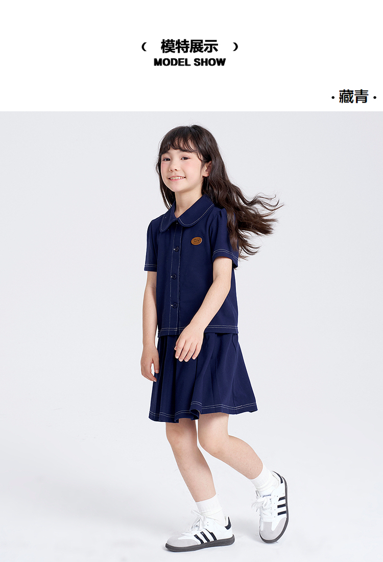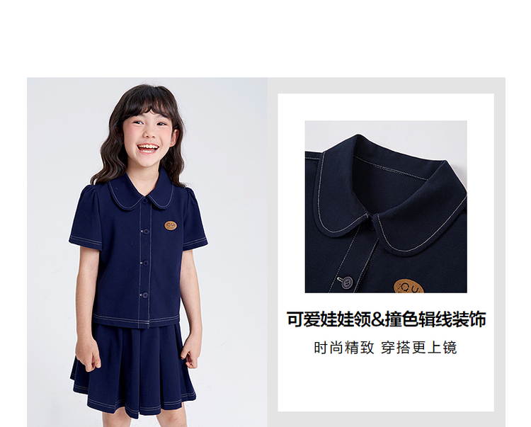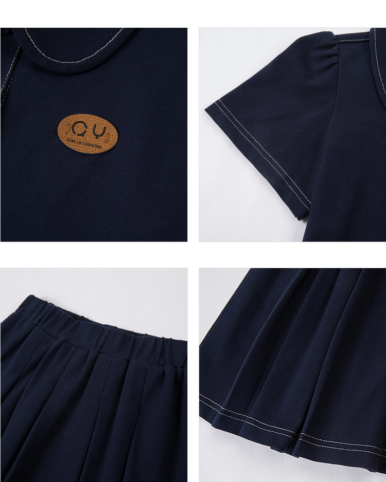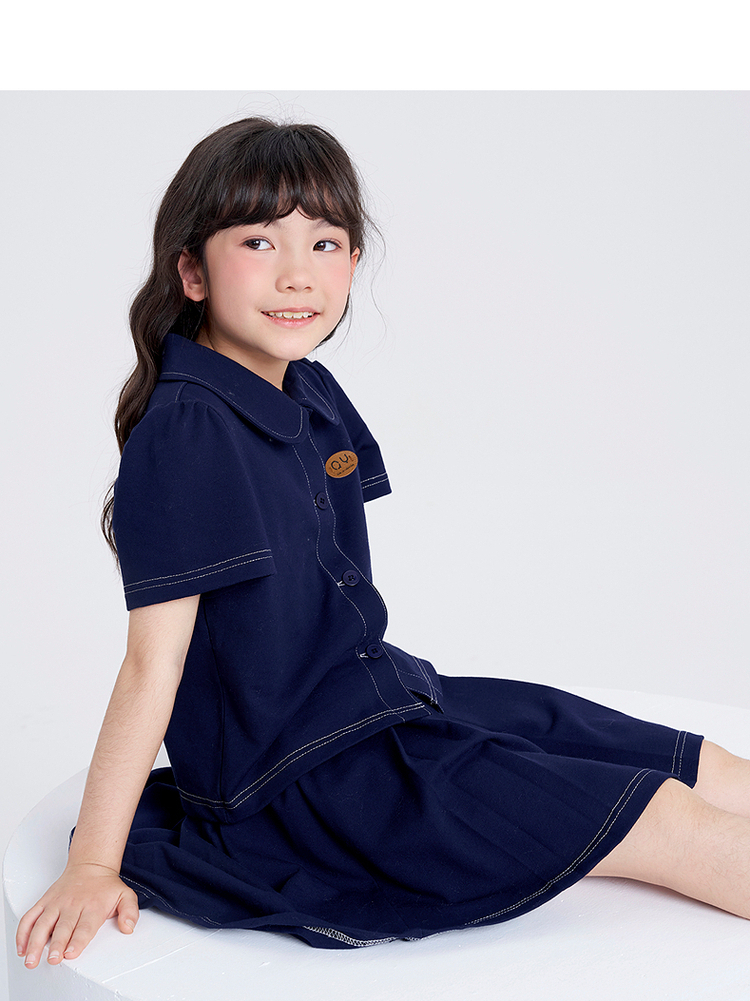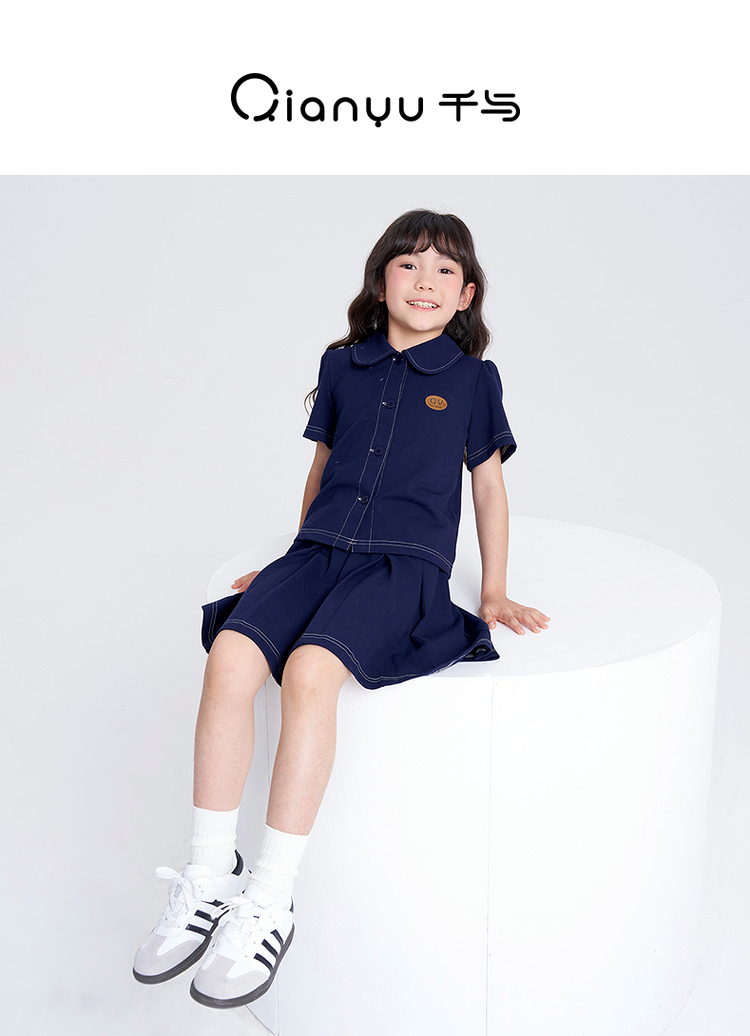 笛莎千与2025夏季新款女童时尚学院风短袖百褶裙套装