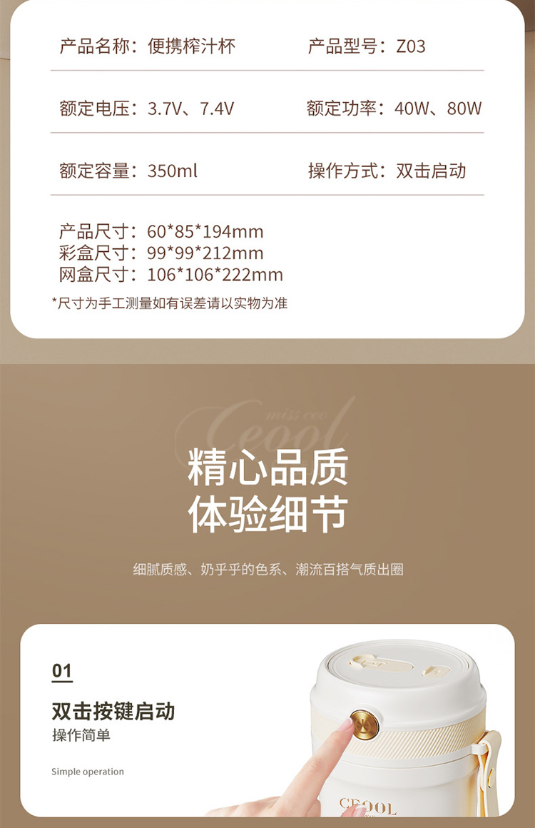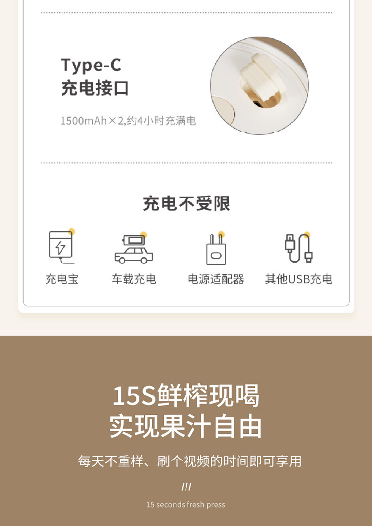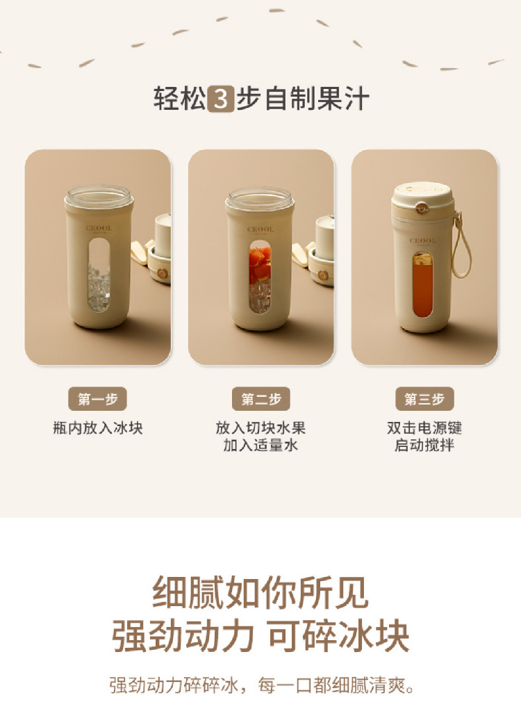 【INS奶油风榨汁机】15秒电动碎冰便携榨汁杯 迷你榨果汁机原汁机无线便携