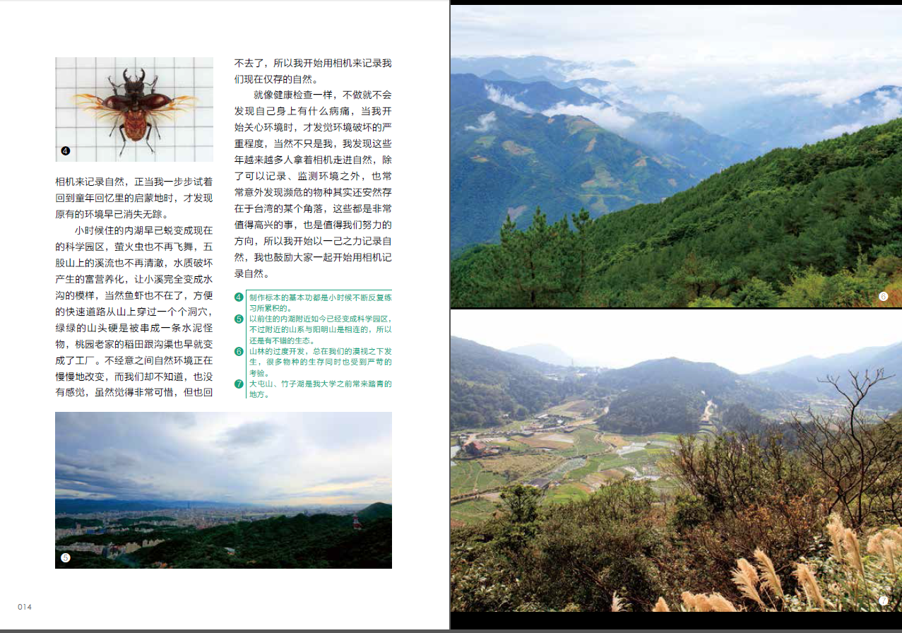 不同于一般的摄影入门指南,作者着重的不是各种摄影技巧的教学,而是透过生态摄影,让更多摄影爱好者看到大自然的美好生命及如何正确记录动植物真实的生态行为。作者以其自身的摸索与经验,提供了许多*手的珍贵记录,如宽尾凤蝶、甲虫、山椒鱼、蛙类、梅花鹿等,帮助许多生态摄影初学者,一步步透过体验观景窗里的自然心、生态情,学习拍摄自然生态的乐趣和正确态度。