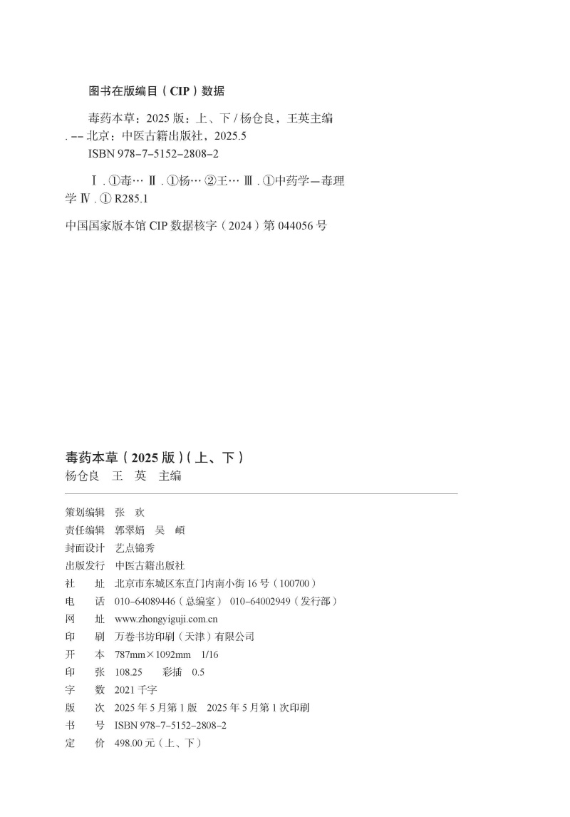 书名:毒药本草(2025版)(上下册)
