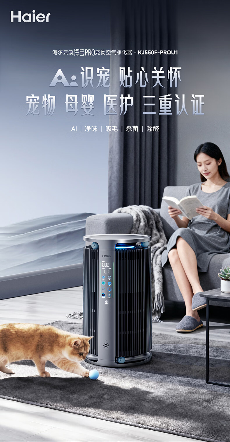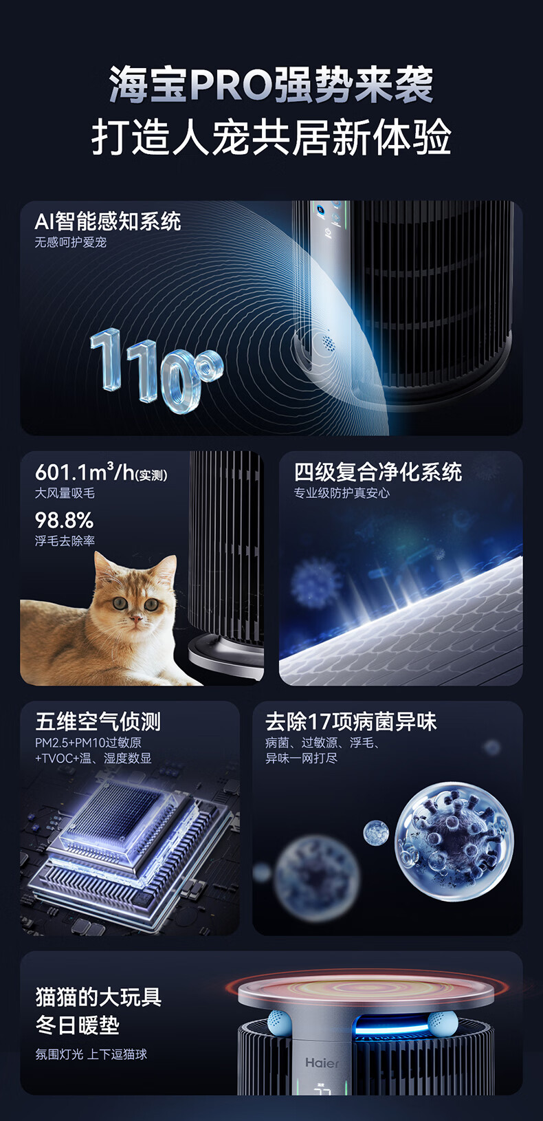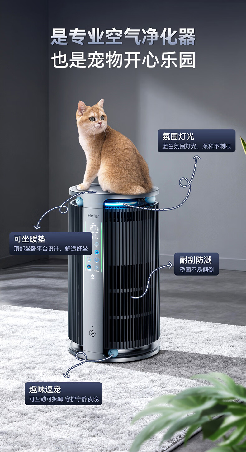 海尔海宝pro宠物净化器家用杀菌消毒除猫狗异味吸猫毛除过敏源暖垫养宠家庭空气净化器KJ550F-PROU1