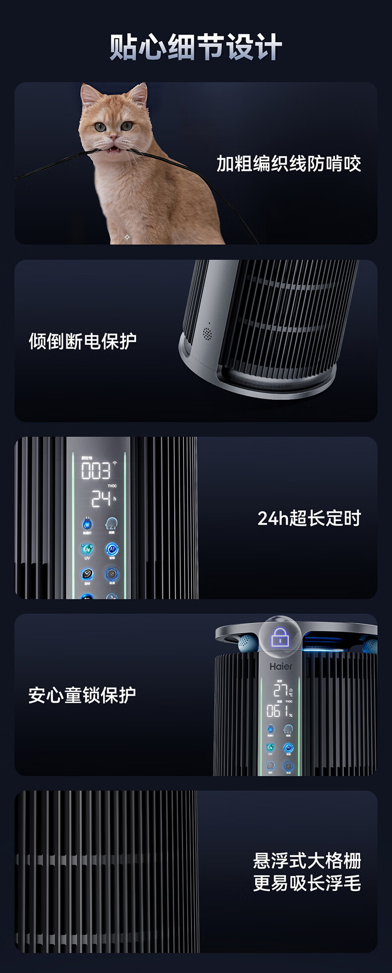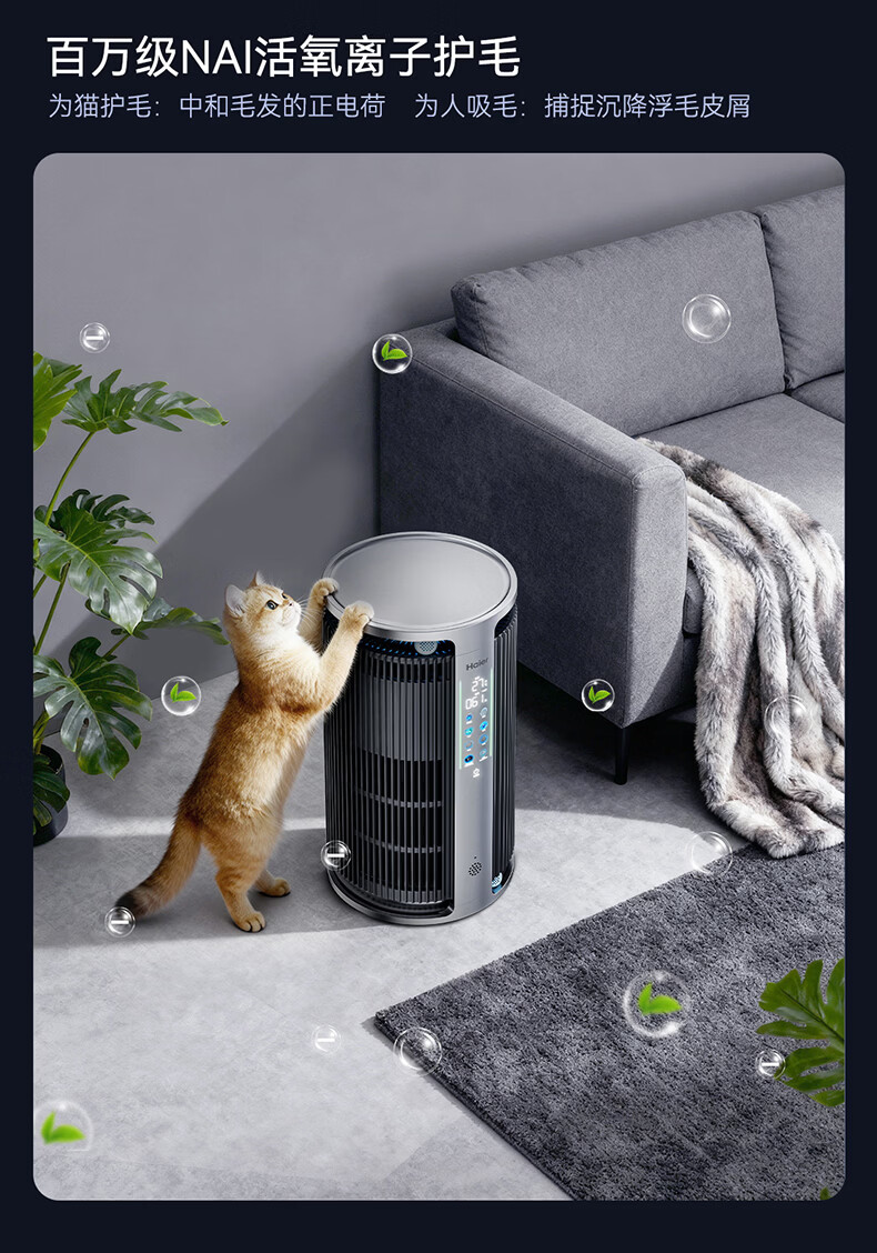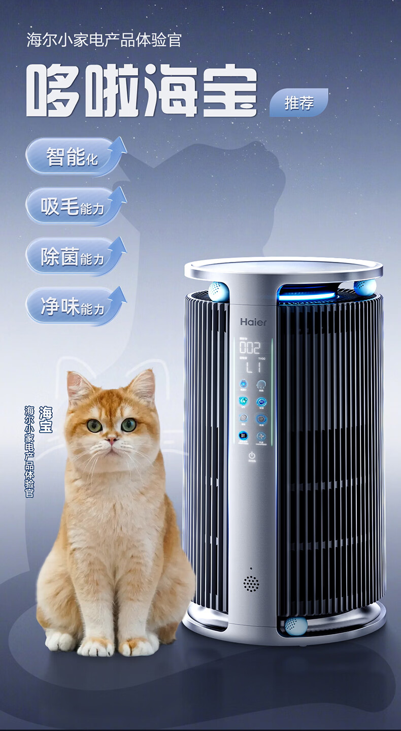 海尔海宝pro宠物净化器家用杀菌消毒除猫狗异味吸猫毛除过敏源暖垫养宠家庭空气净化器KJ550F-PROU1