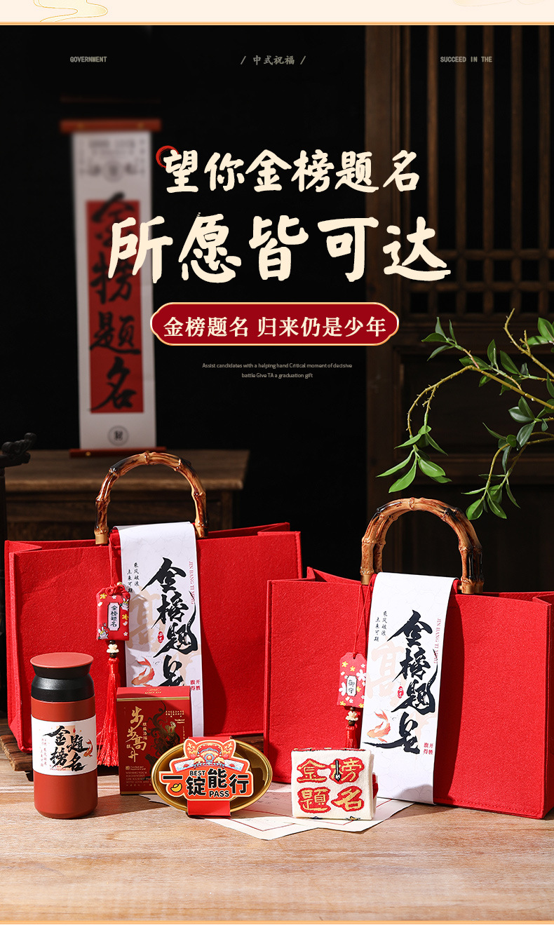 金榜题名 "十年寒窗,今朝决胜负;笑看风云,未来可期" |