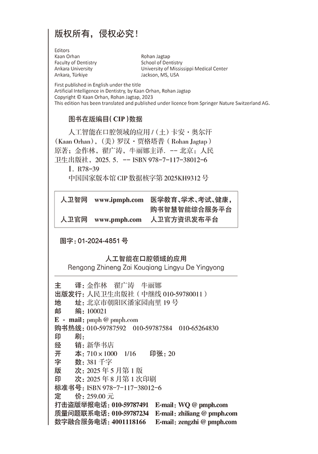 人工智能在口腔领域的应用 金作林 翟广涛 牛丽娜 主编 本书籍详细讲述了人工智能的发展现状 对口腔医学各个领域 人民卫生出版社