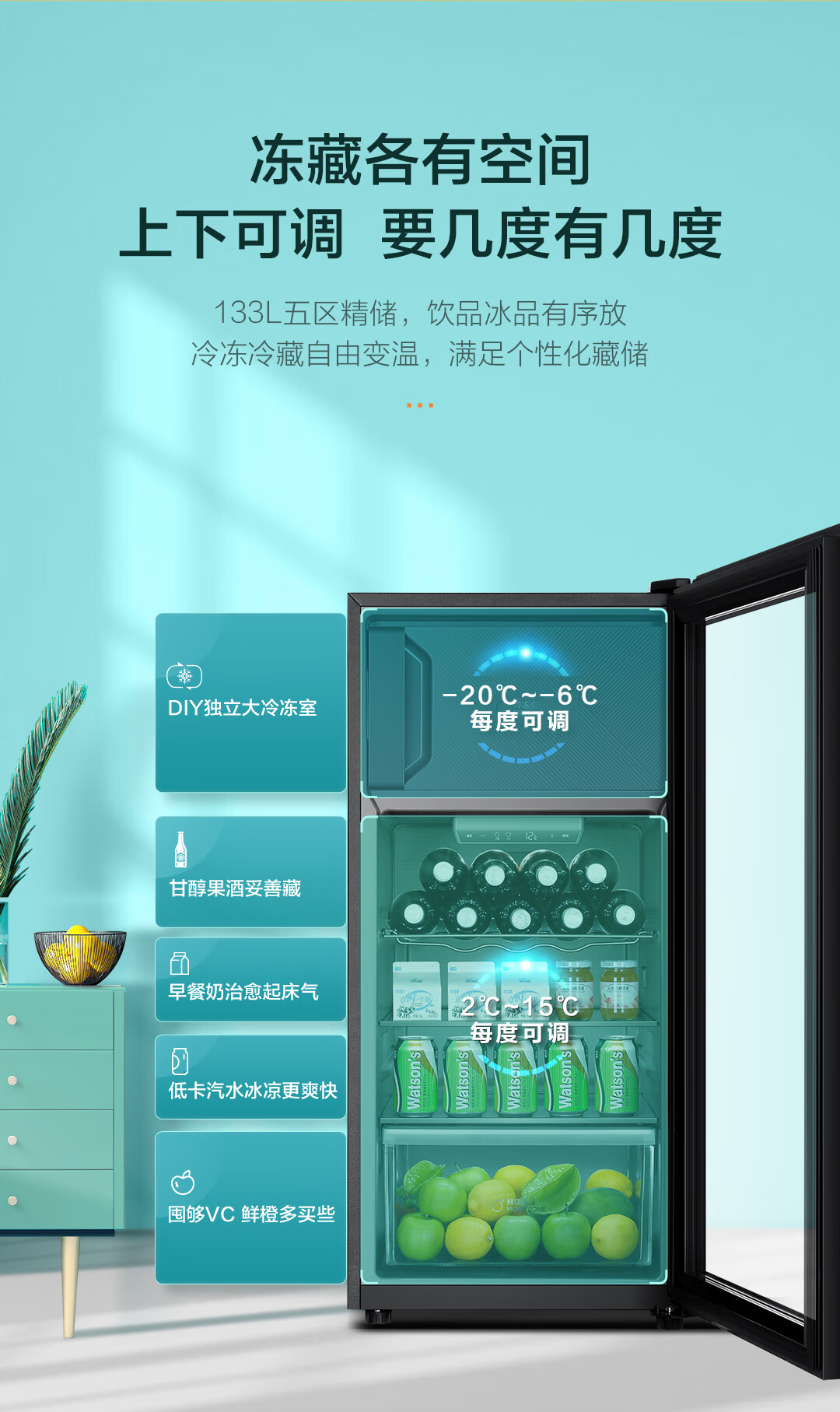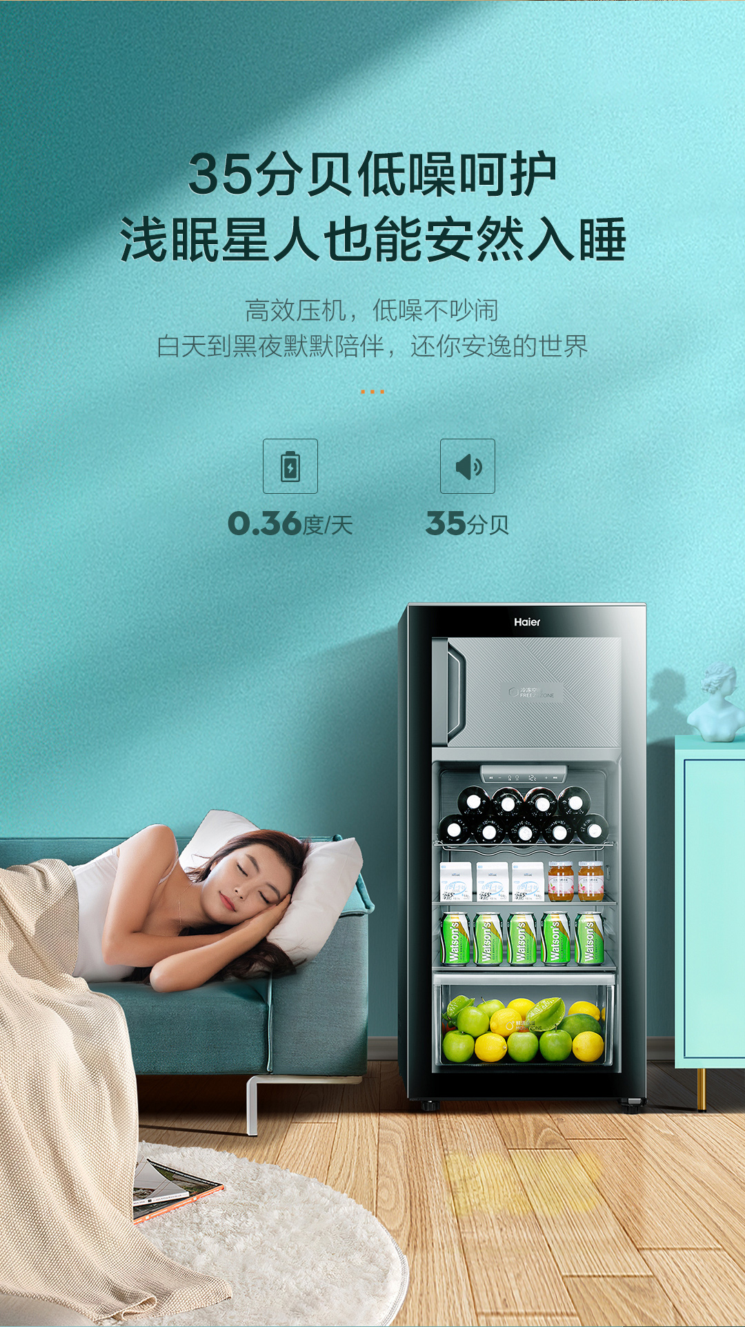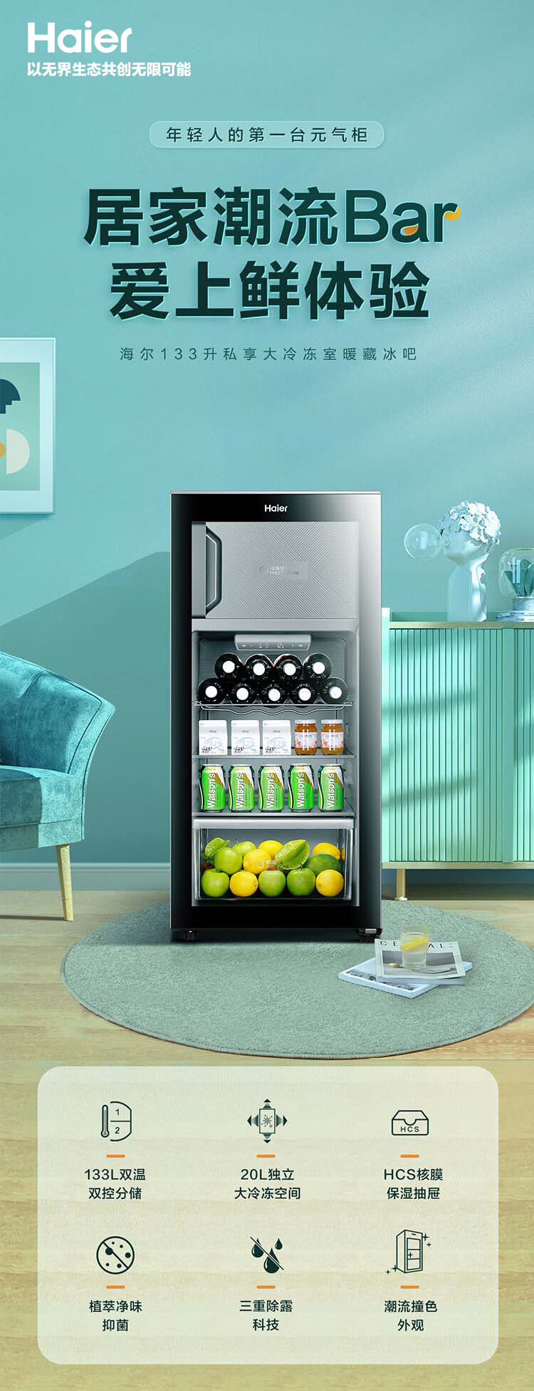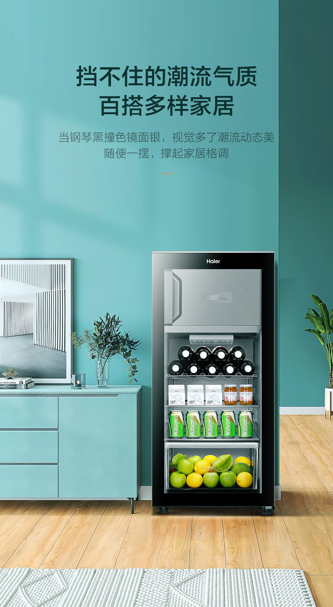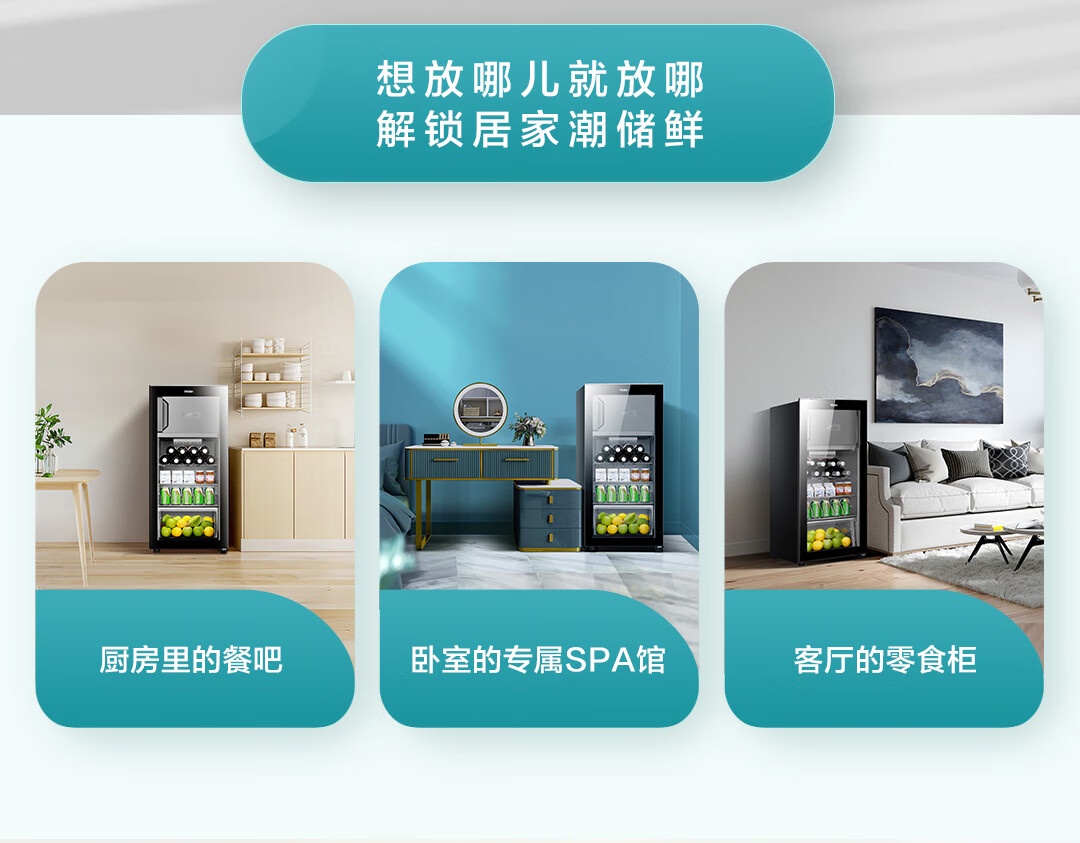 海尔(Haier)133升双温家用客厅办公室冷藏柜暖藏冰吧 茶叶饮料蔬果保鲜柜囤货DS0133LH69D1