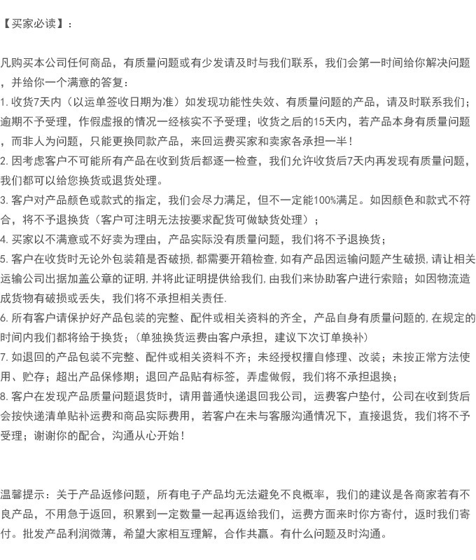 【关于售后】支持7天无理由退换货 收到后情况少货 破损 请及时联系客服!(质保三个月)