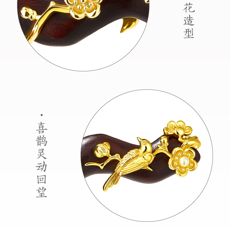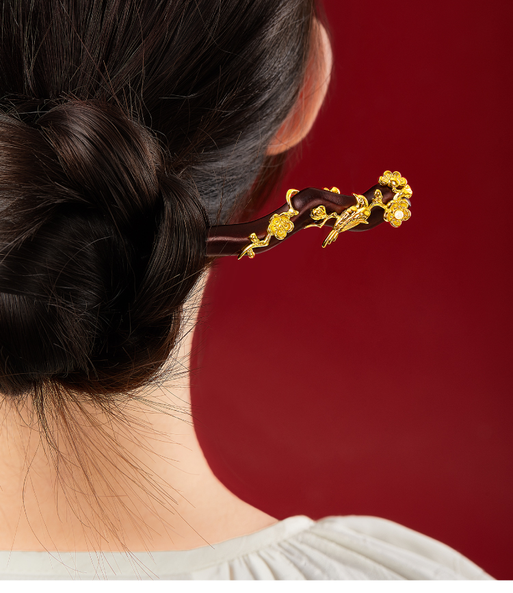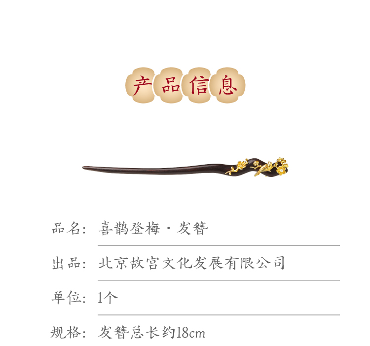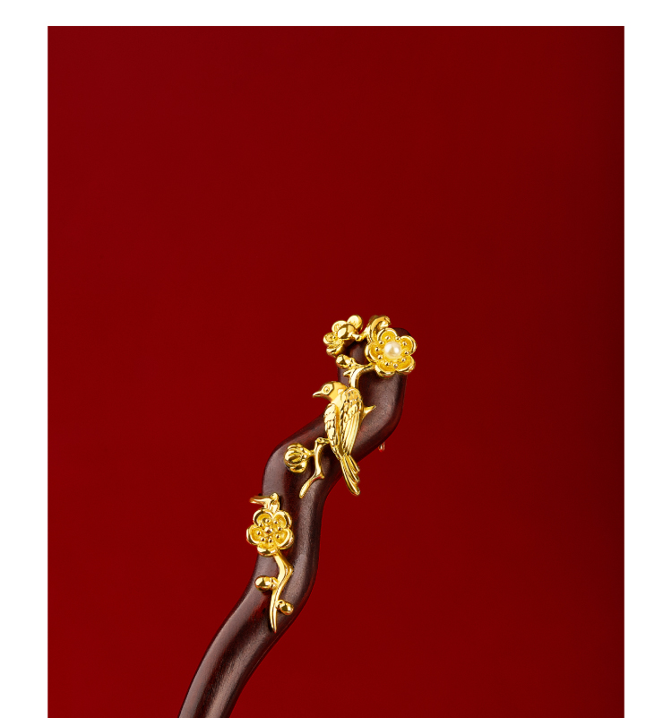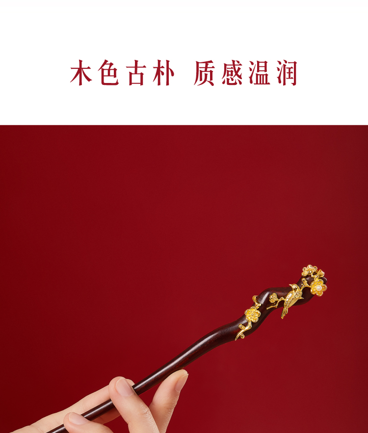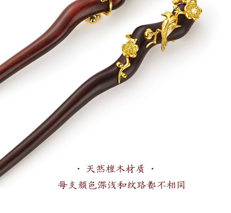 【故宫饰品】喜鹊登梅发簪新中式紫檀盘发簪子