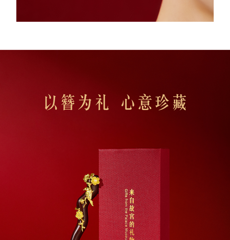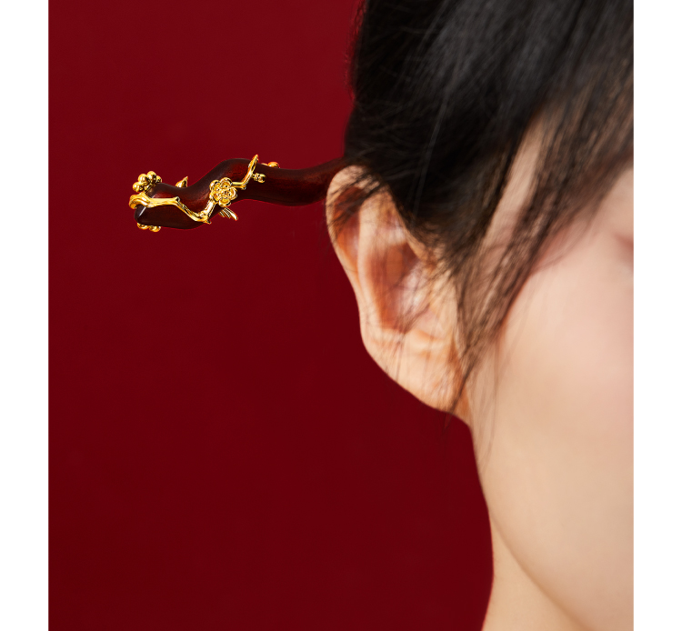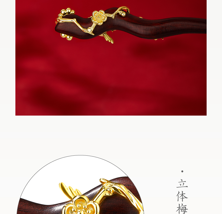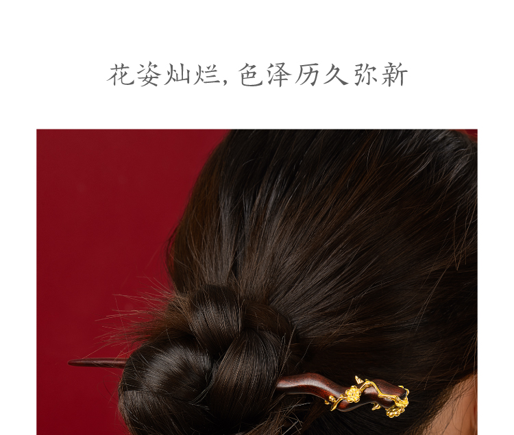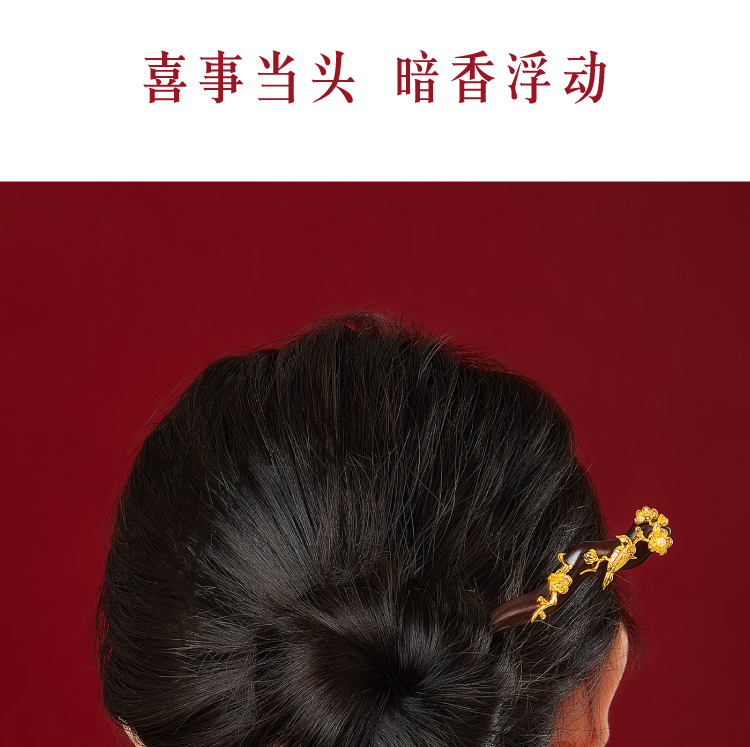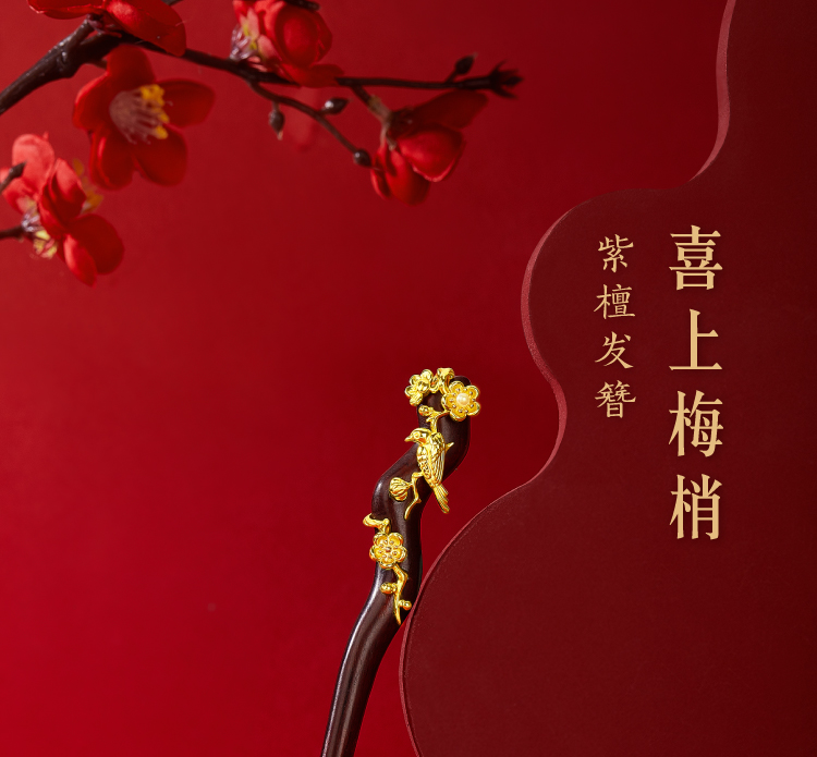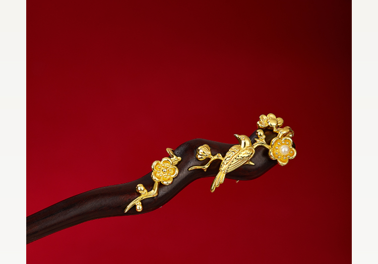 【故宫饰品】喜鹊登梅发簪新中式紫檀盘发簪子