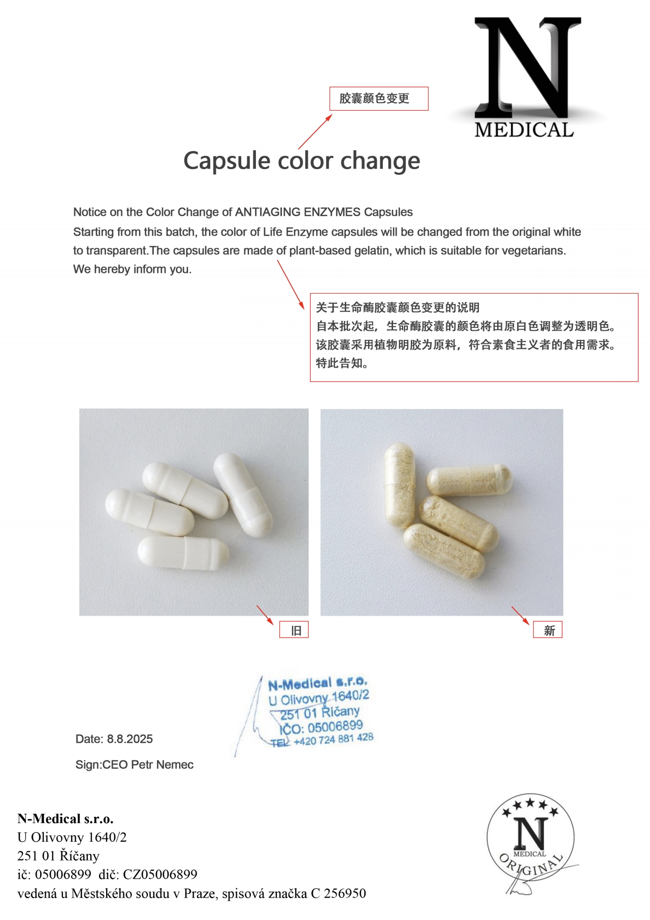 捷克 N-Medical生命酶代谢强吸收减重膳食胶囊120粒