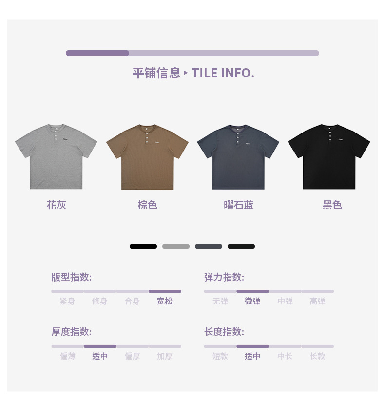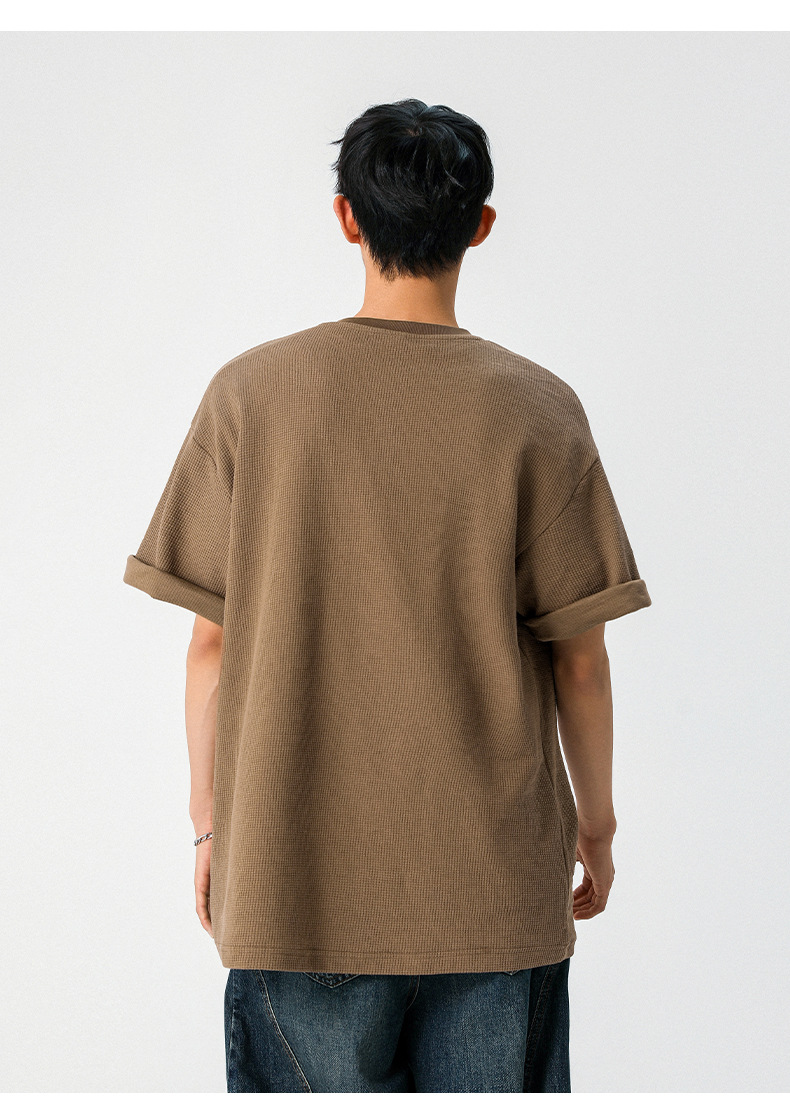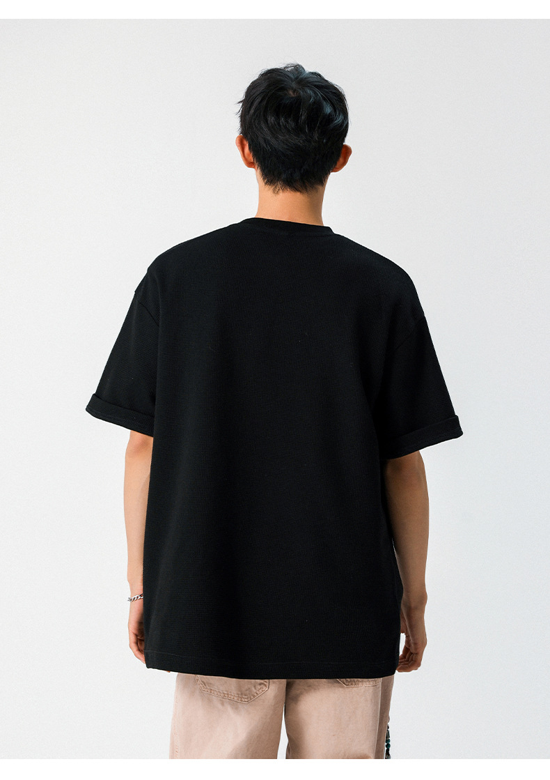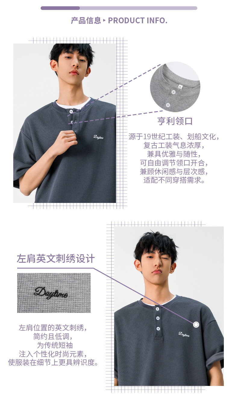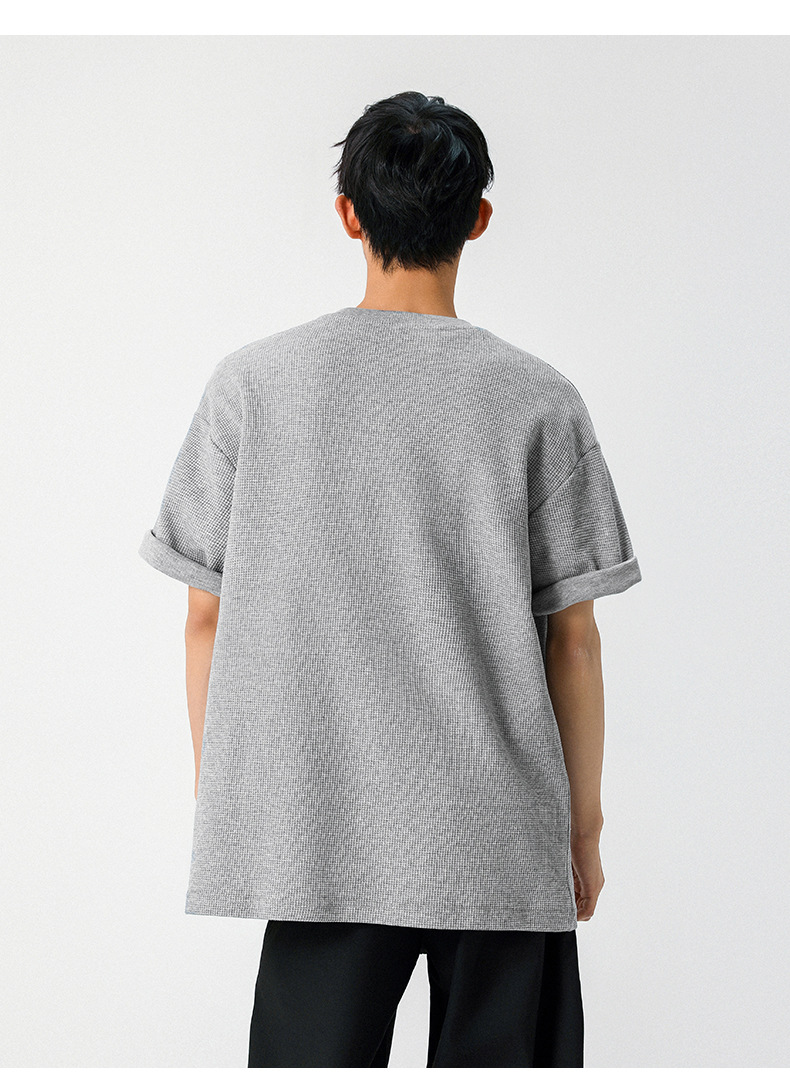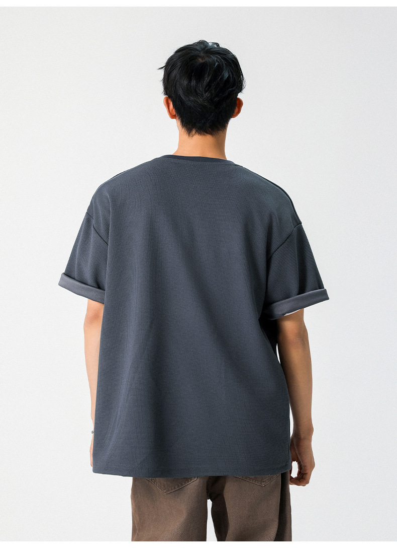 【YW】无忧购韩系重磅宽松撞色字母刺绣亨利领华夫格短袖T恤男MT7199(截单后7天发货)