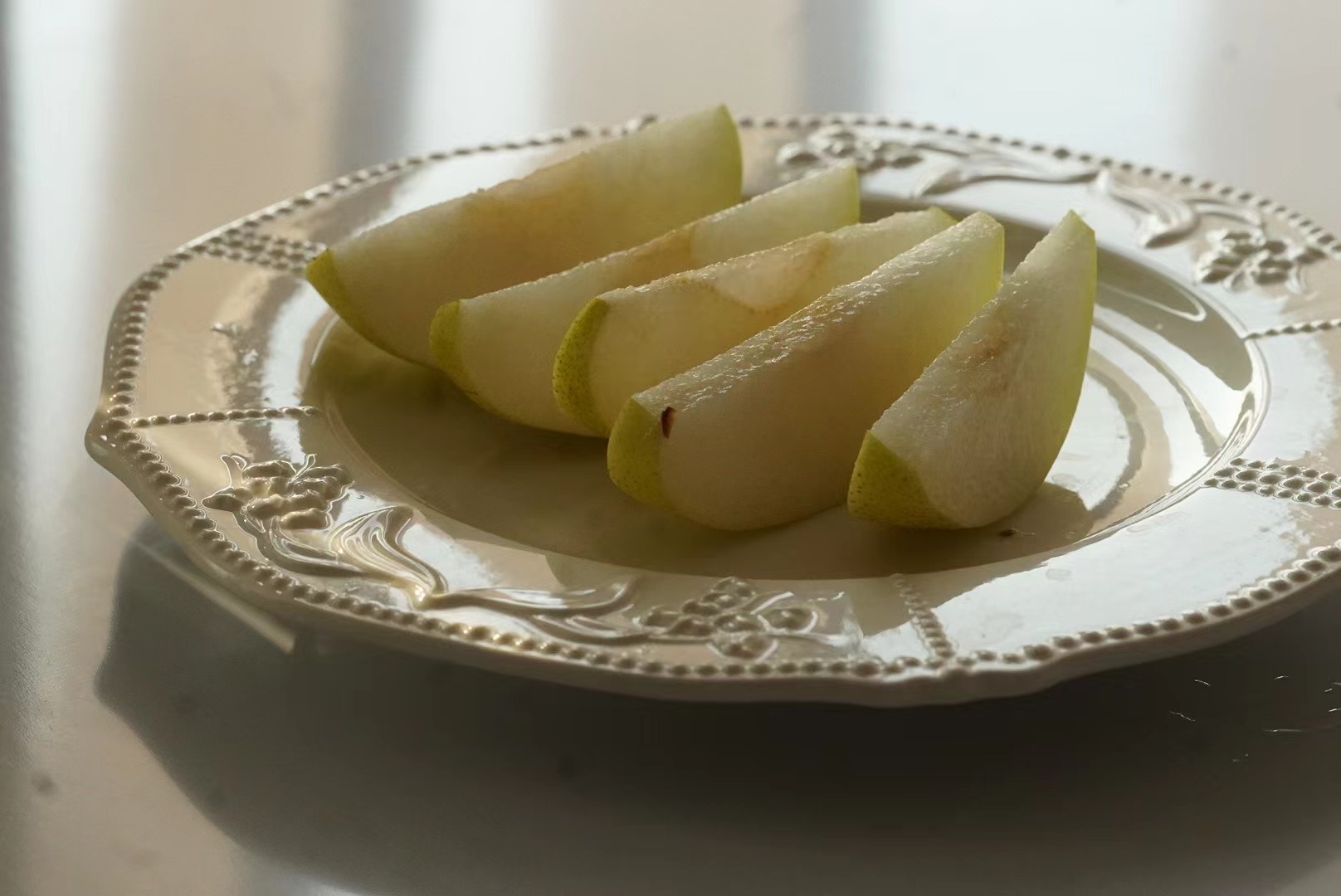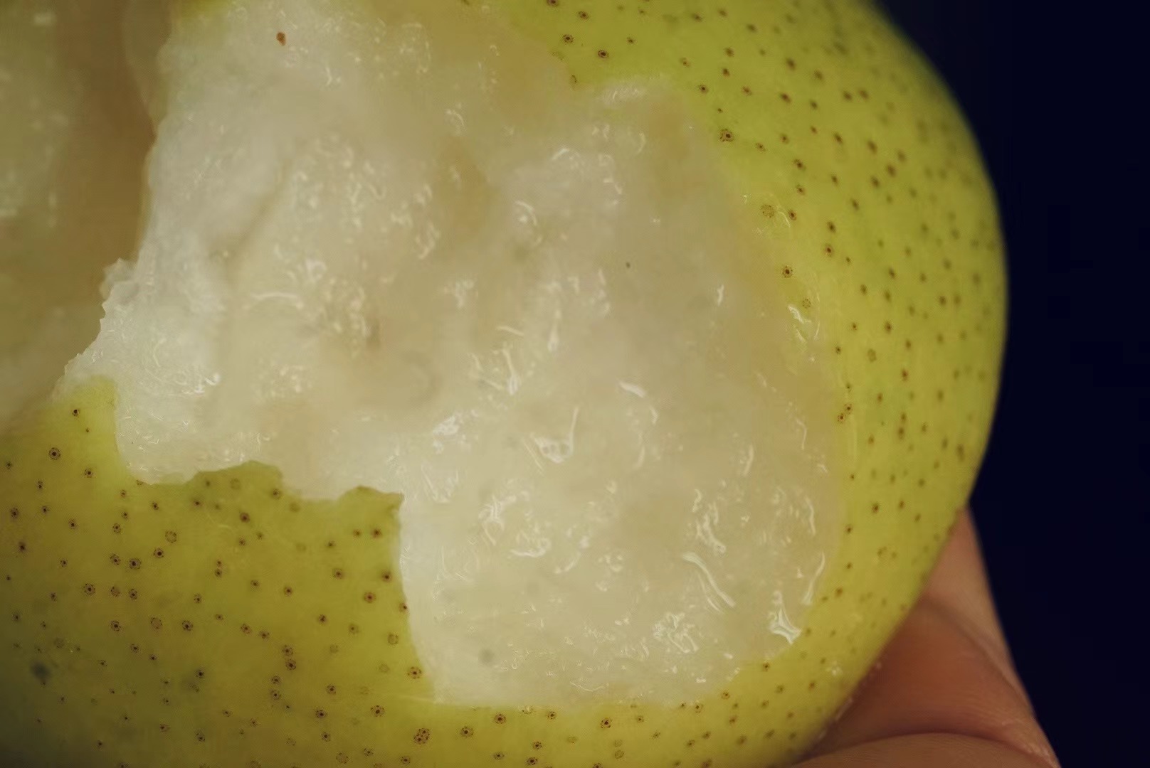 比如夏天的蟠桃,今天的皇冠梨,来自河北衡水饶阳的农场,果园的主人姓刘。不使用农业化肥,不用除草剂。这样种出的水果,在最早的几年,没有市场卖不上价格,也没有销路,全烂在地里。