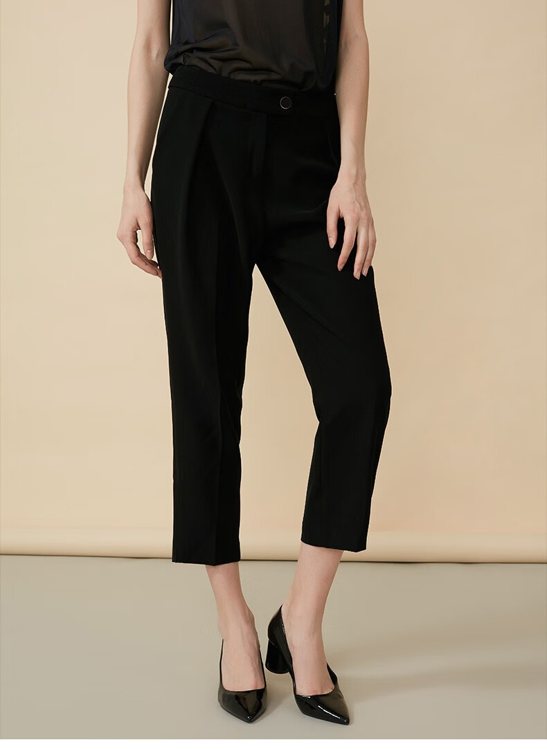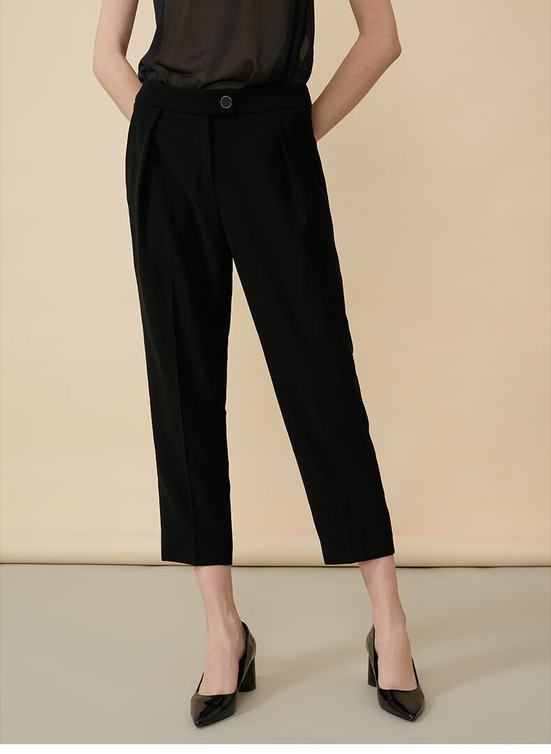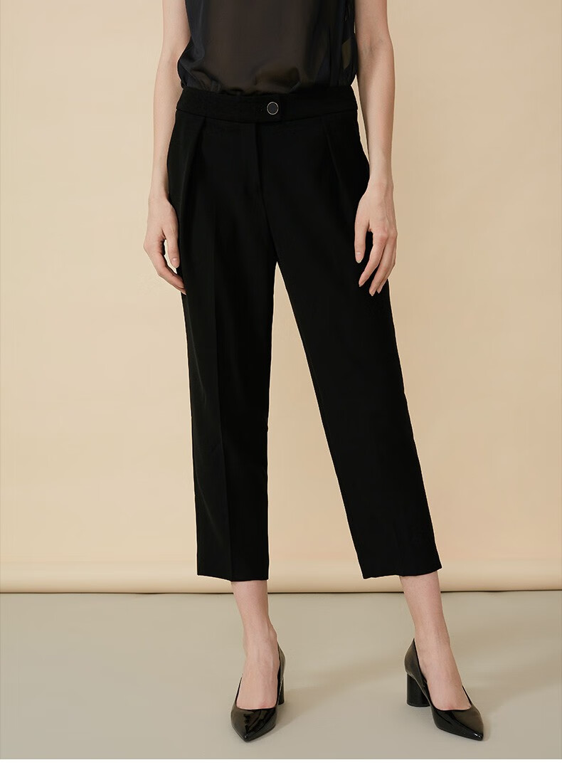皮尔卡丹女装年秋冬新款黑色休闲裤长裤直筒裤P84TL62B0