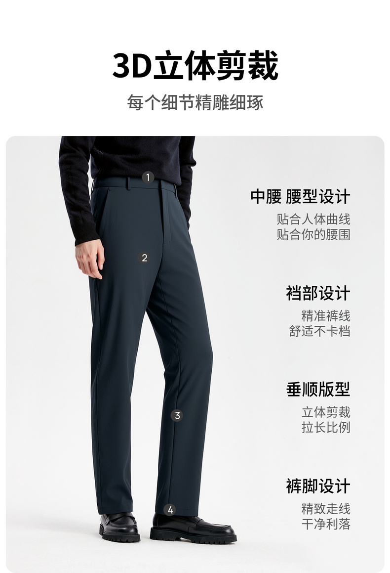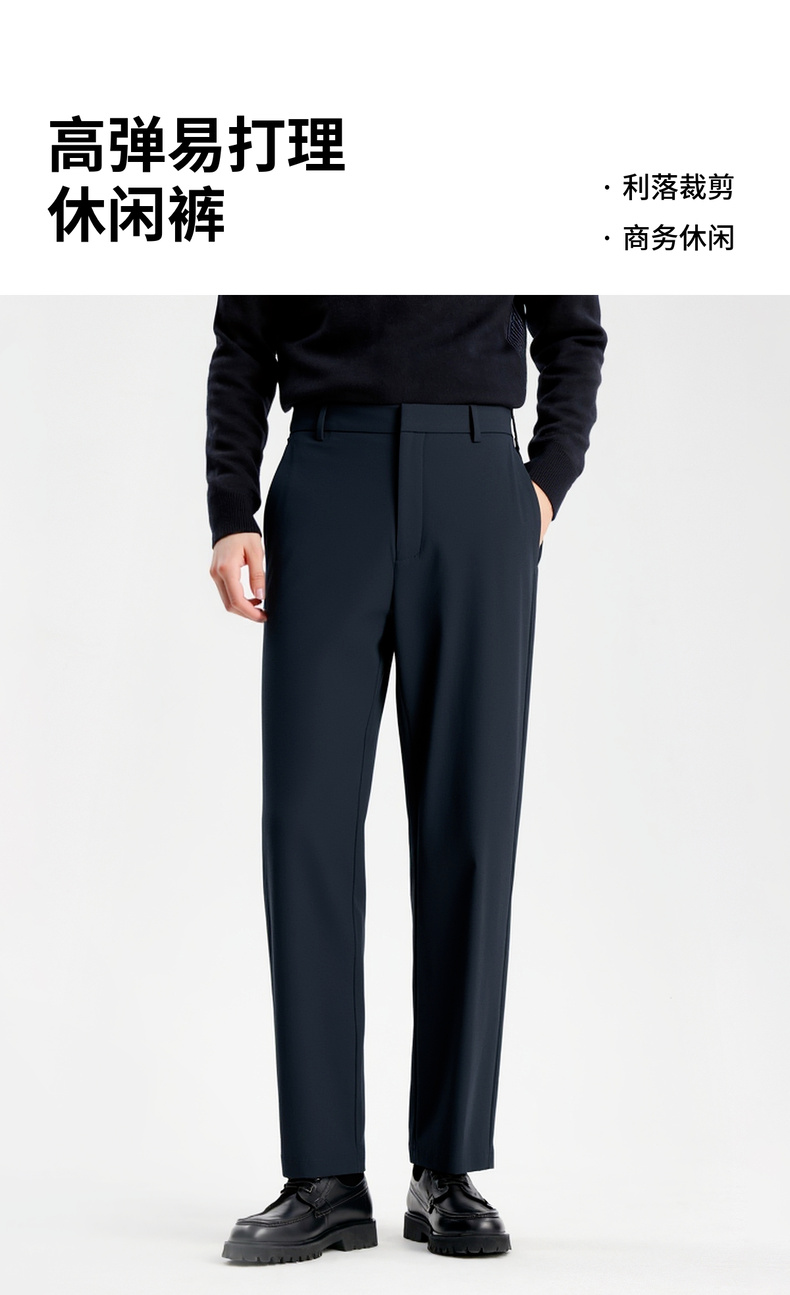圣得西男士弹力扛皱直筒裤2025秋季新款轻商务简约通勤易打理长裤