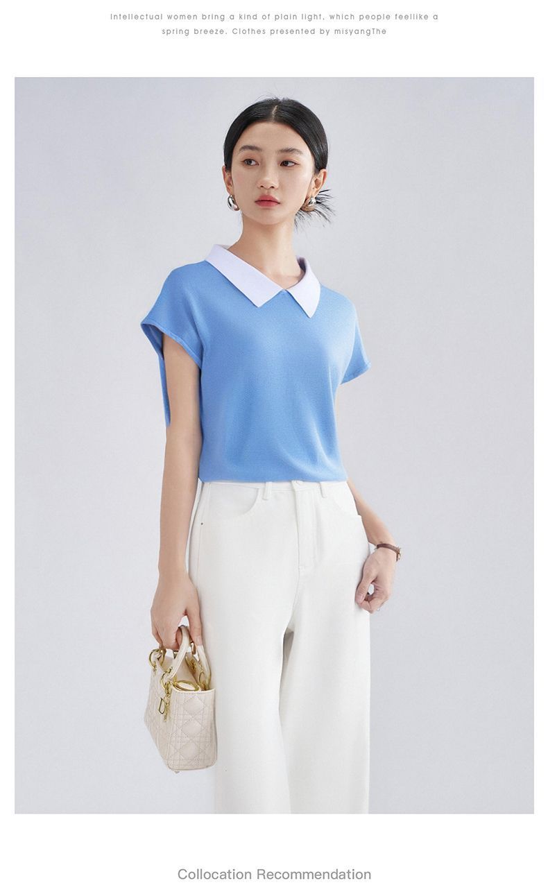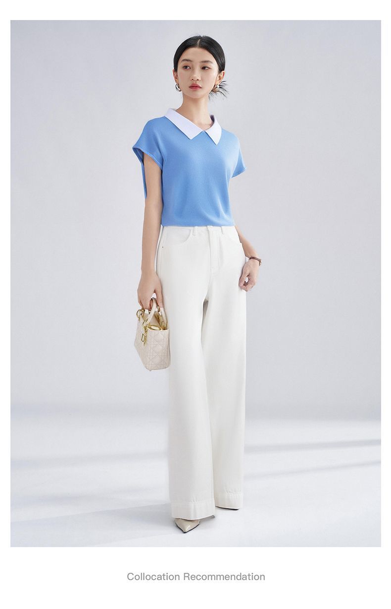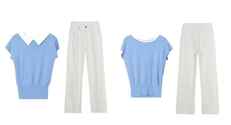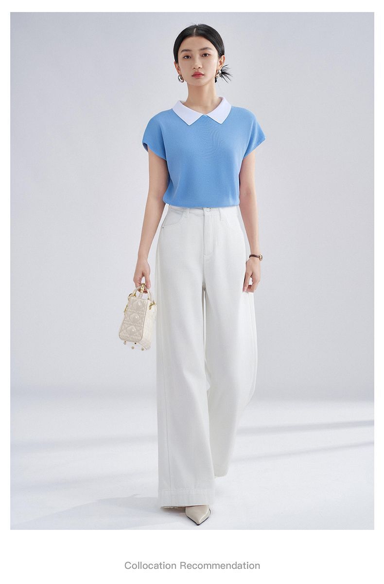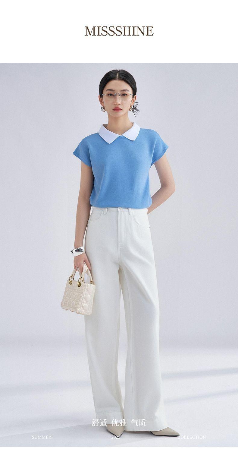 米思阳新款撞色娃娃针织T恤阔腿垂感休闲裤两件套女5Z25BG4074