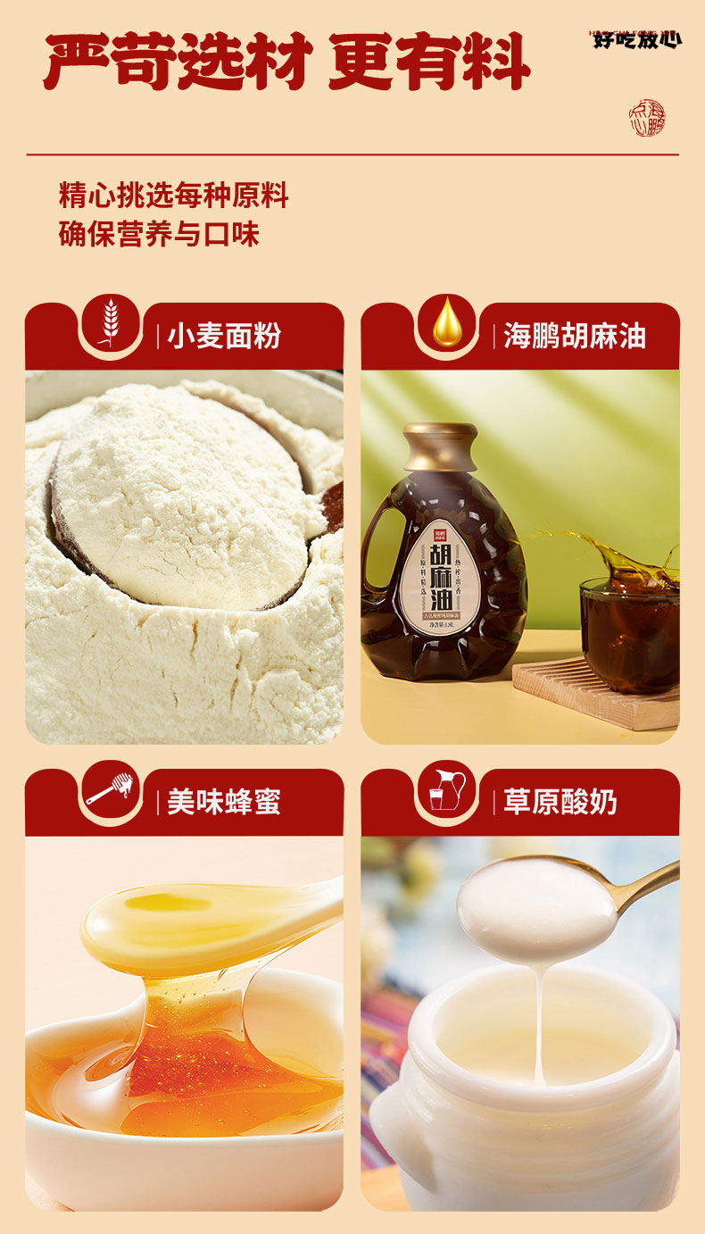 【传统月饼】海鹏丰镇月饼玫瑰、红枣、冰糖、黑糖蜂蜜、月饼特色胡麻油糕点10枚装