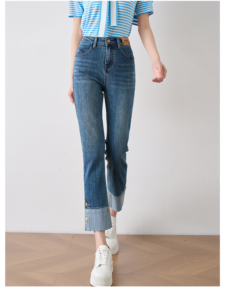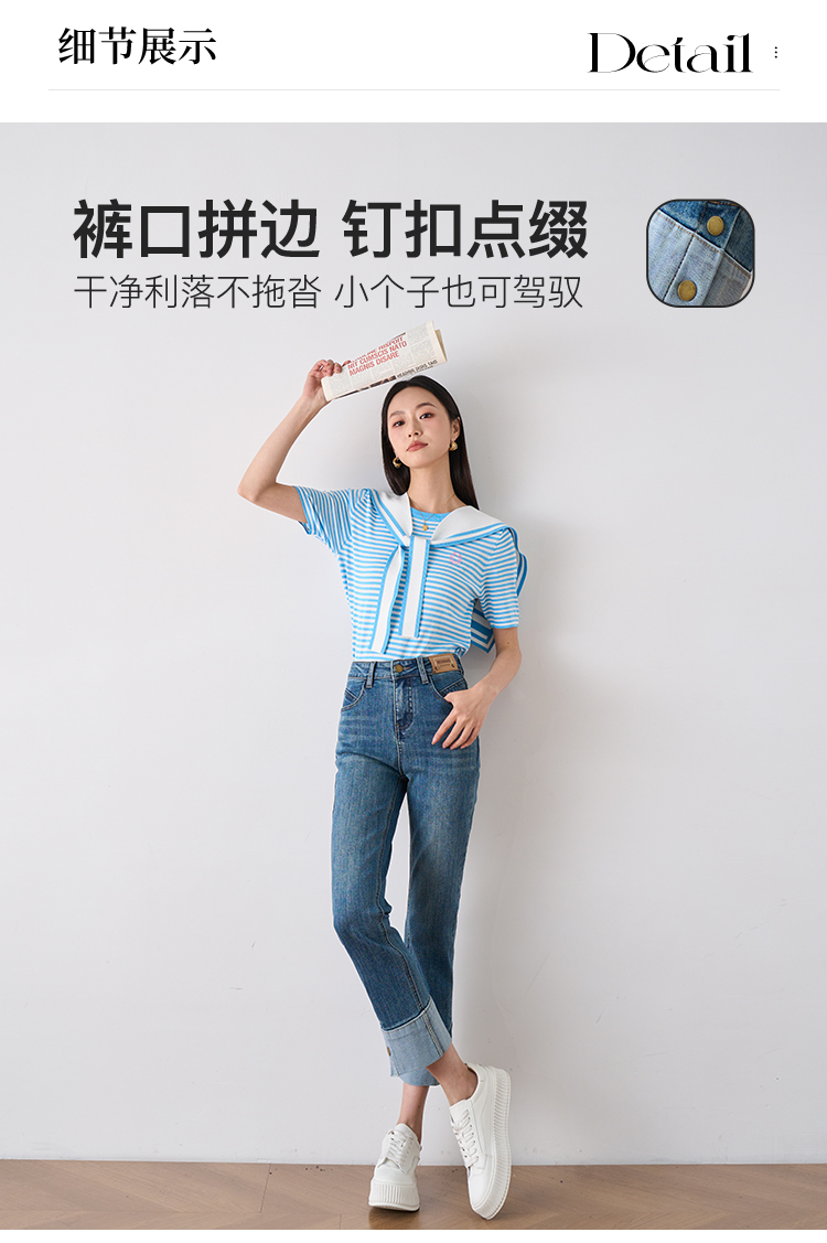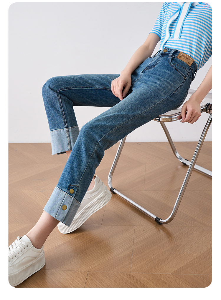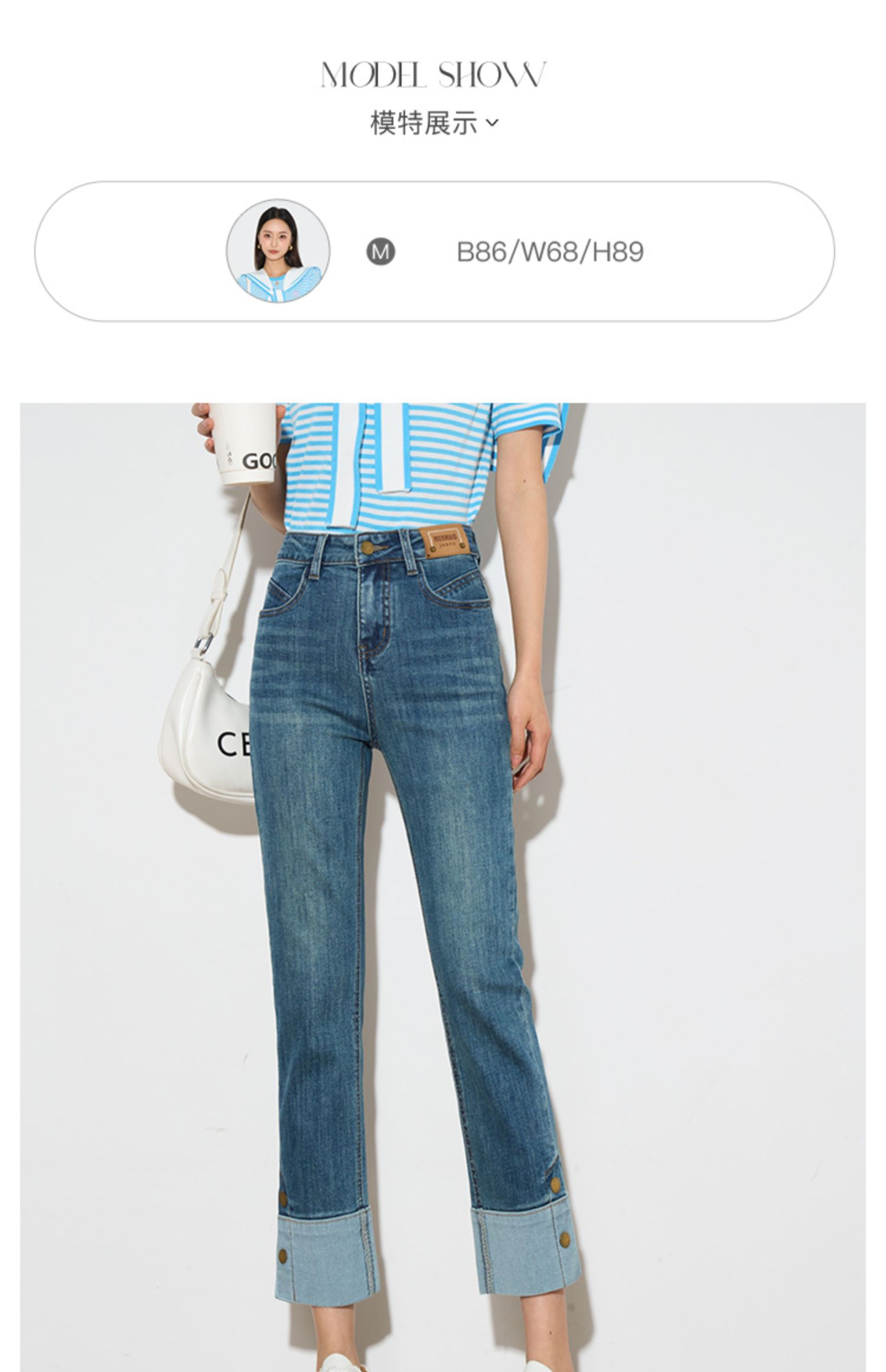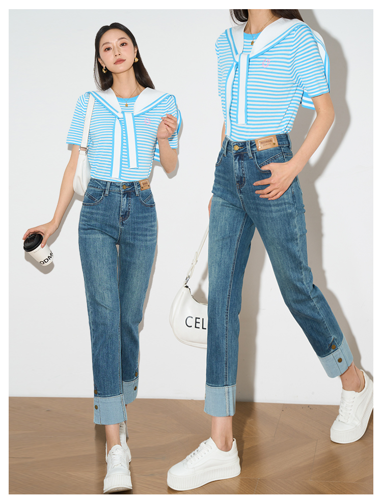OLrain欧芮儿蓝色直筒牛仔裤女夏季2024年新款高腰阔腿显瘦长裤