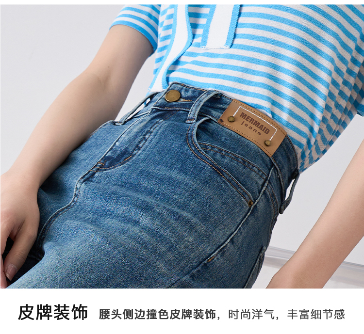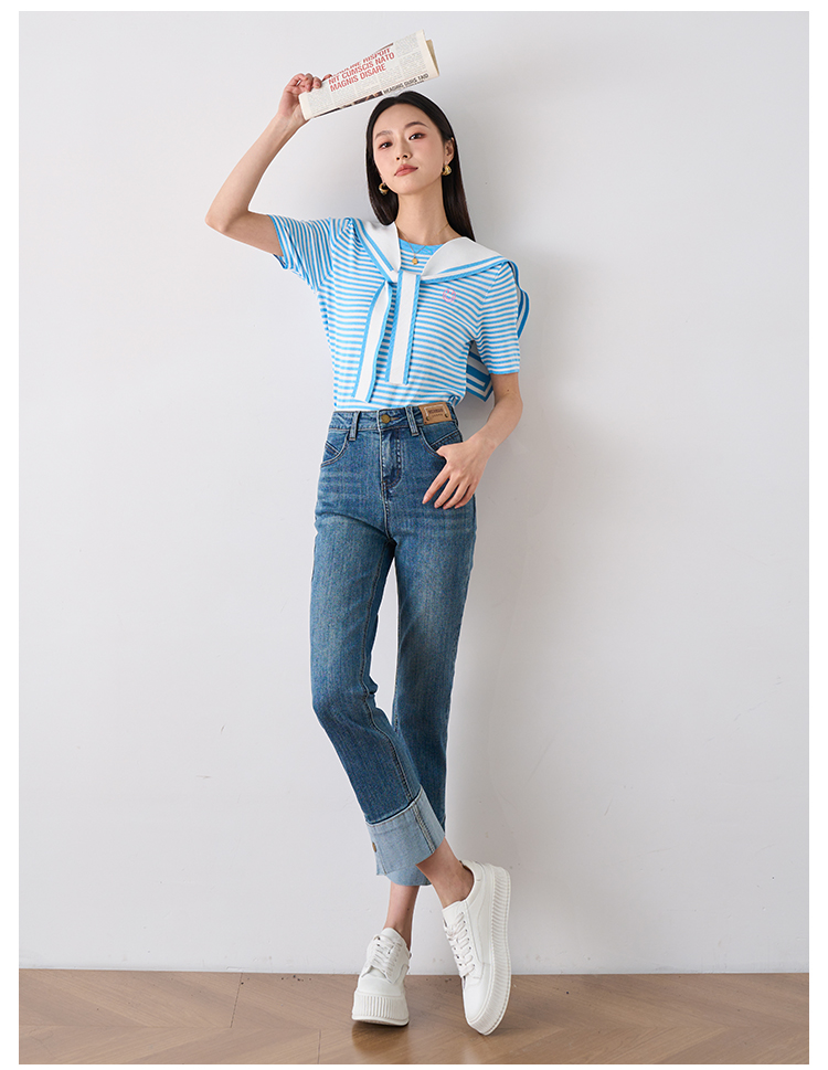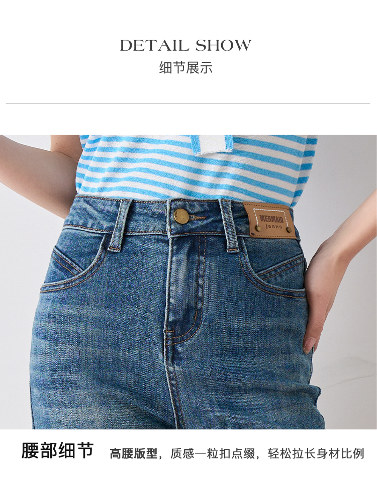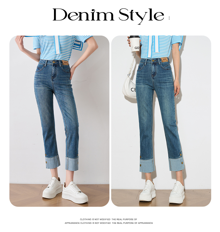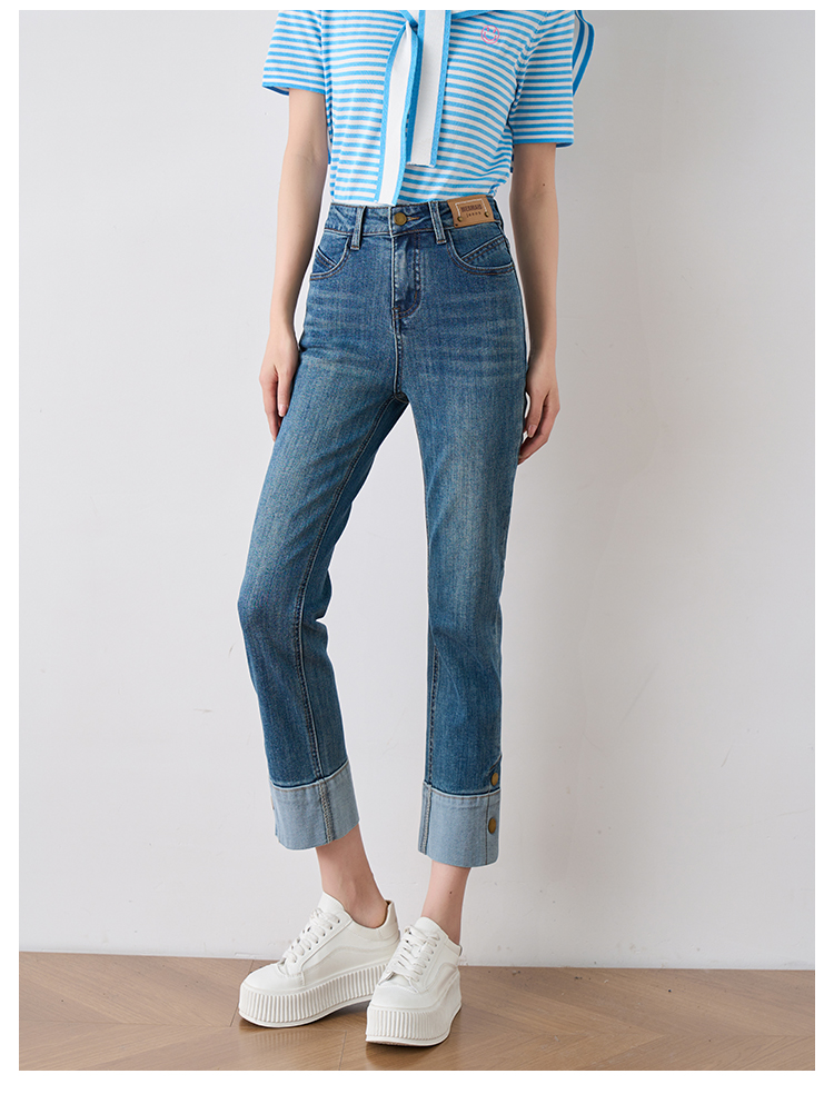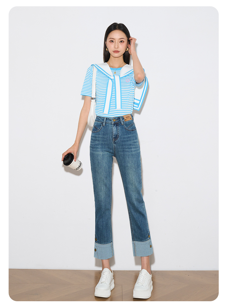 OLrain欧芮儿蓝色直筒牛仔裤女夏季2024年新款高腰阔腿显瘦长裤