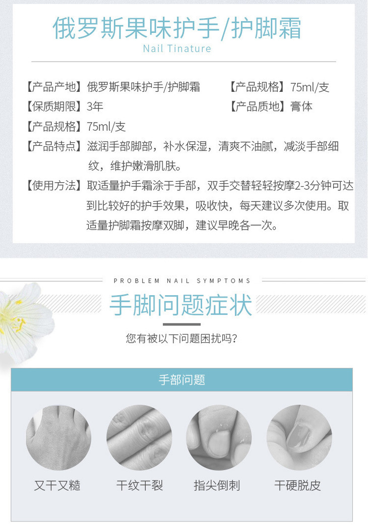 特点:极易吸收,淡淡的水果清香、清爽的质感,有效改善手部循环和现象,防止干燥粗糙。