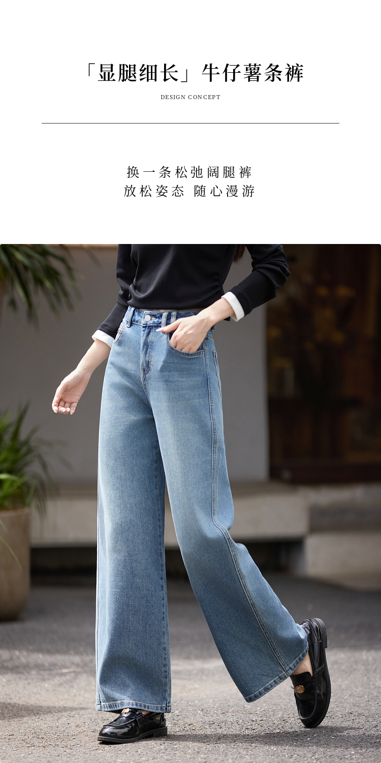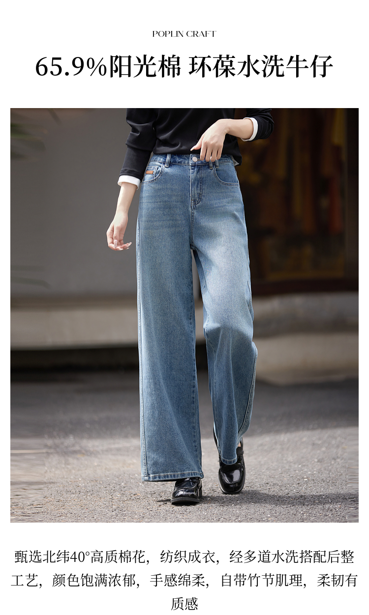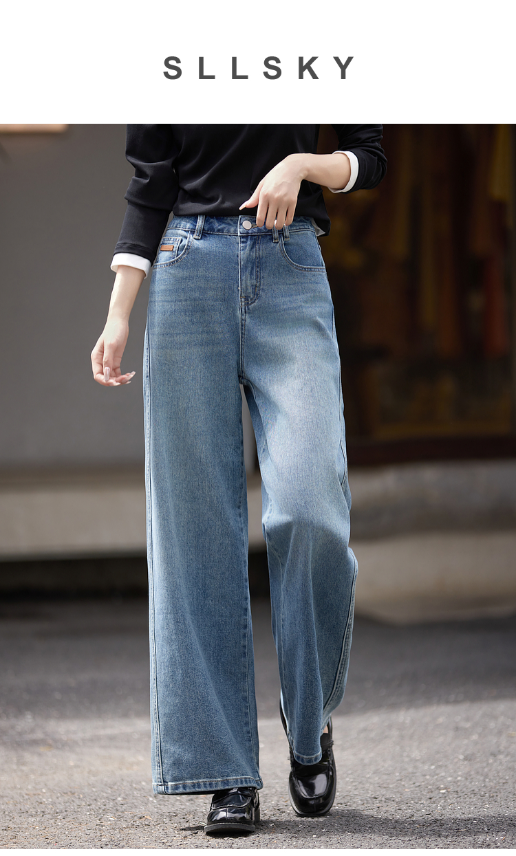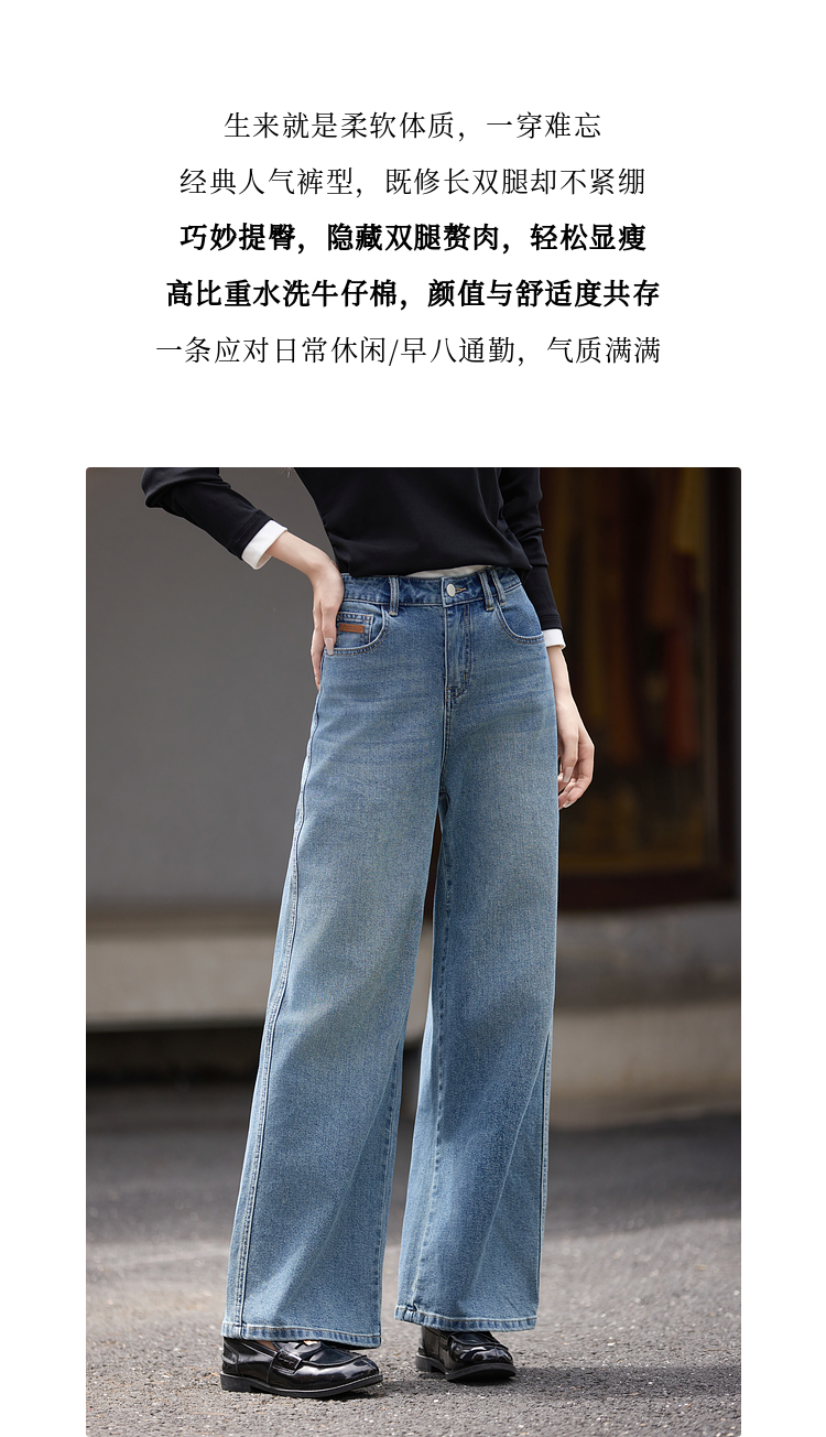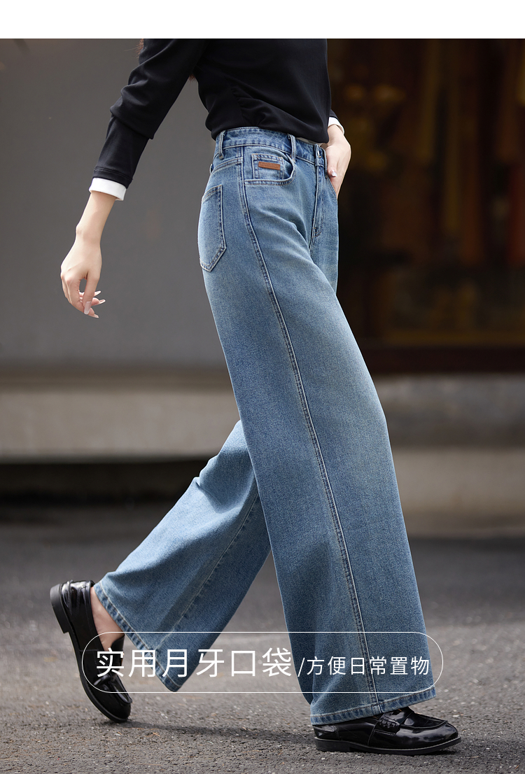 【09/03新品】熙世界松弛感浅蓝阔腿牛仔裤女2025秋季新款高腰遮跨显瘦阔腿长裤