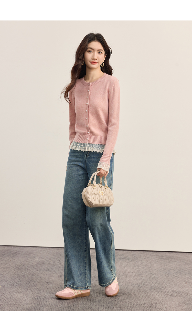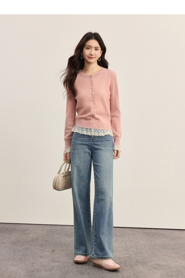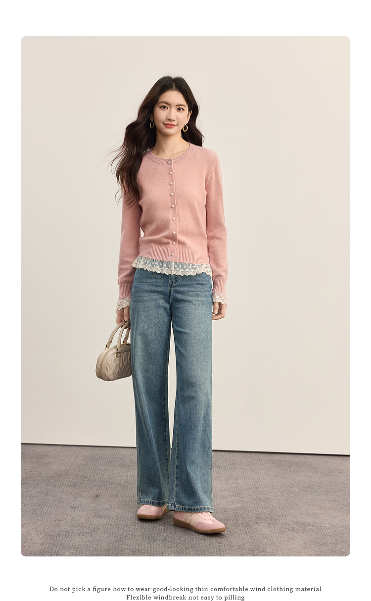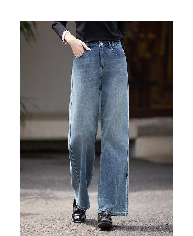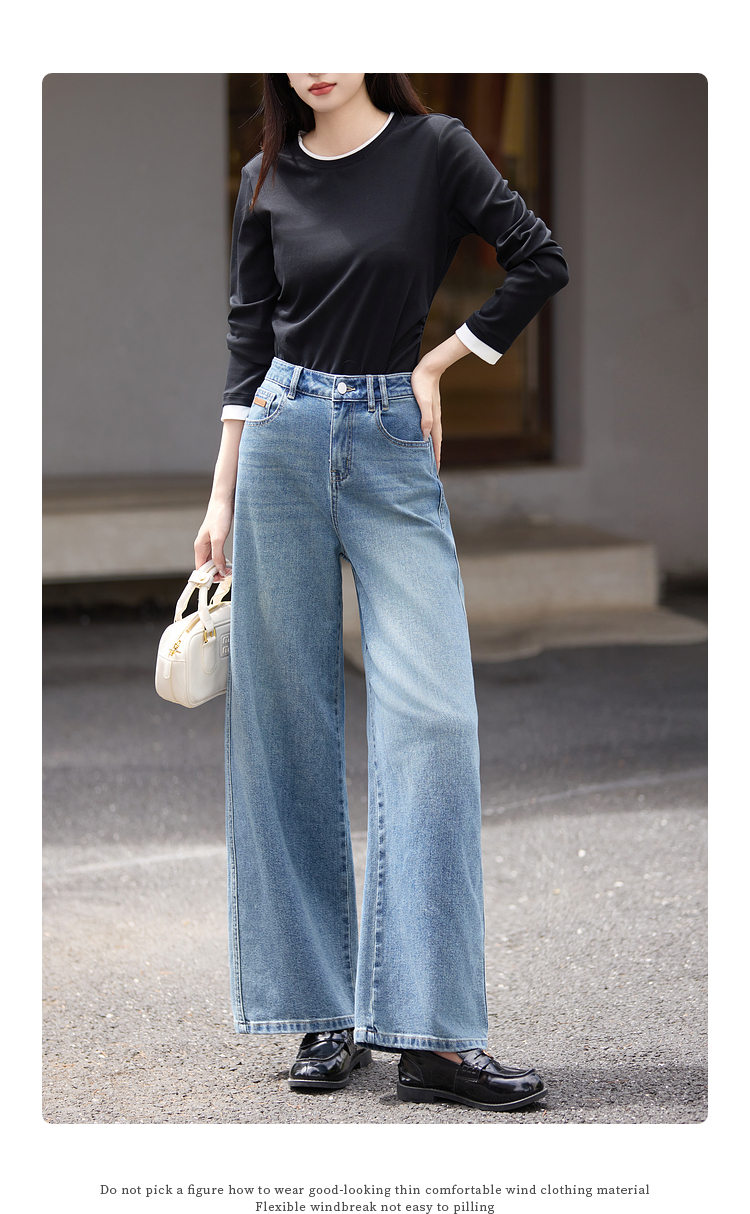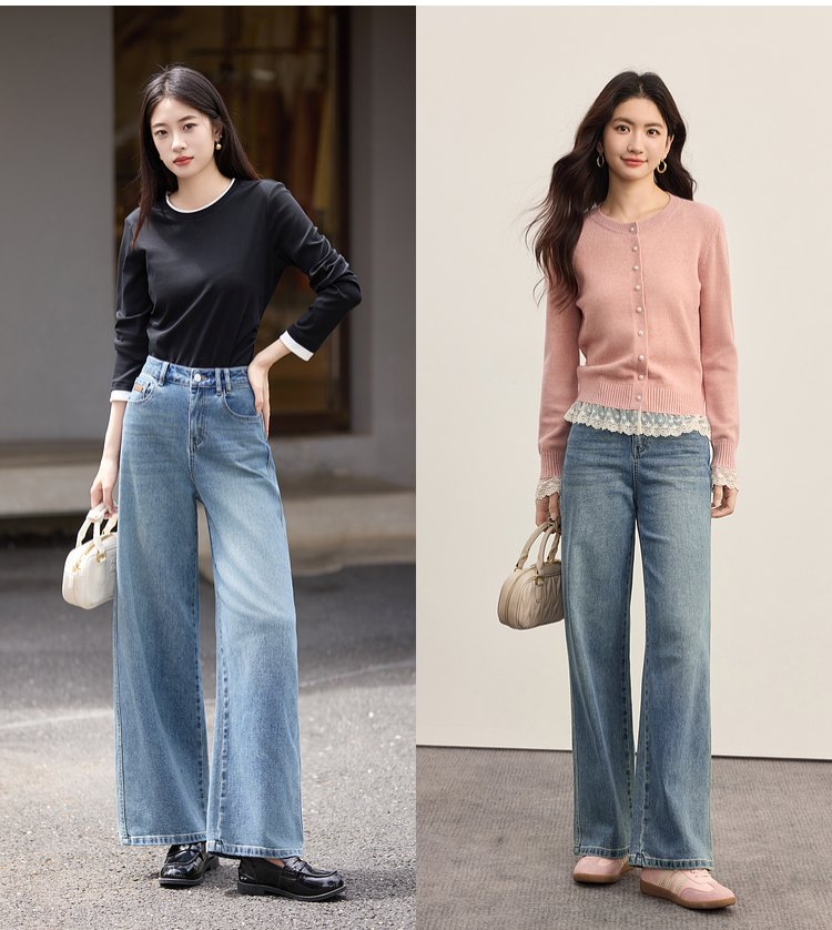 【09/03新品】熙世界松弛感浅蓝阔腿牛仔裤女2025秋季新款高腰遮跨显瘦阔腿长裤