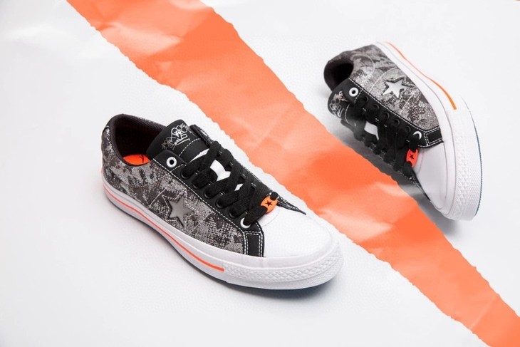 原装硫化工艺#市面最为正确PU硅蓝中底#金属质感 + 水晶外底 匡威一星系列经典低帮复古皮革休闲百搭硫化板鞋“黑橙银金属绣”165743C