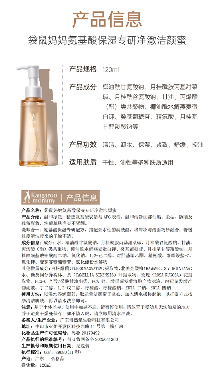 【洁颜蜜】洗•卸•养3合1 温和洁面 舒缓紧绷 袋鼠妈妈氨基酸保湿专研净澈洁颜蜜 -120ml