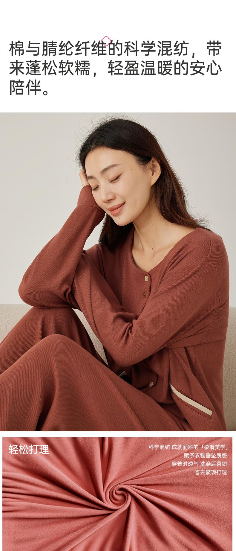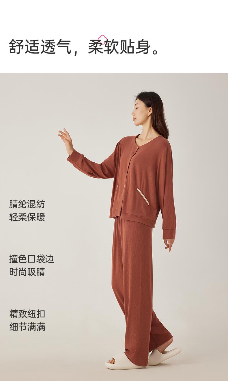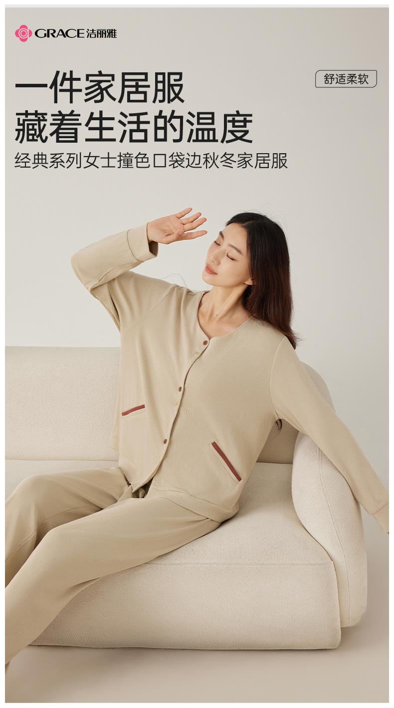 洁丽雅家居服套装长袖睡衣可外穿撞色保暖经典透气亲肤透气垂感