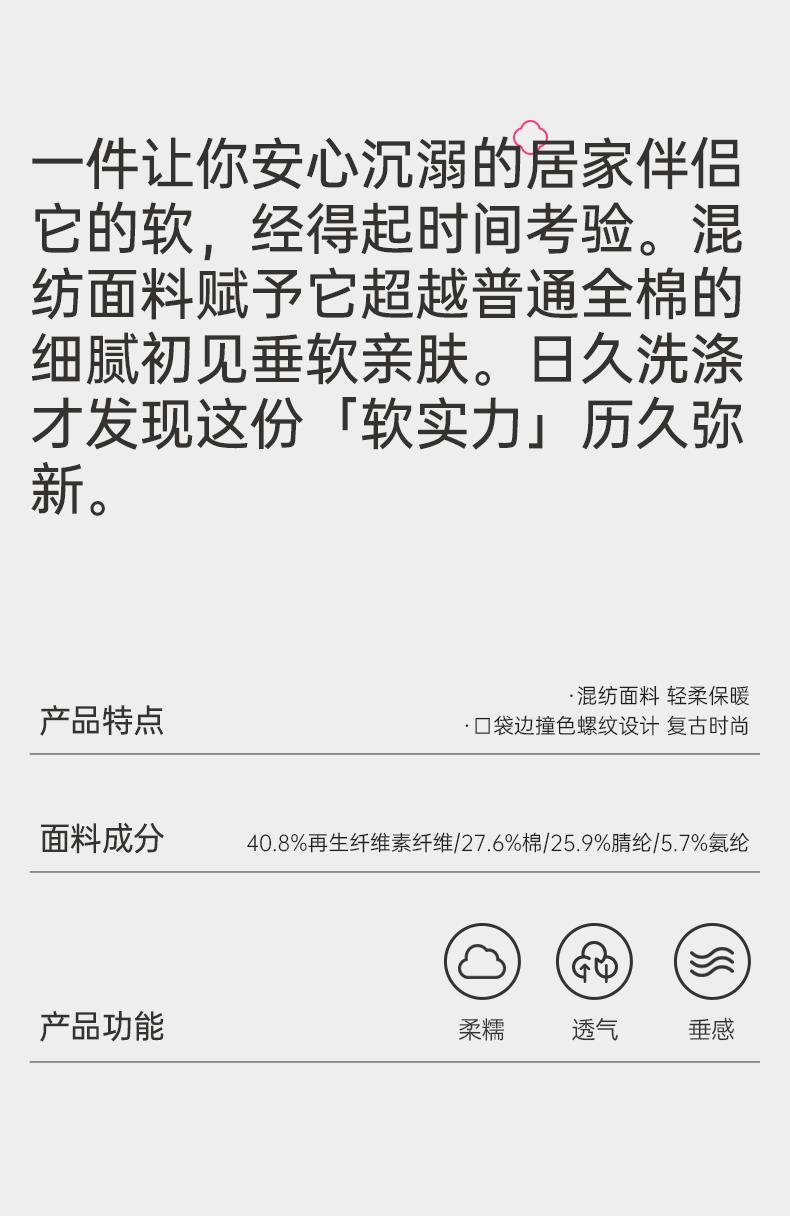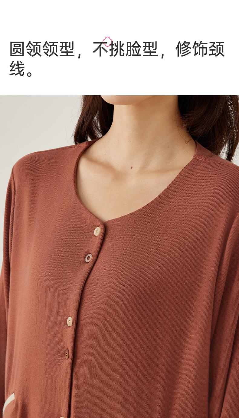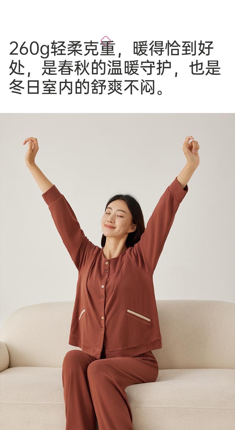 洁丽雅家居服套装长袖睡衣可外穿撞色保暖经典透气亲肤透气垂感