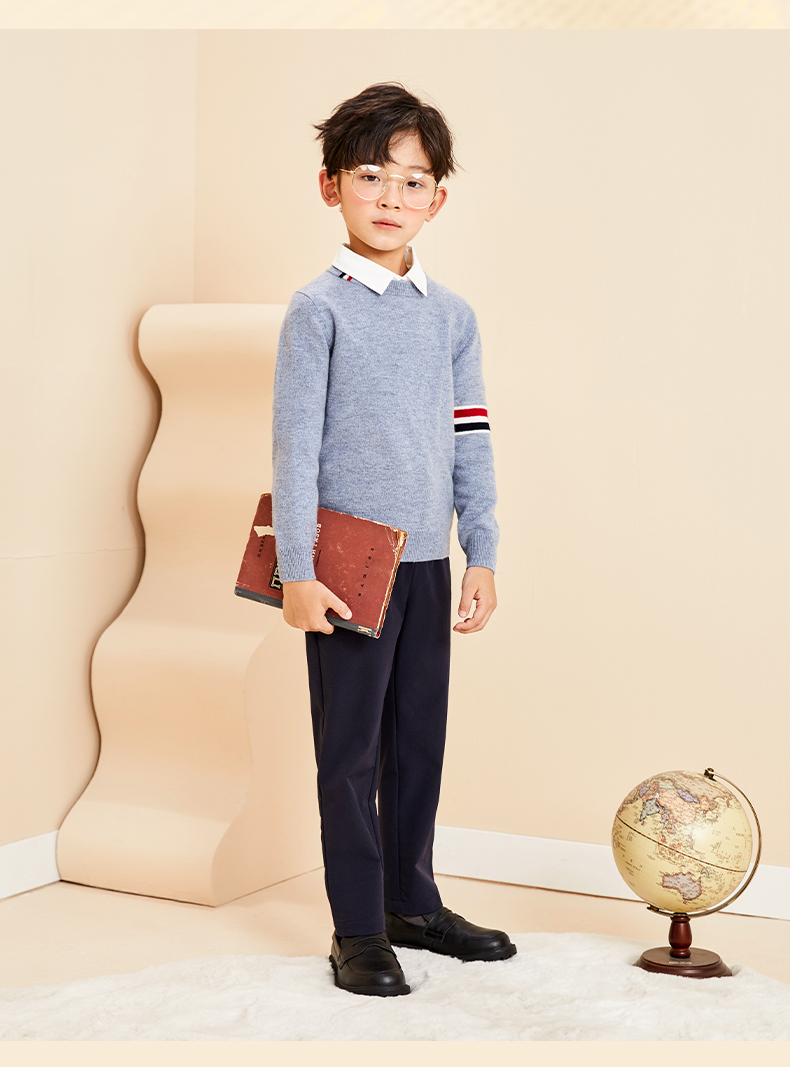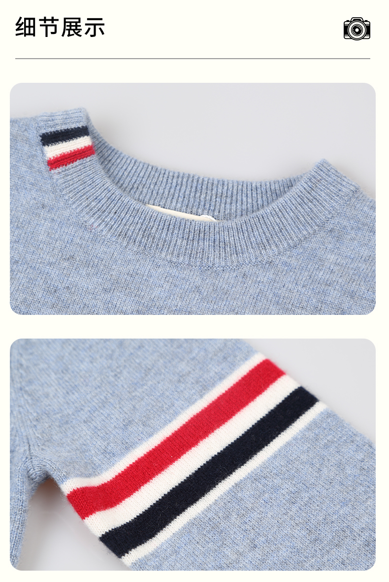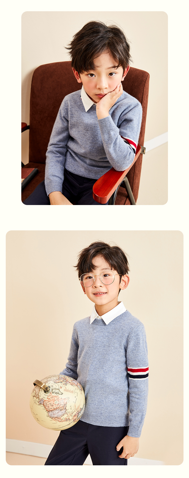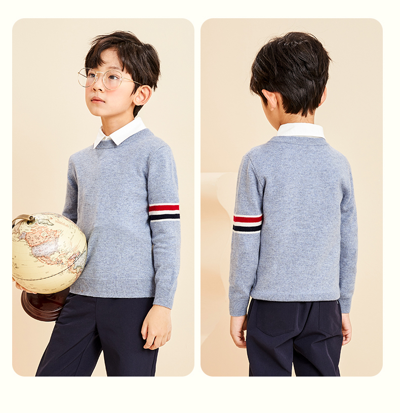 mettekids儿童羊绒衫春秋新款拼接打底毛衣男童针织衫圆领套头衫