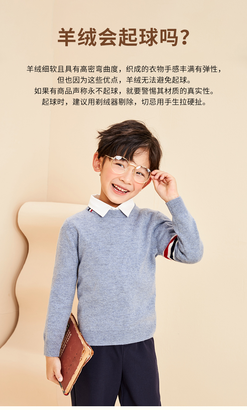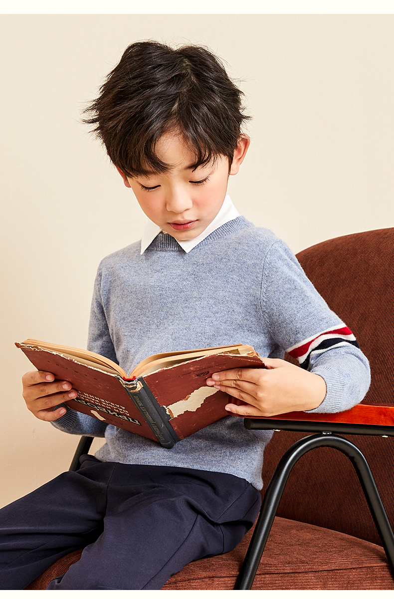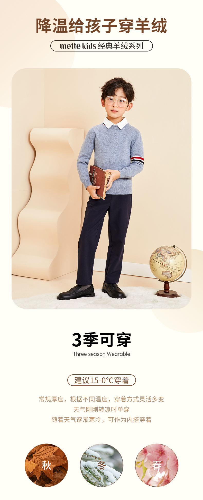 mettekids儿童羊绒衫春秋新款拼接打底毛衣男童针织衫圆领套头衫
