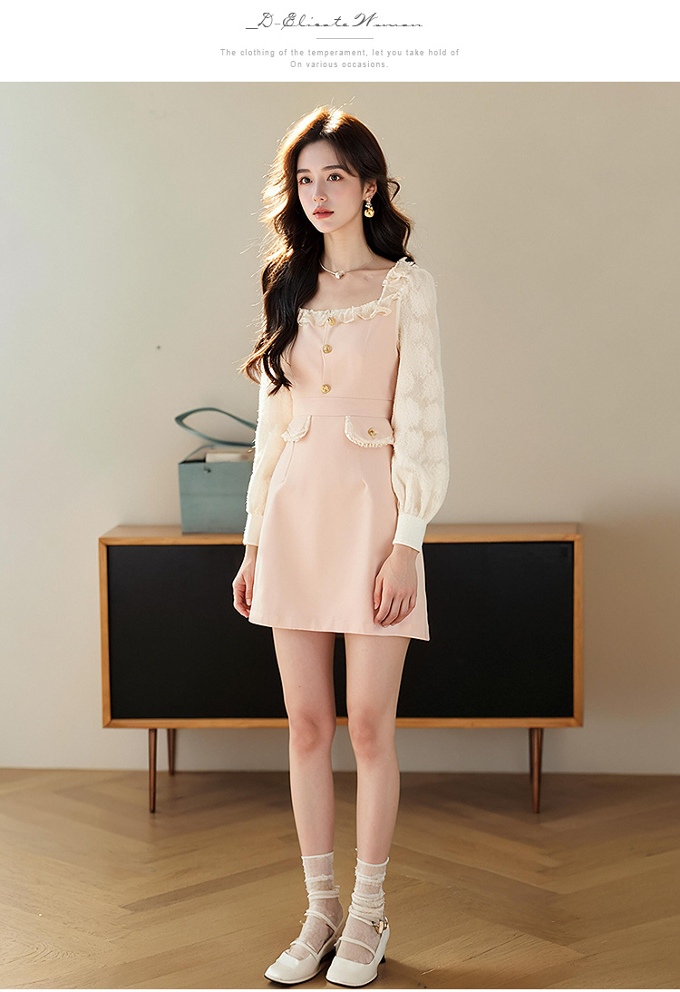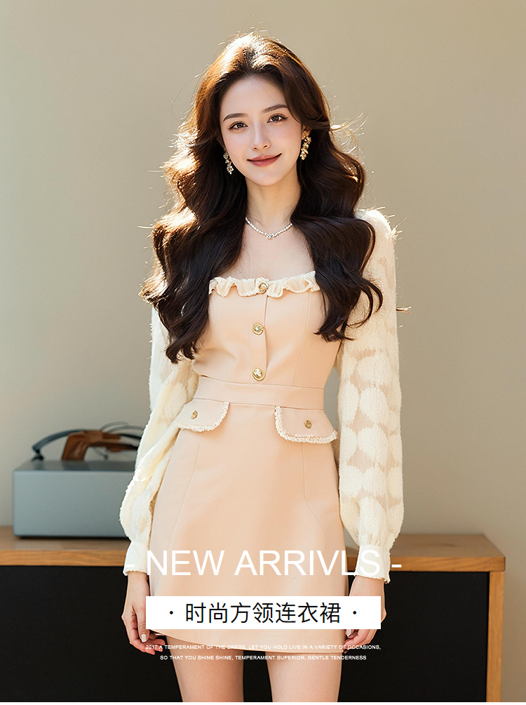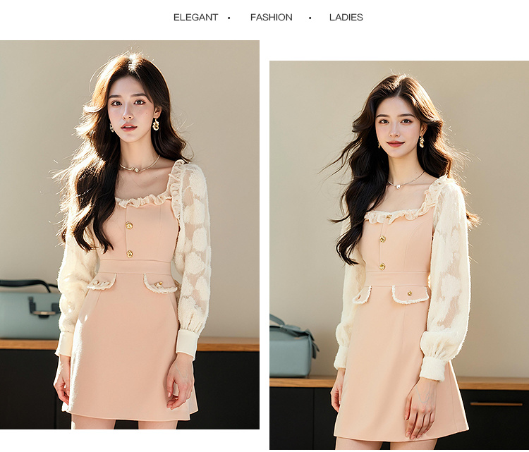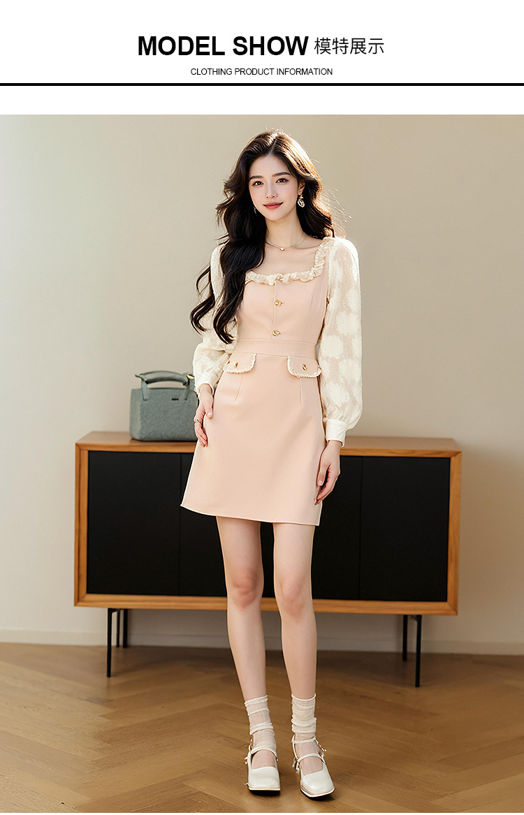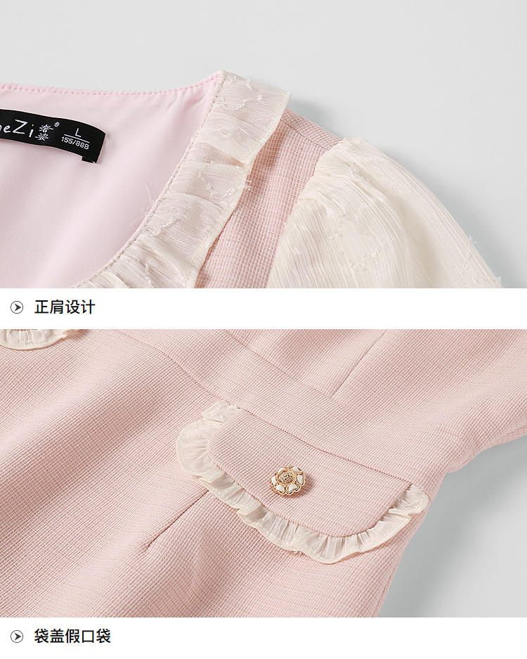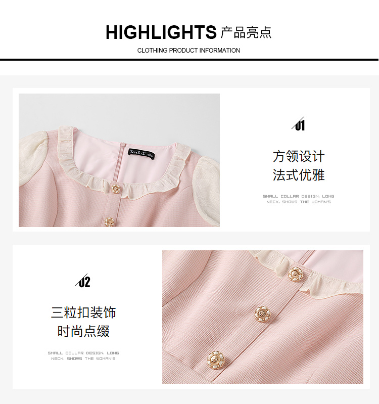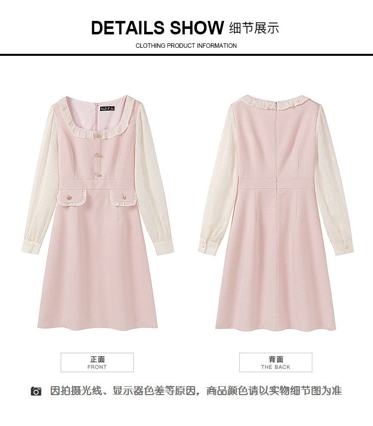 大码女装2025春季气质方领连衣裙胖妹妹木耳边时尚拼接裙子9951856859
