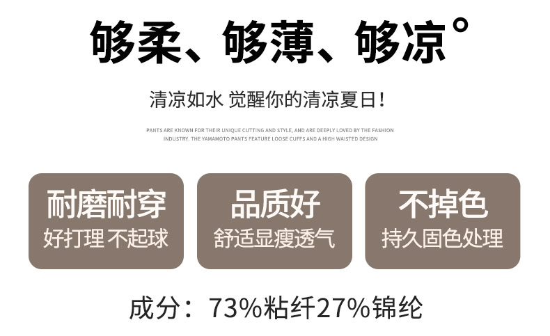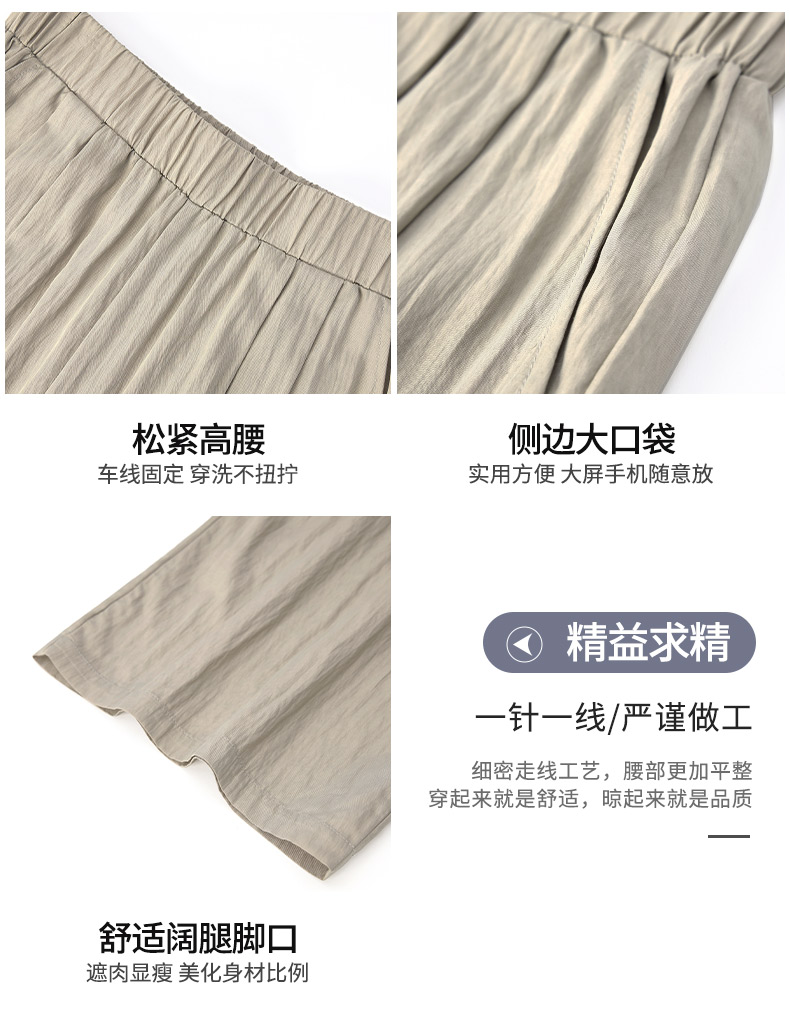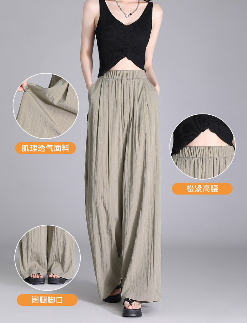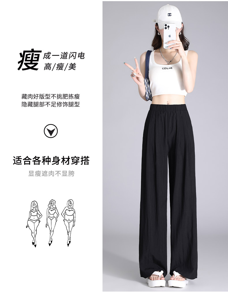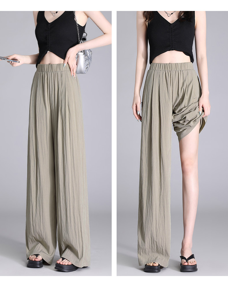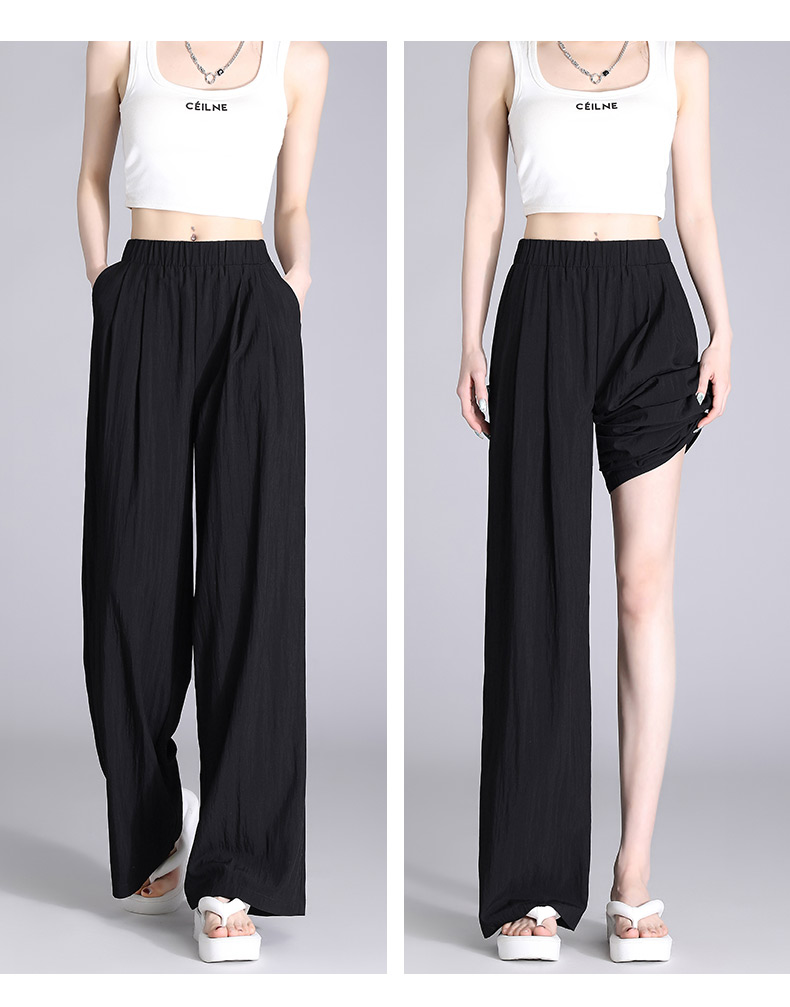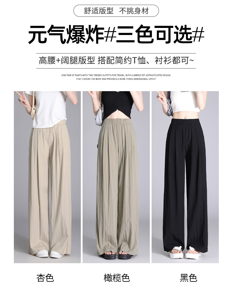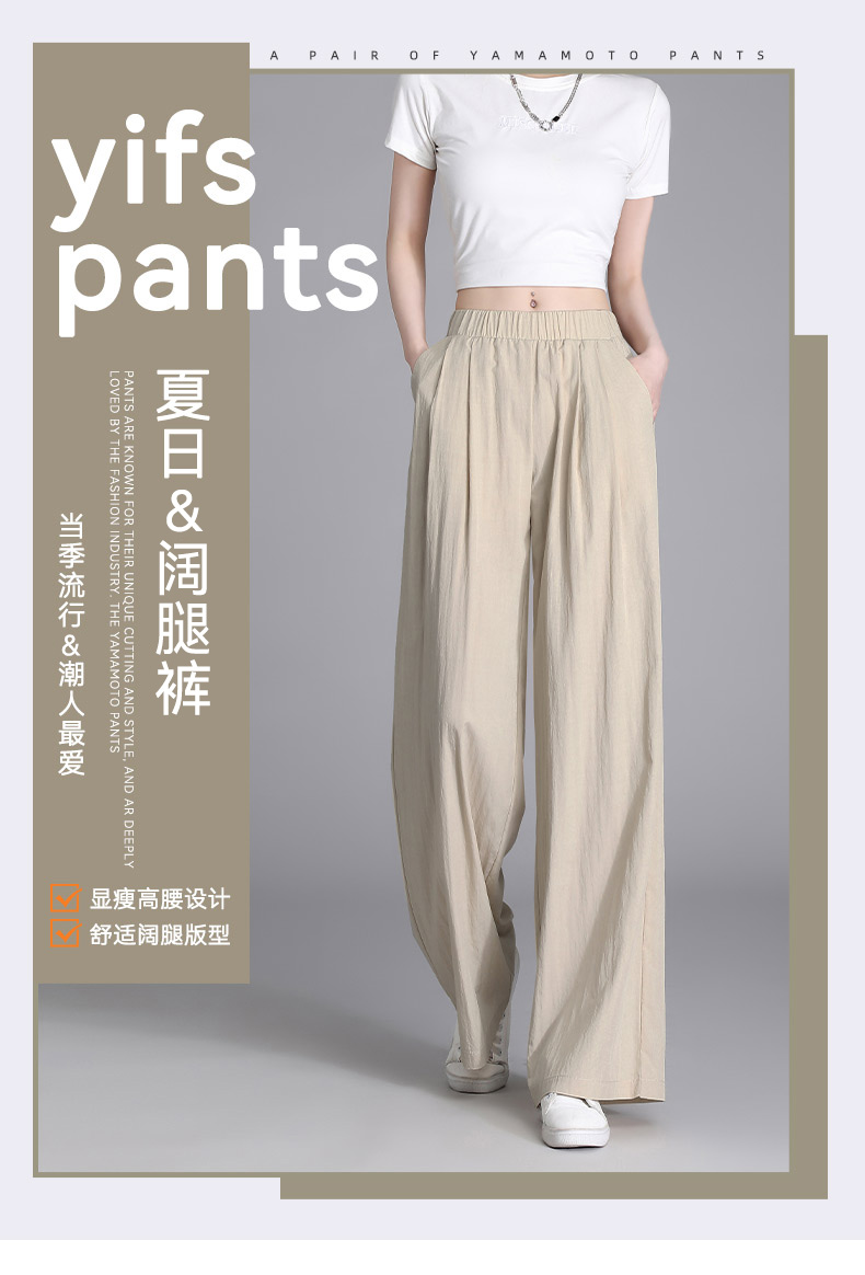 回力阔腿裤子女夏季冰丝高腰垂感慵懒休闲宽松直筒小个子山本裤女