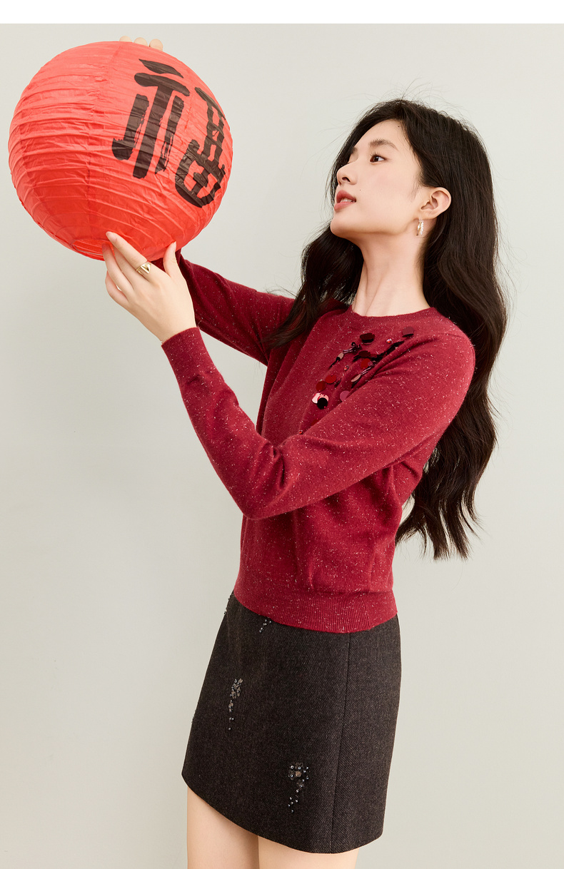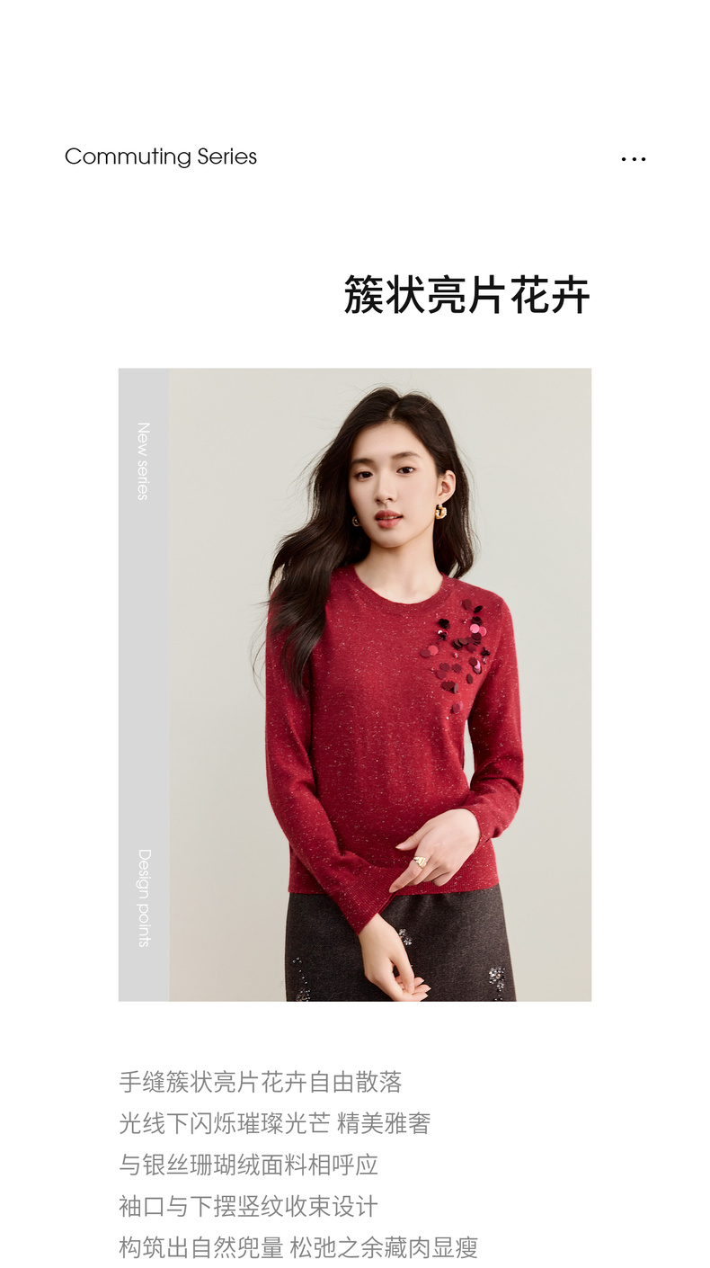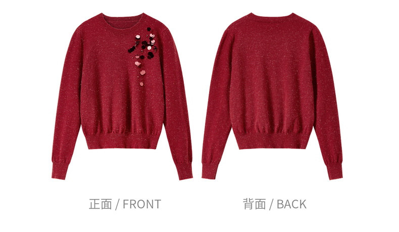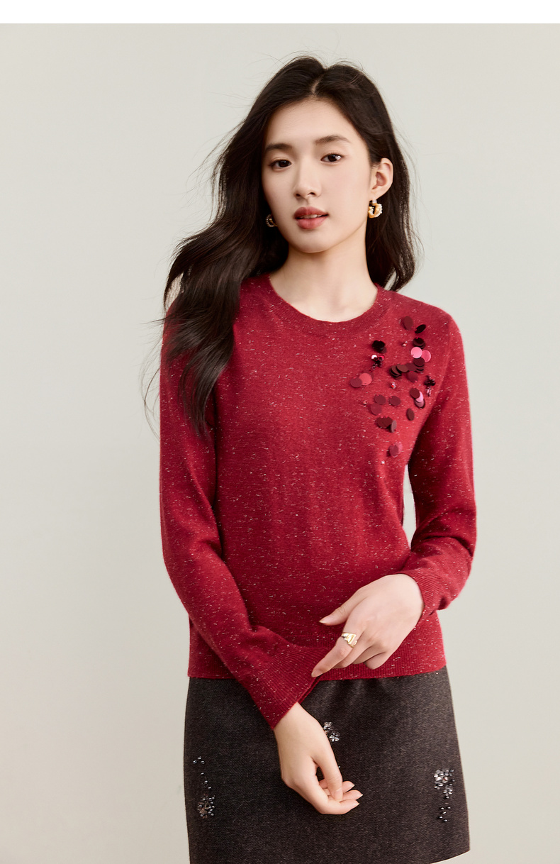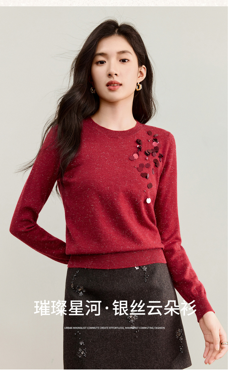 【内购】【簇状亮片花卉】设计感圆领弹力银丝珊瑚绒长袖针织衫-W53HE3793