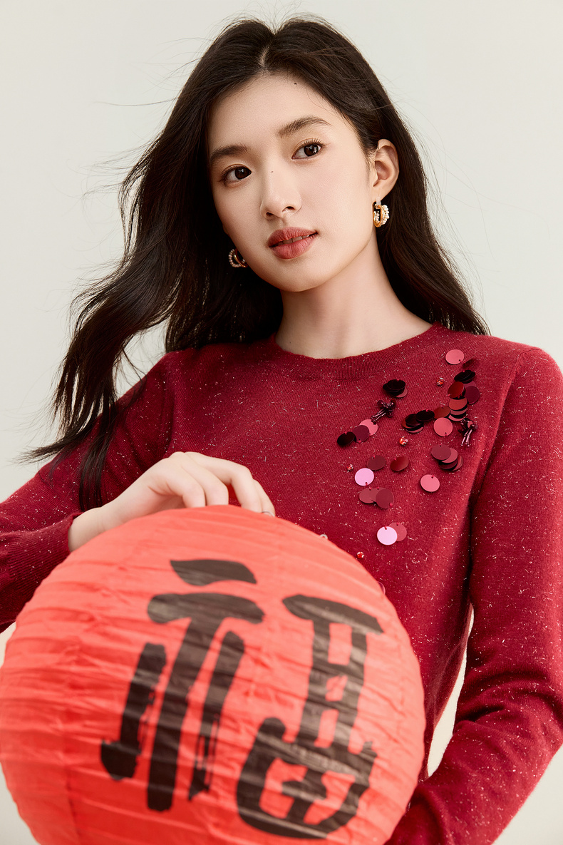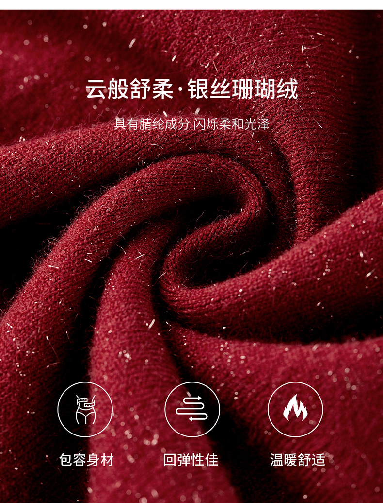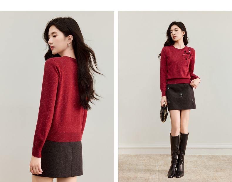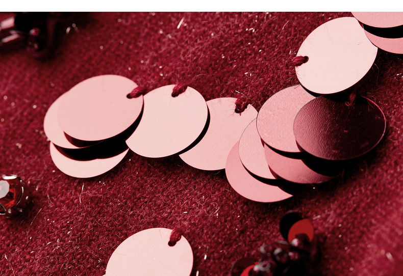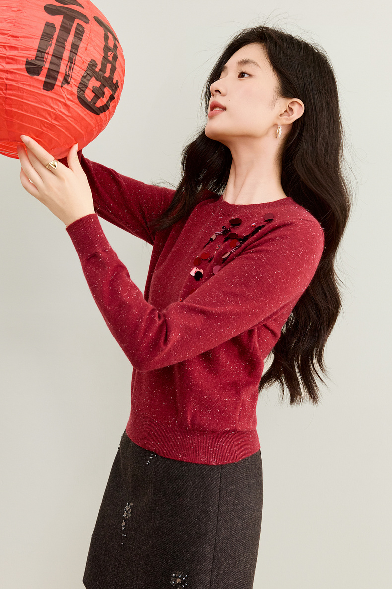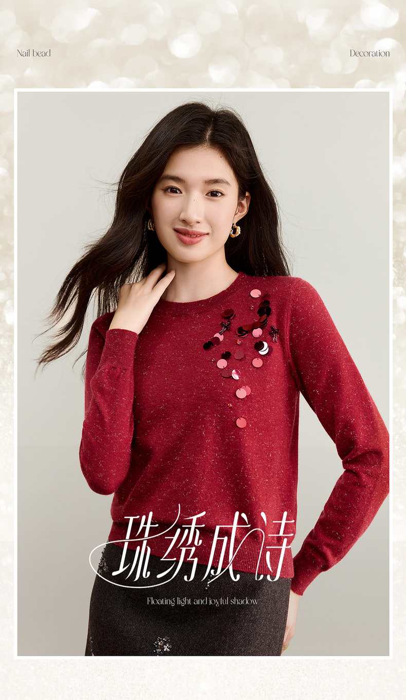 【内购】【簇状亮片花卉】设计感圆领弹力银丝珊瑚绒长袖针织衫-W53HE3793