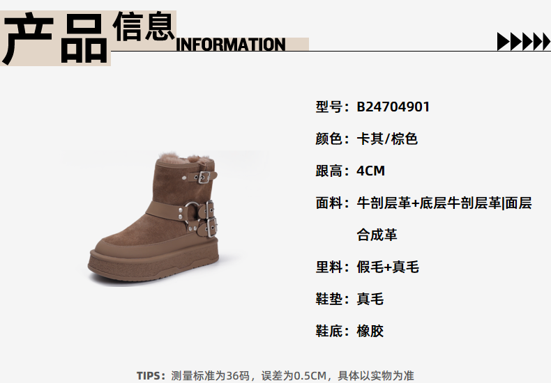 伊伴冬季女靴潮流舒适女鞋加绒棉鞋B24704901