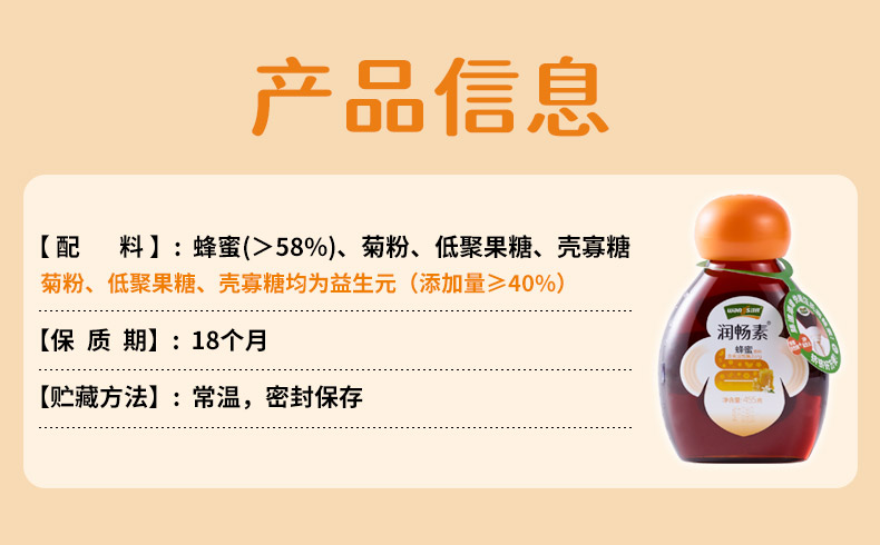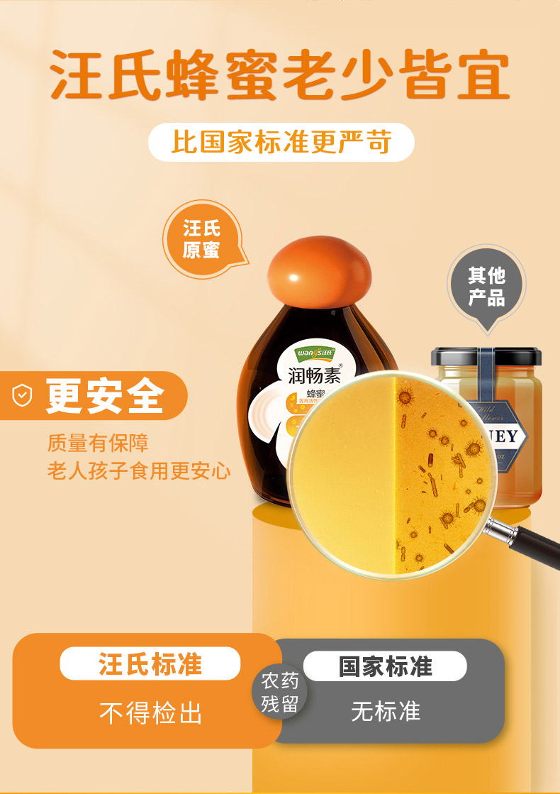 汪氏蜂蜜润畅素食用高活性益生菌益生元滋养健康品牌蜜455g/瓶 肠道添堵 快喝汪氏润畅素
