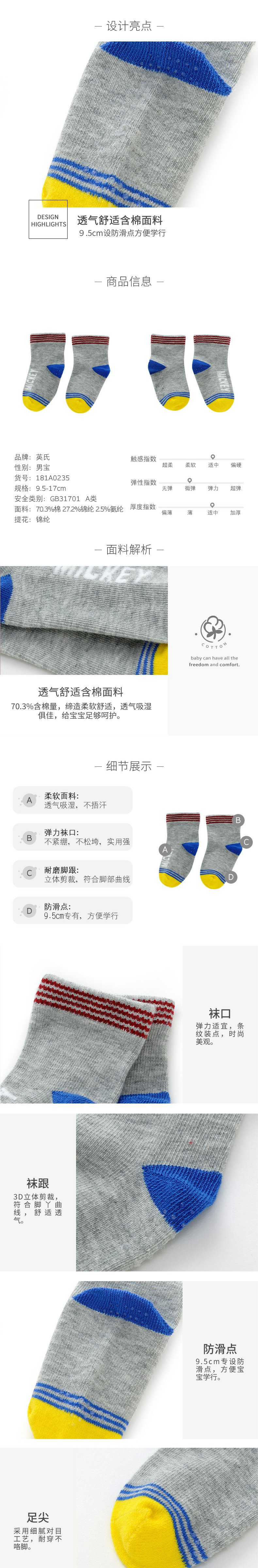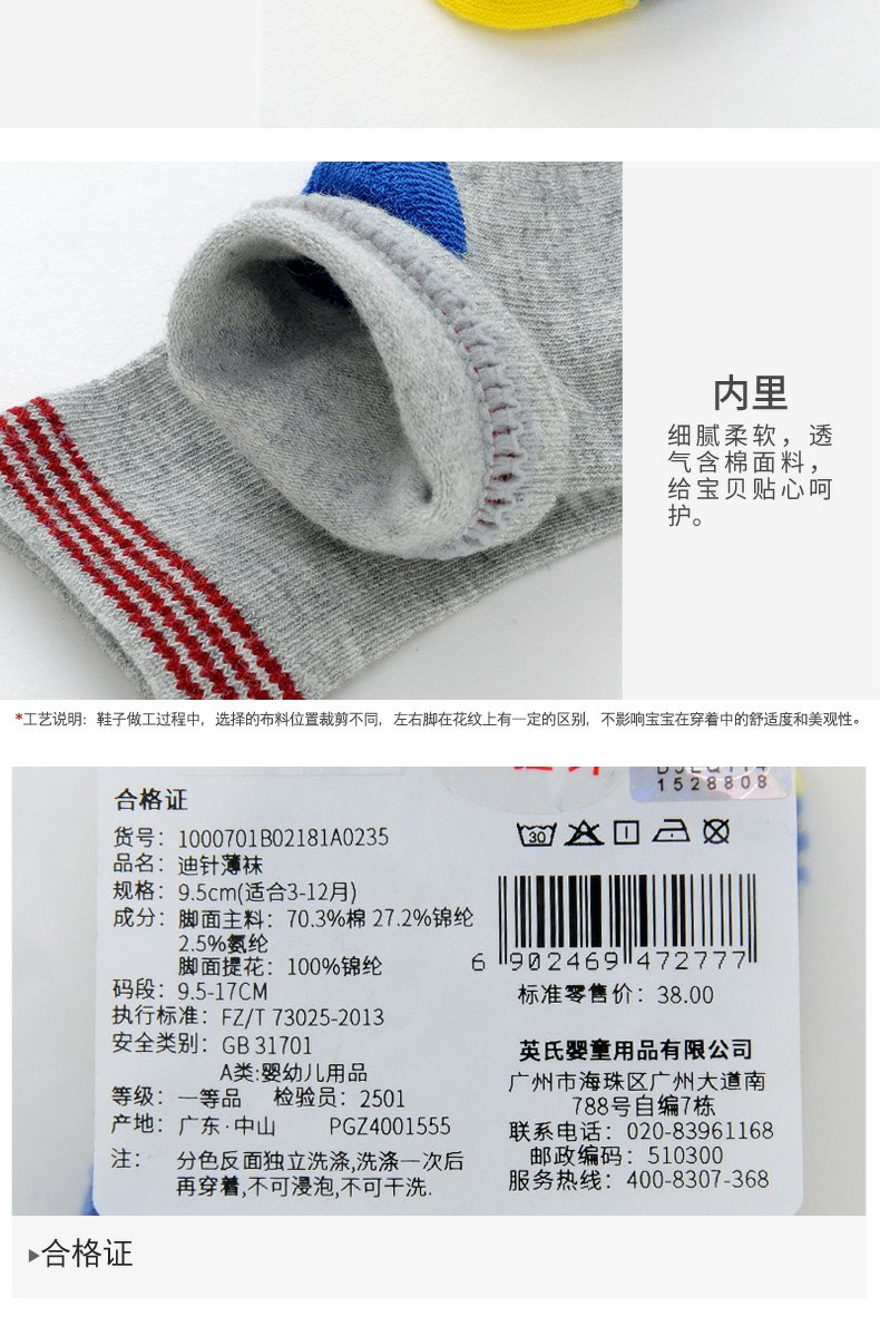 英氏婴儿袜 春秋男童薄袜子 181A0235